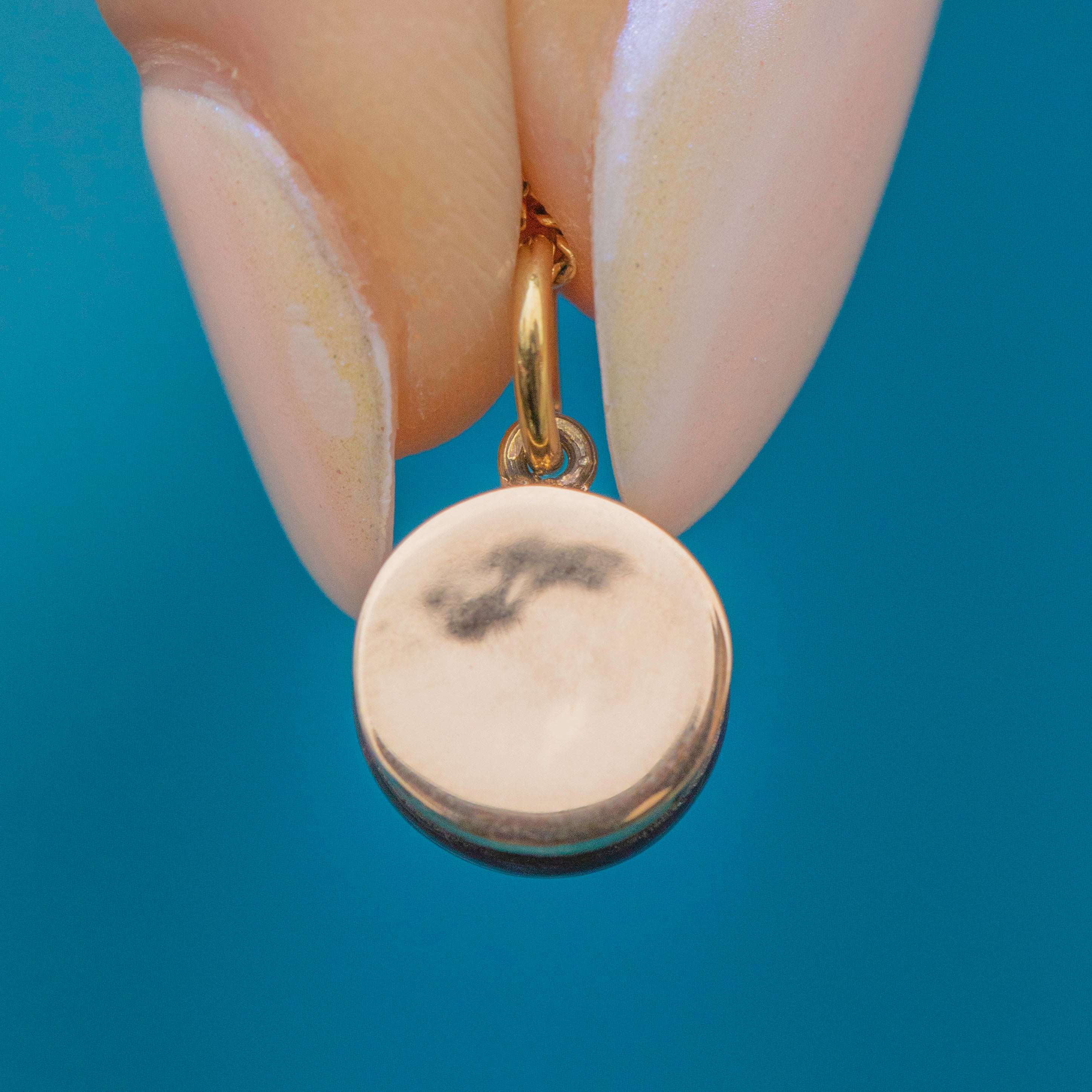 EXCELLENT. This antique 18ct Gold Garnet cabochon Diamond charm is in excellent condition. Her Garnet cabochon is free from any chips or scratches and has clearly been well cared for over the years. Her Diamond is securley set in the centre of the Garnet and is free from fleabites. The 18ct Gold bezel setting remains secure, glossy and bright!