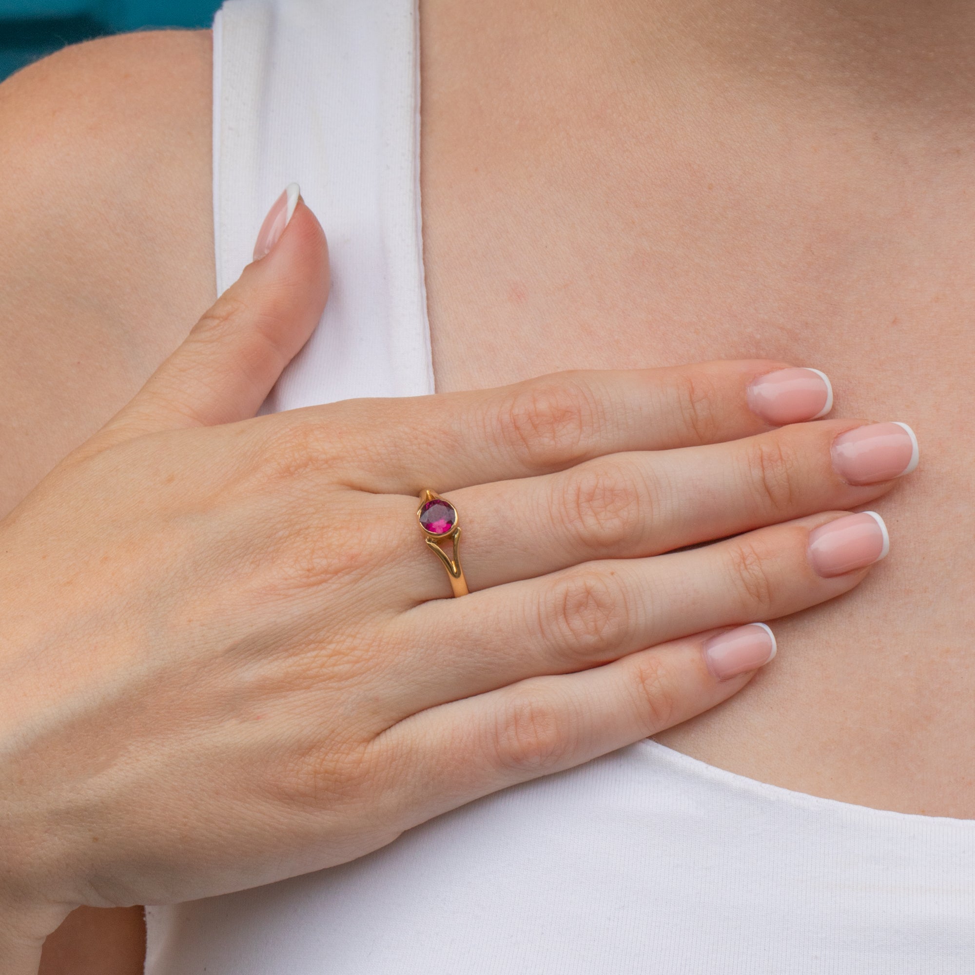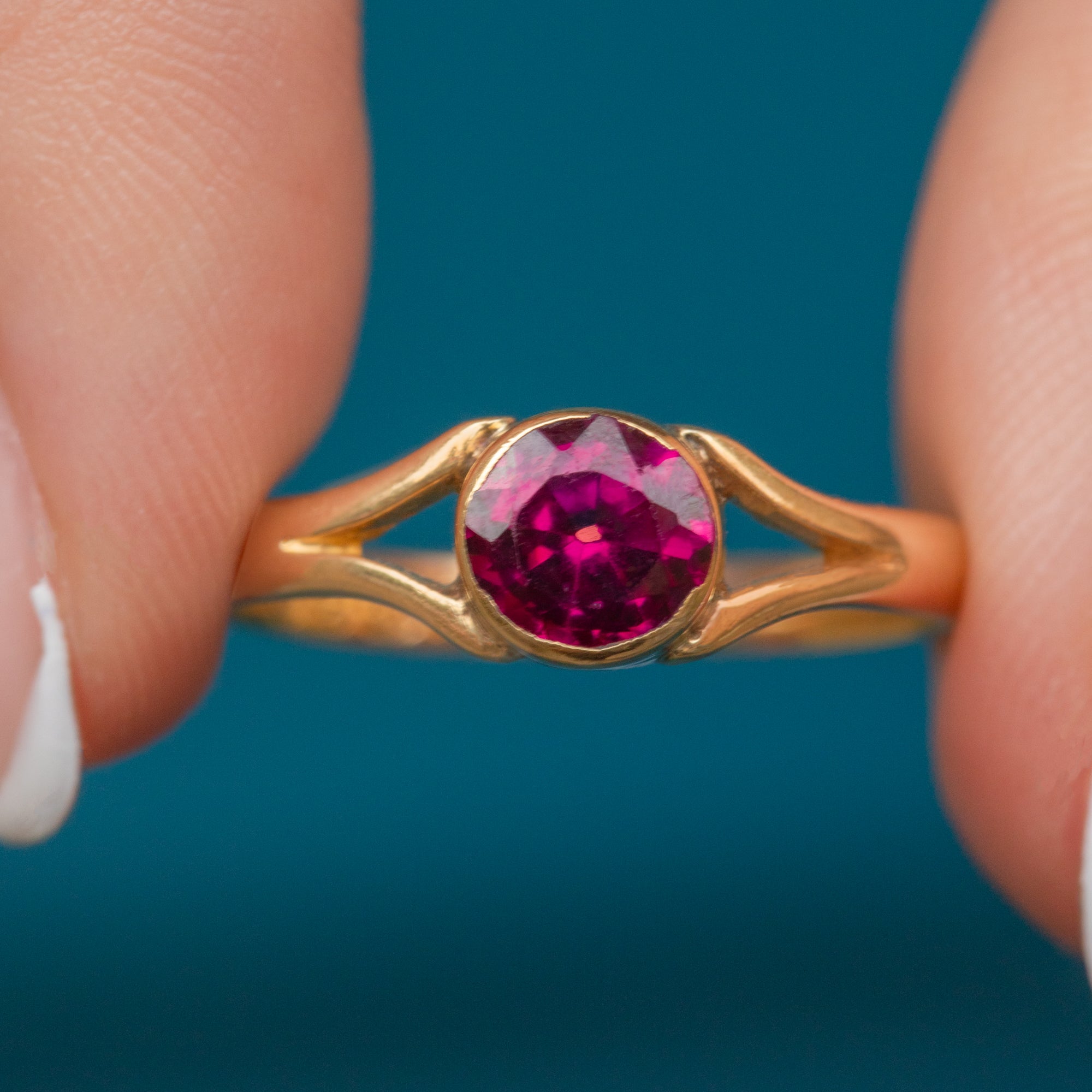 Antique 18ct Gold Garnet Solitaire Ring, c.1913