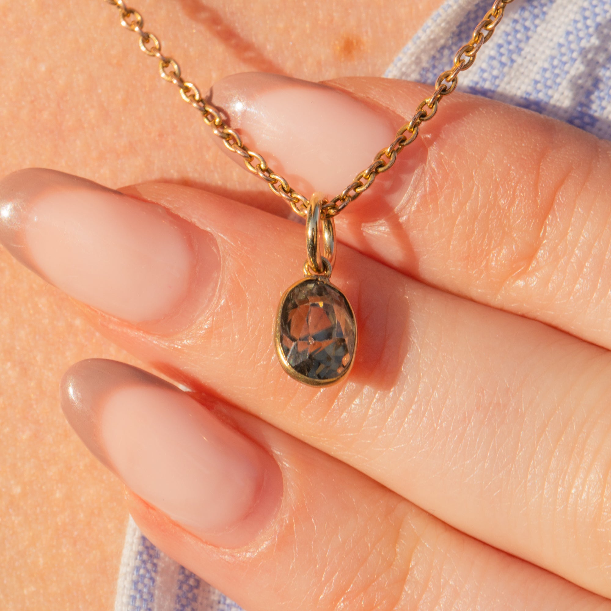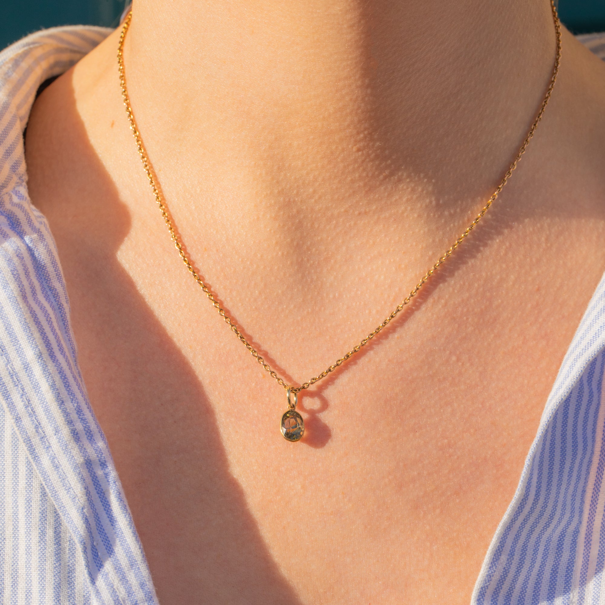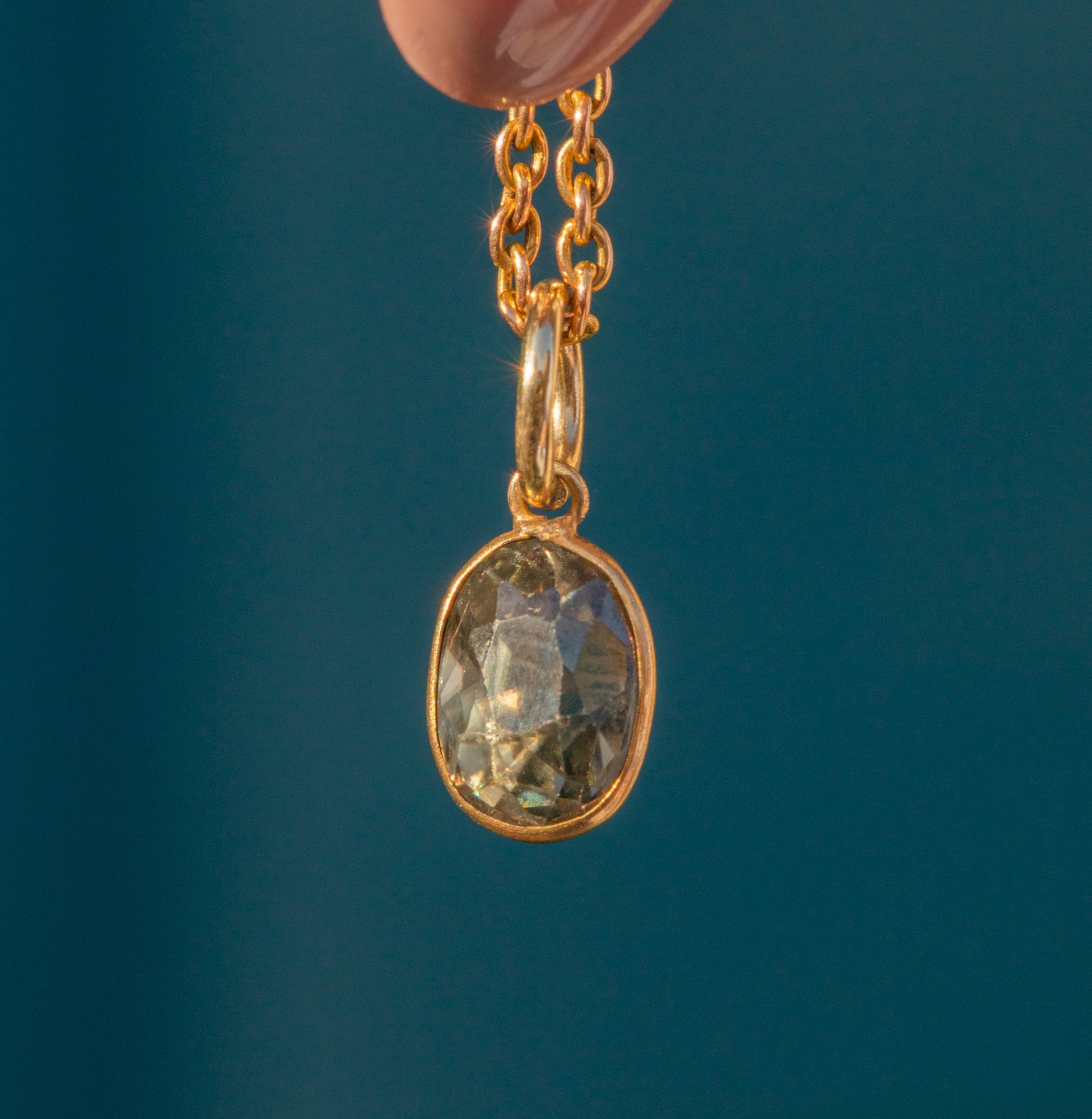 Add a touch of understated elegance to your collection with this antique 18ct Gold Green Zircon bezel set charm!