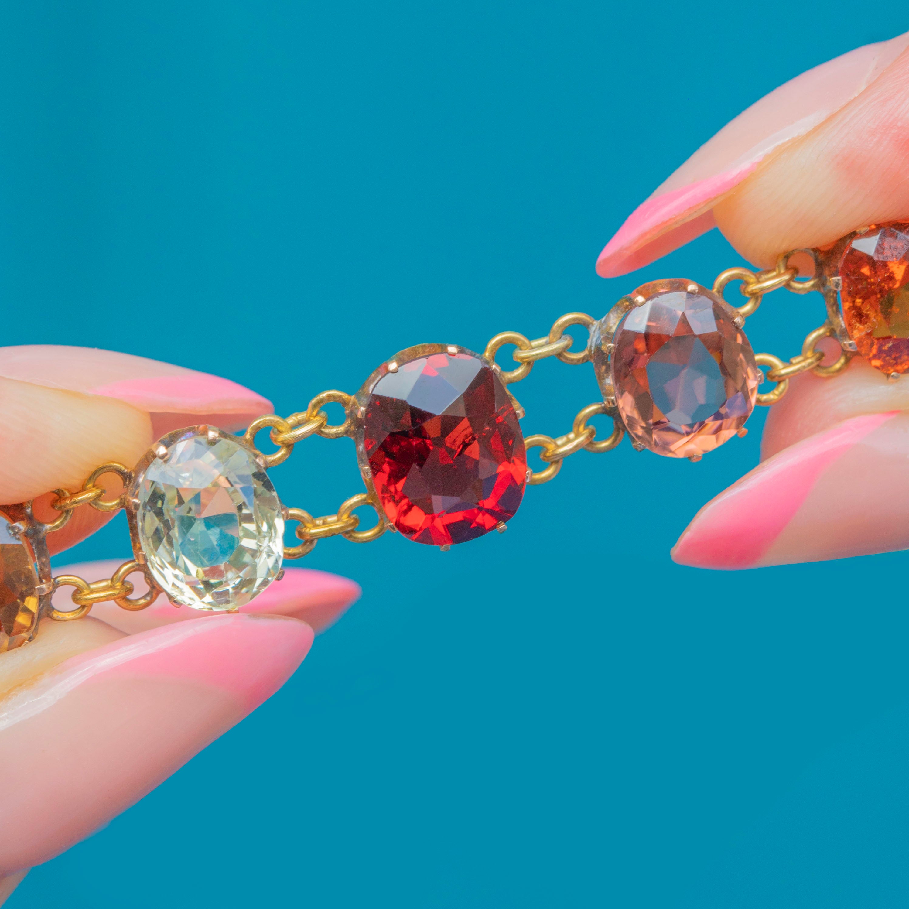 Each gemstone is set within quintessentially Victorian 18ct Gold claw settings, connected by a chunky glossy chain to create a luxurious piece of wrist candy for you to feast your eyes upon. The perfect piece to inject a pop of colour into your collection, this antique riviere bracelet is a must-have!
