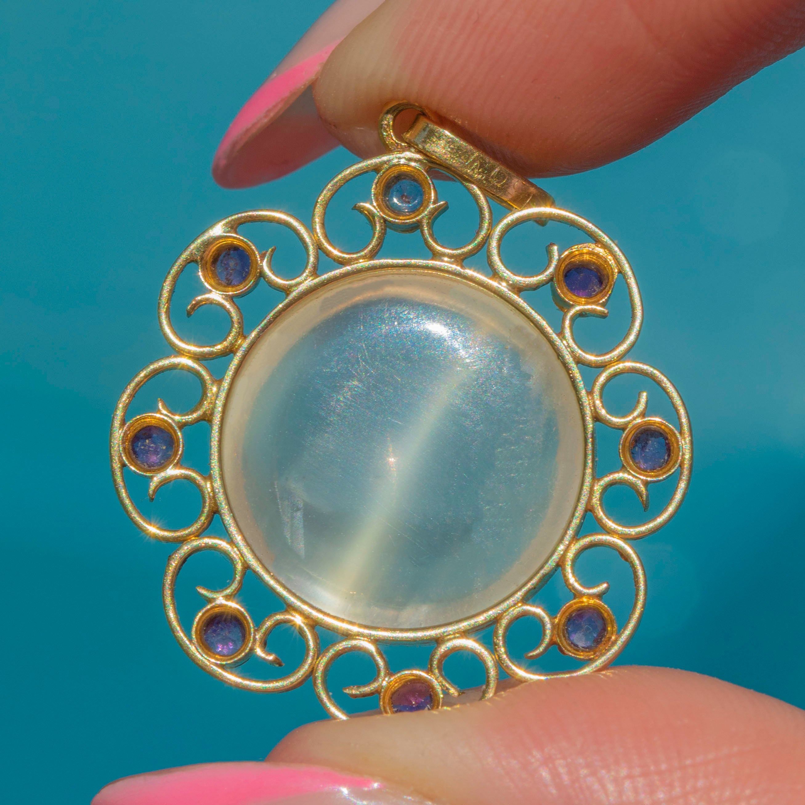 Antique 18ct Gold Moonstone Amethyst Openwork Pendant, 1.80ct Moonstone