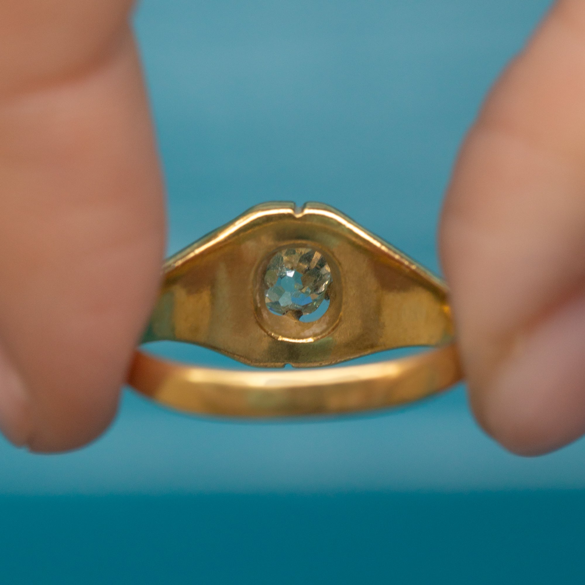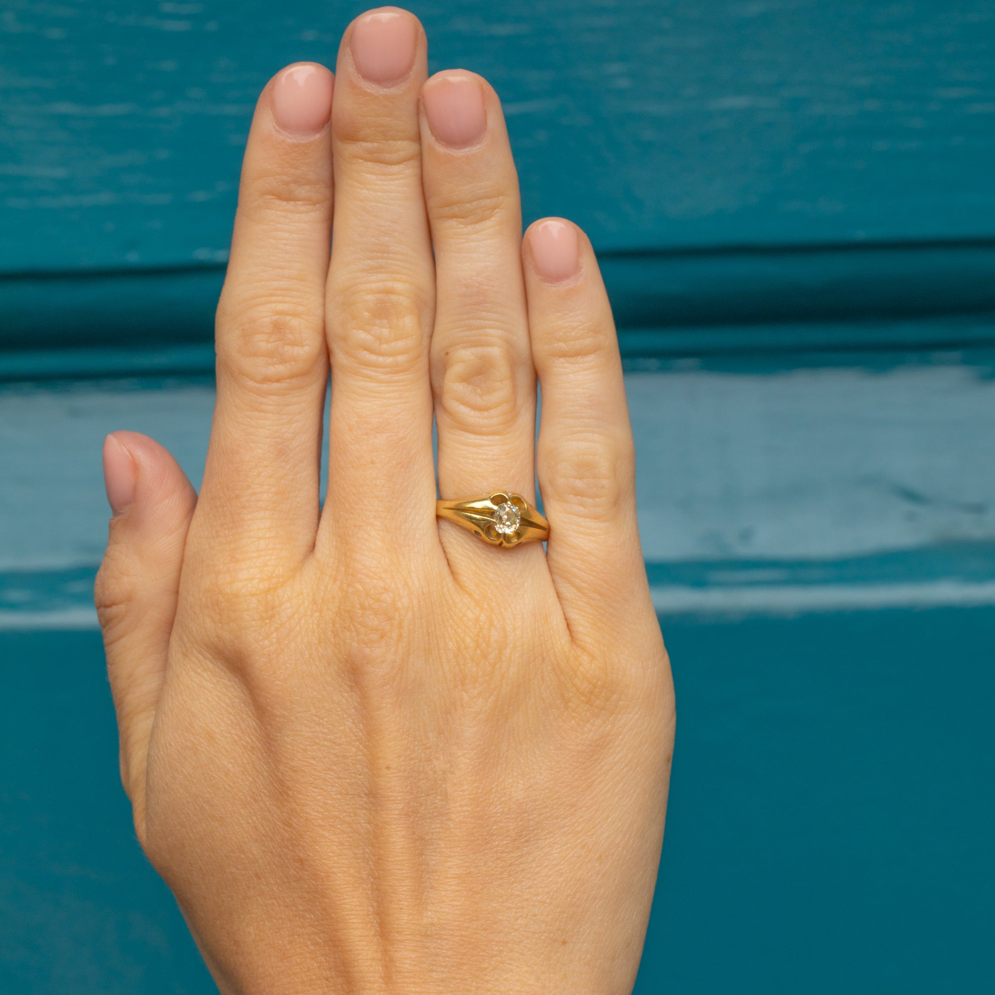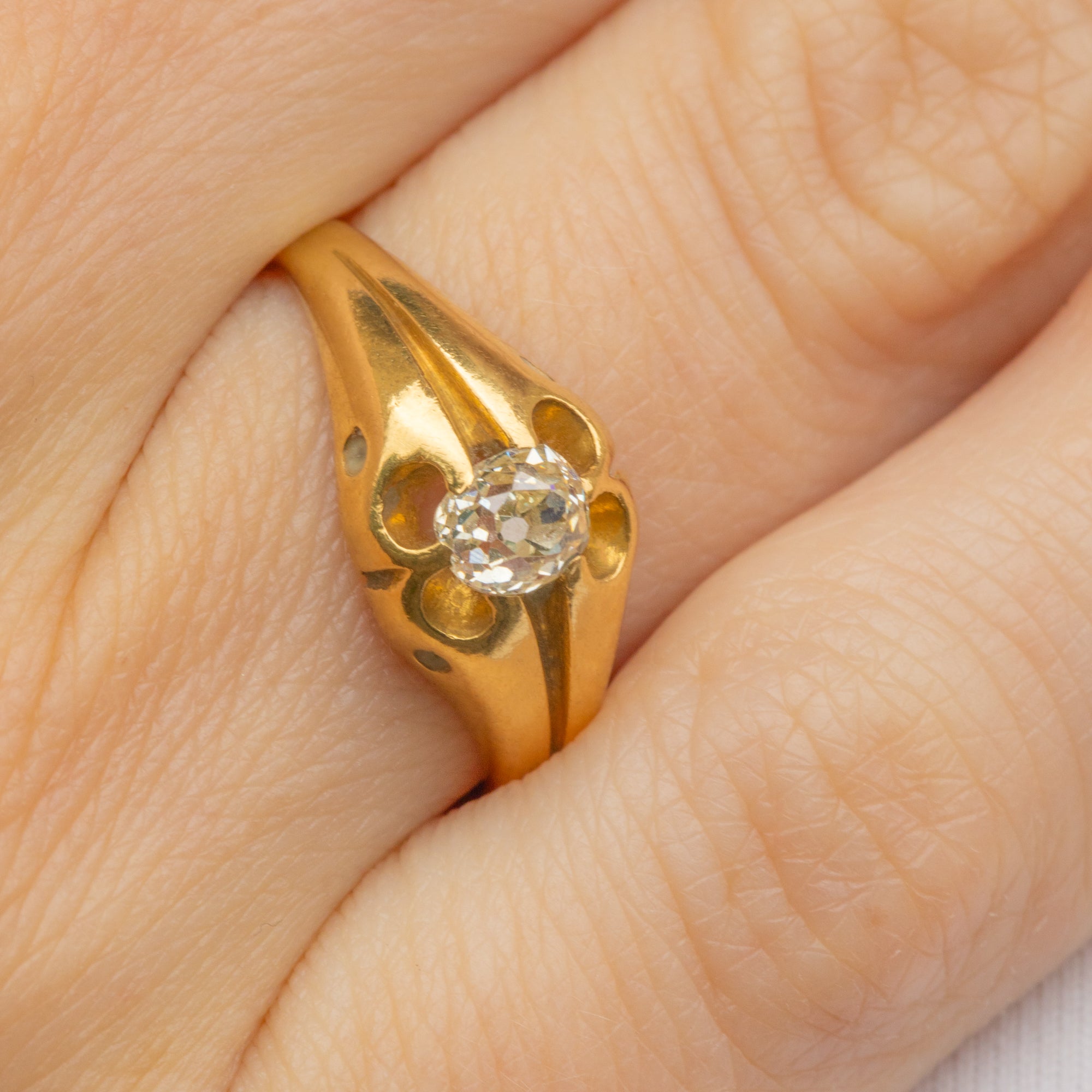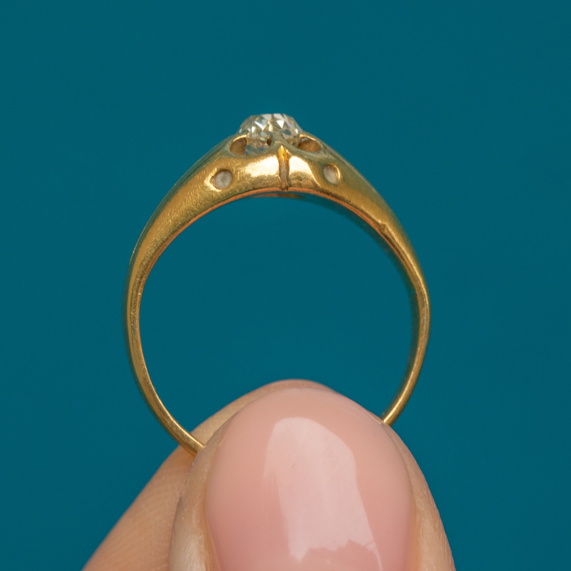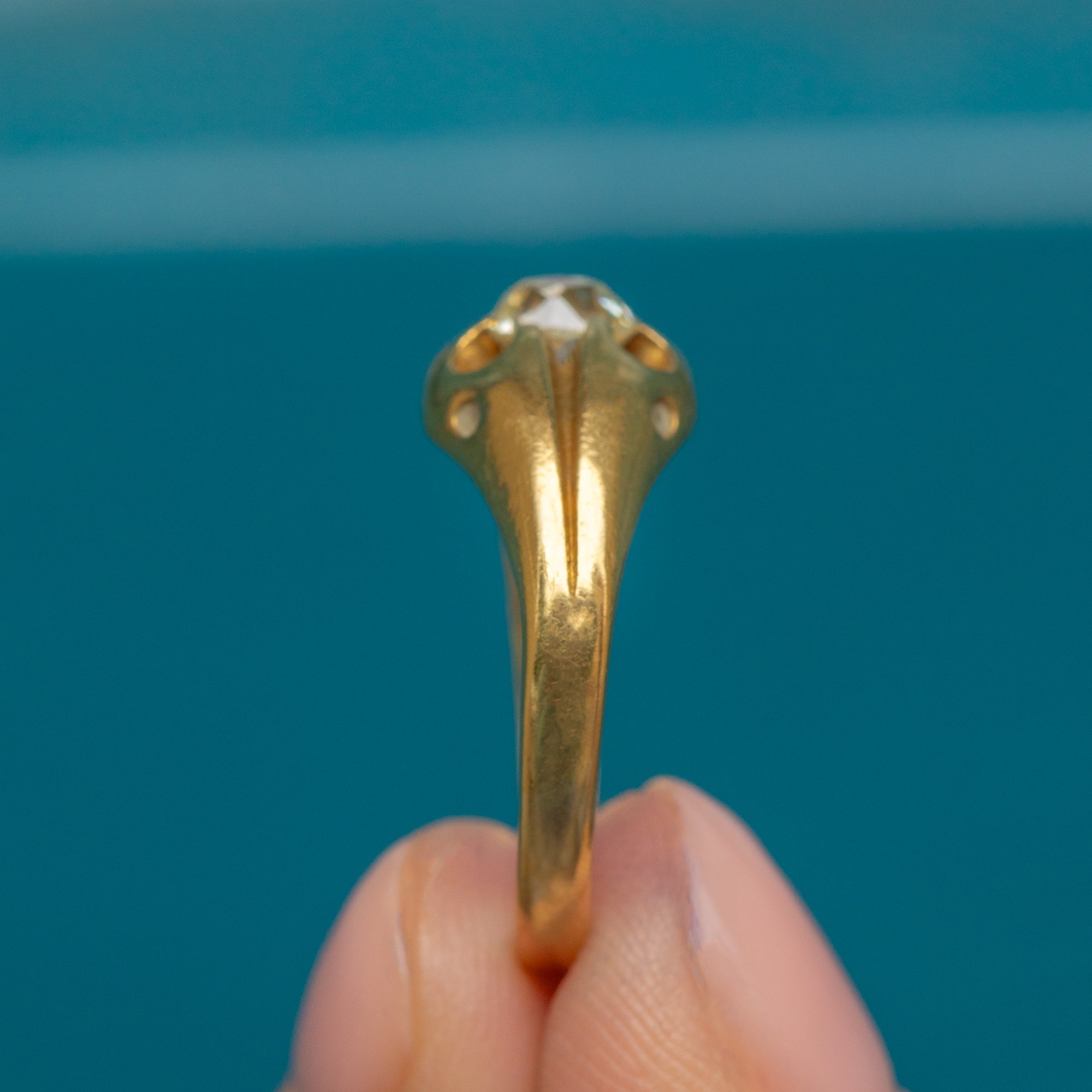 MATERIALS: Tests as 18ct Gold throughout, Old-Mine Cut Diamond (0.40ct).
