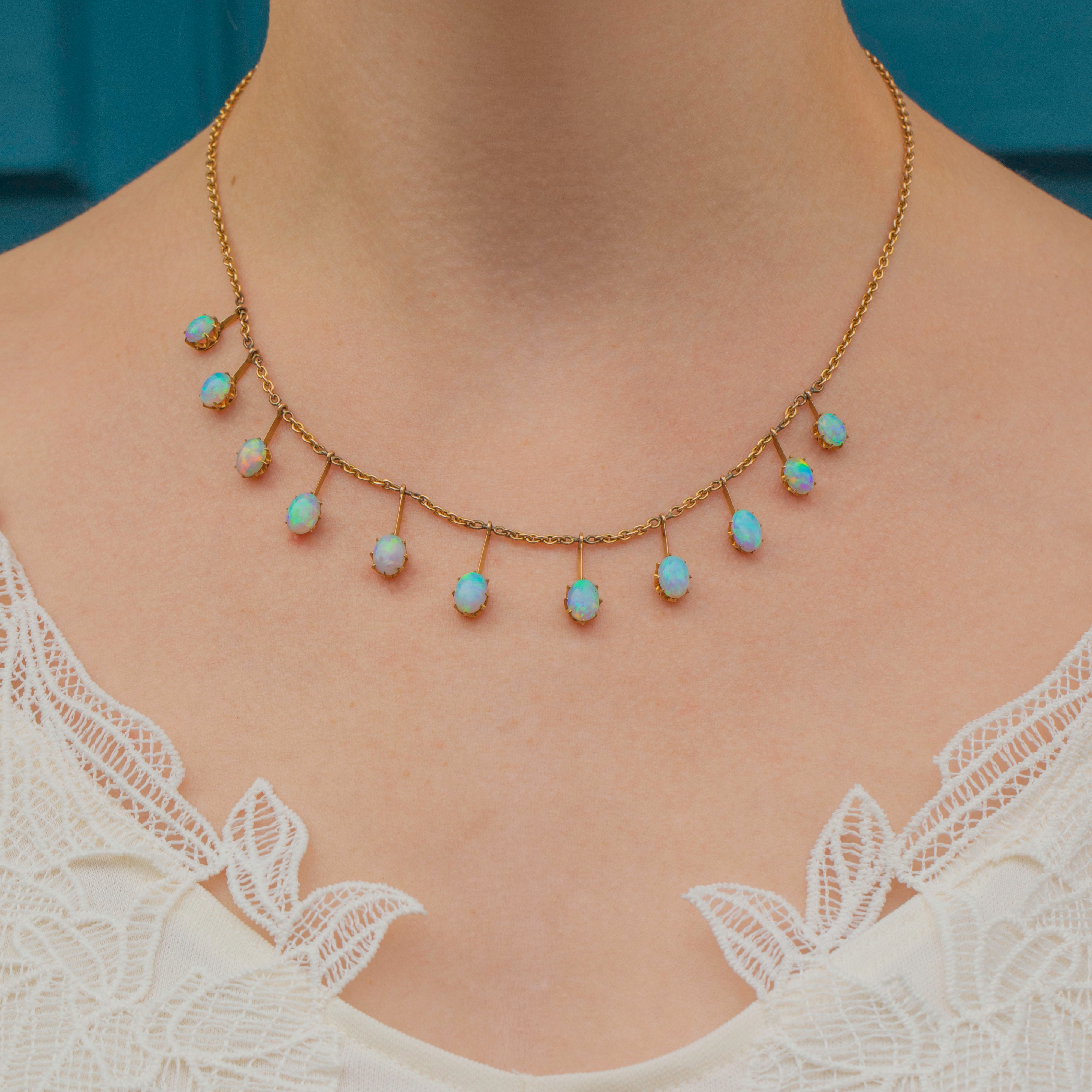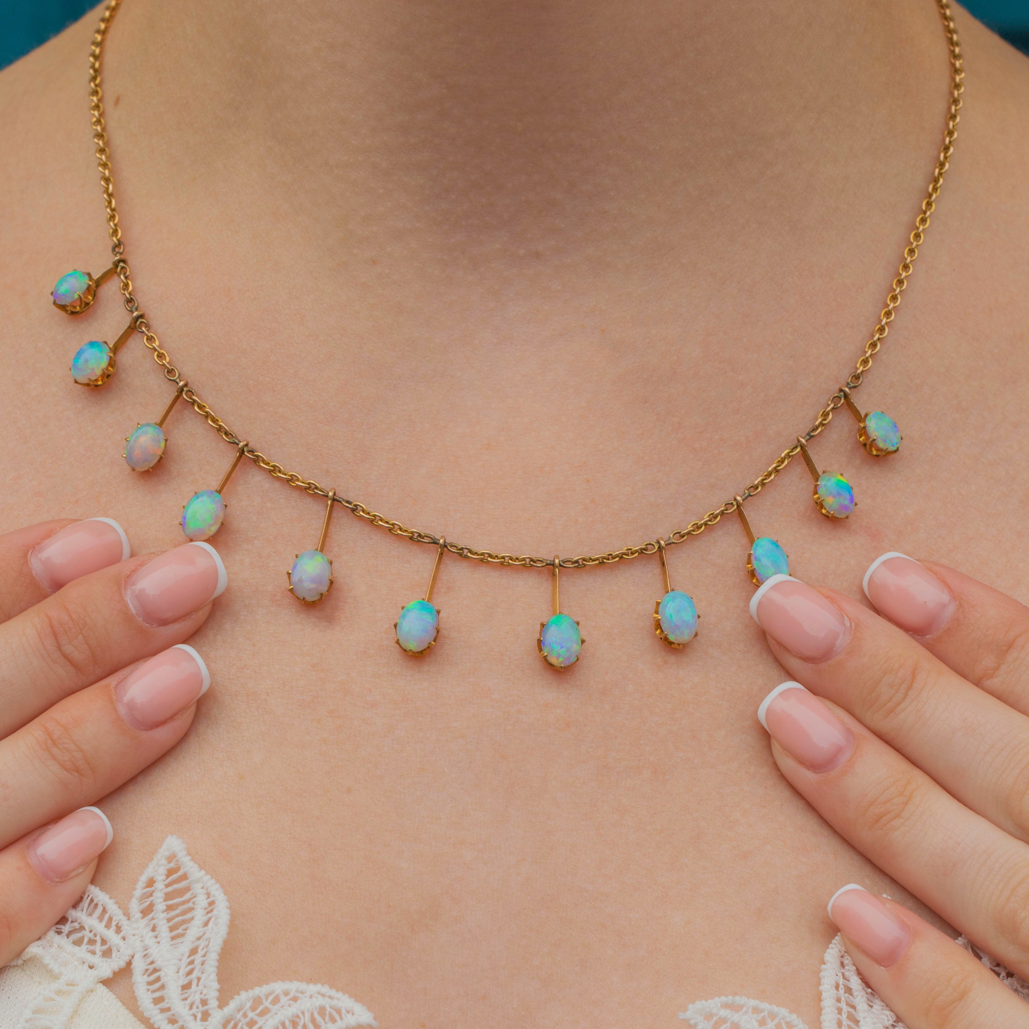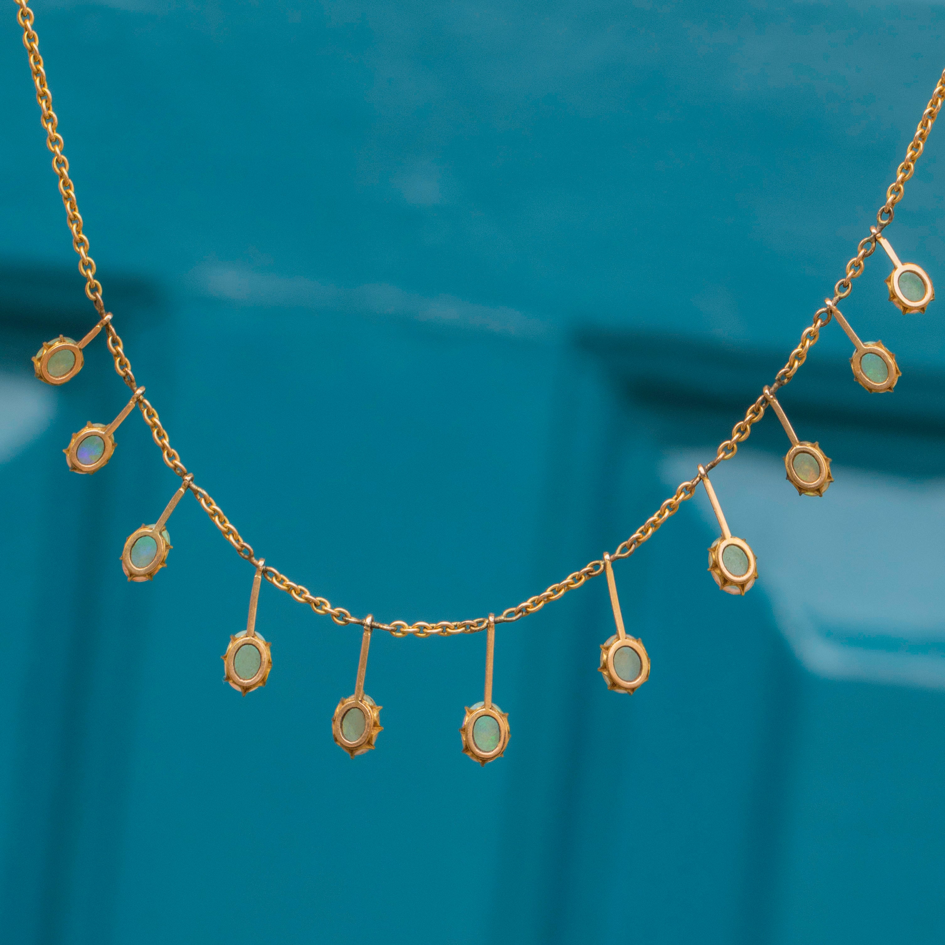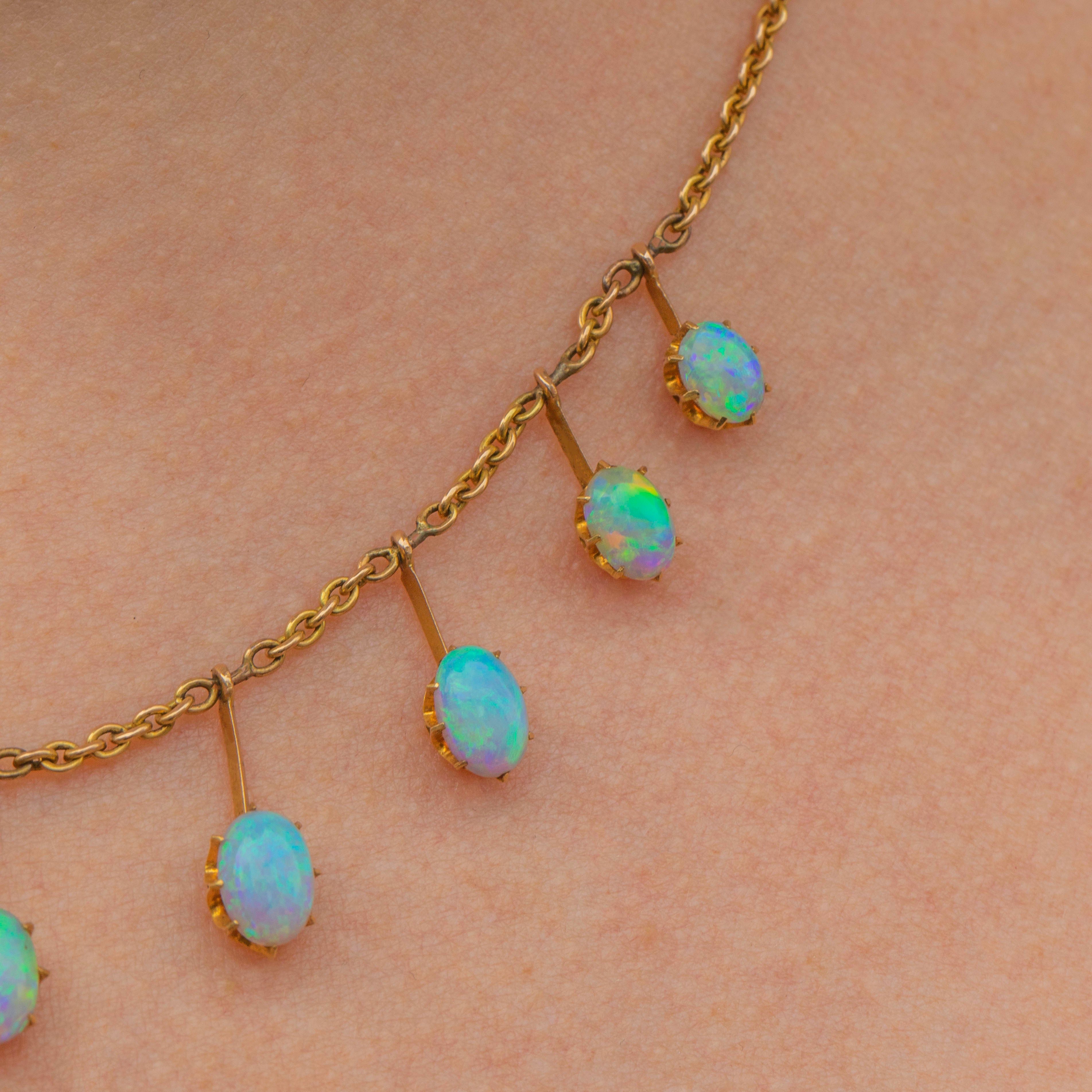 Antique 18ct Gold Opal Fringe Drop Necklace, 7.48ct