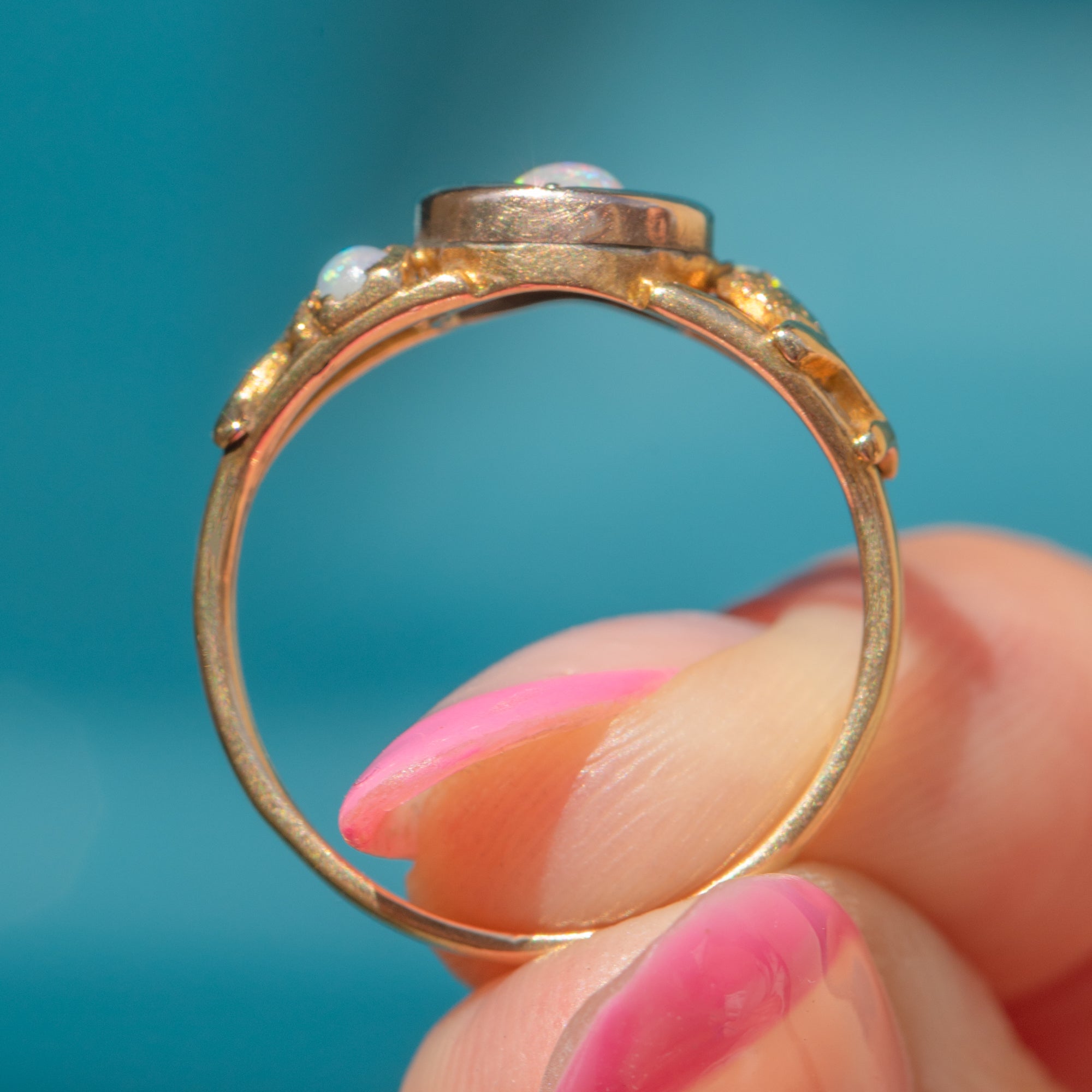 Antique 18ct Gold Opal Ring with Acorn Motifs