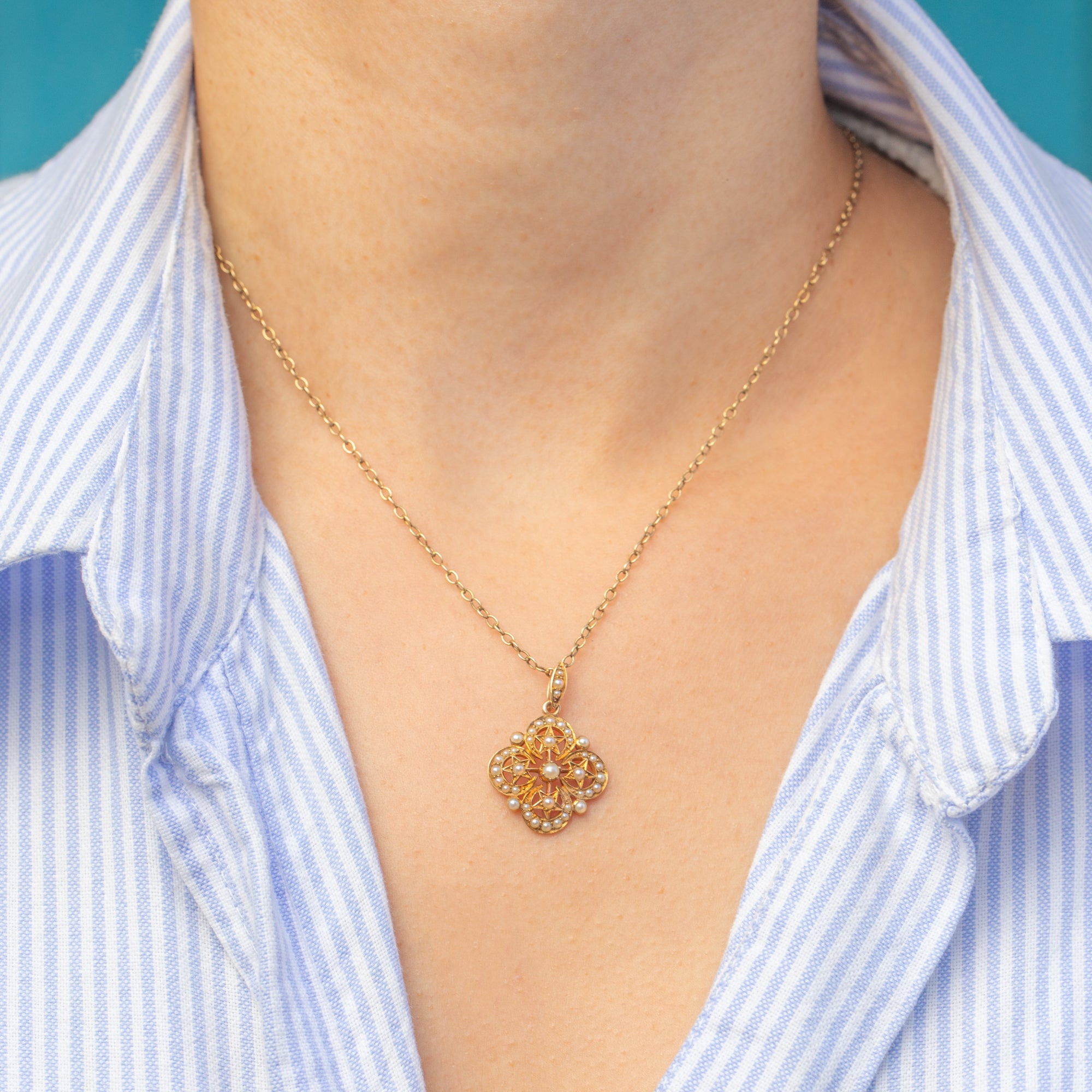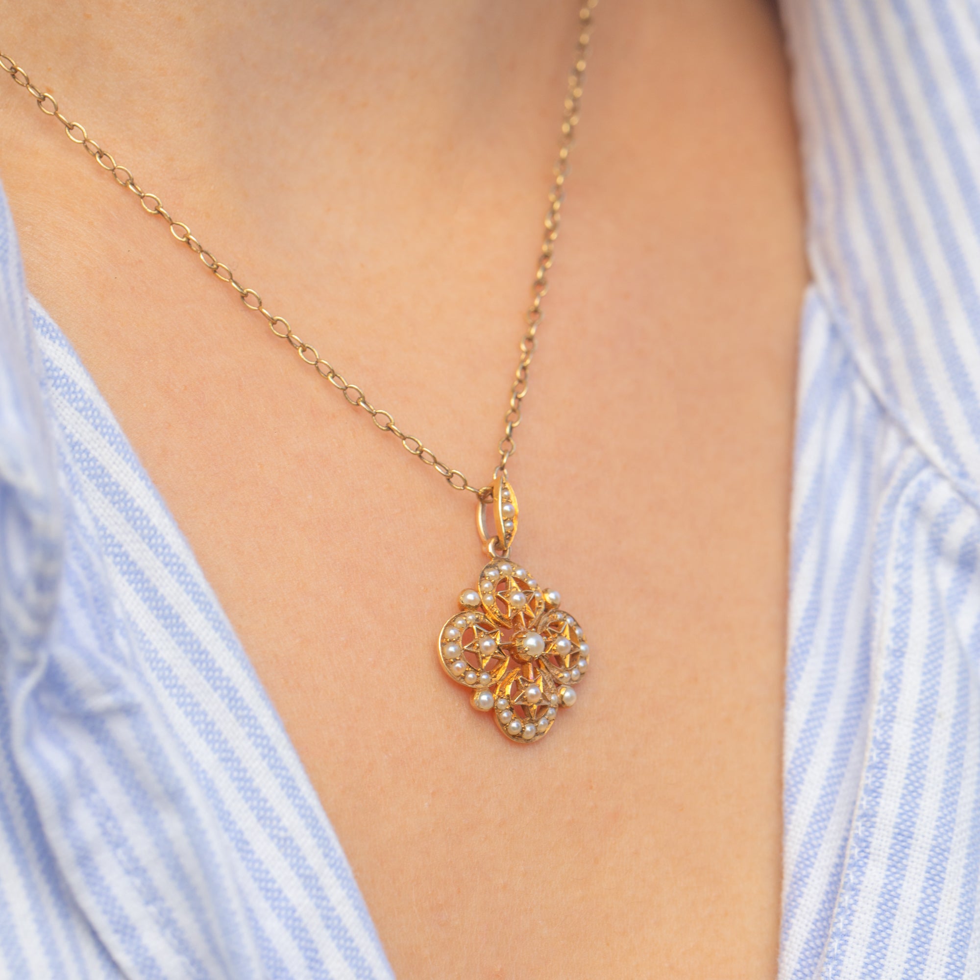 Antique 18ct Gold Pearl Star Charm