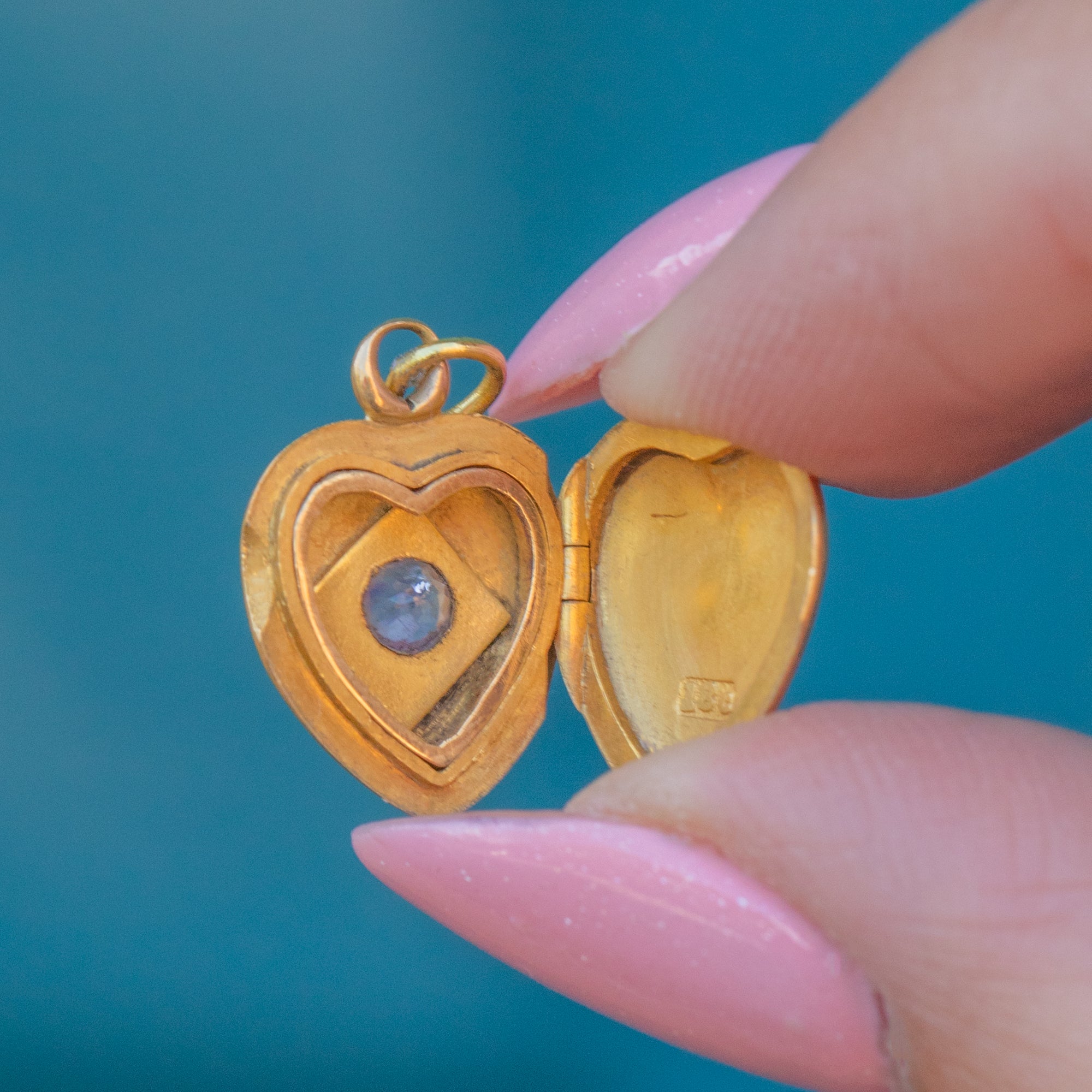 Antique 18ct Gold Pink Amethyst Heart Locket