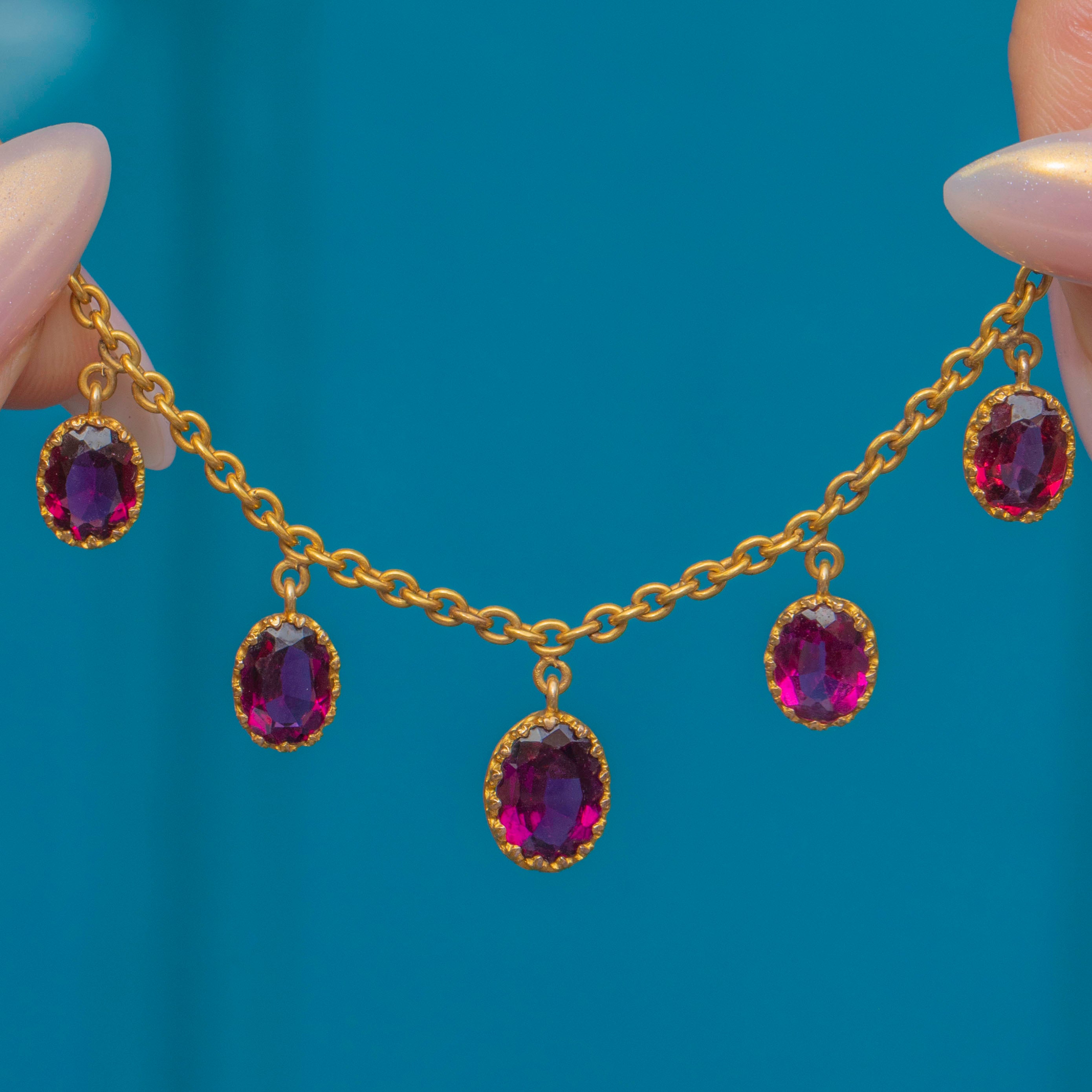 Antique 18ct Gold Rhodolite Garnet Fringe Necklace 4.50ct – Engraved Barrel Clasp