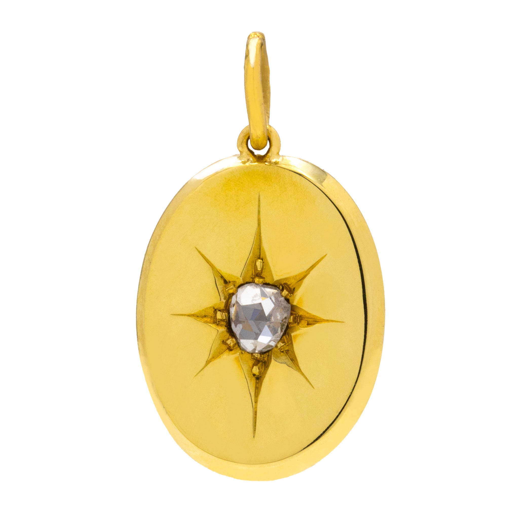 Antique 18ct Gold Rose-Cut Diamond Star-Set Oval Charm, 0.20ct