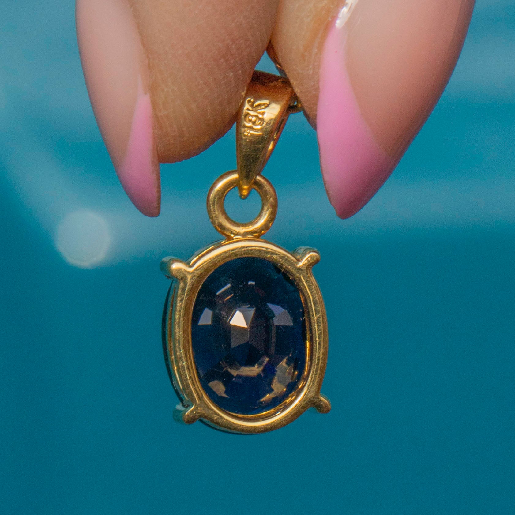 Fall in love with this antique 18ct Gold Sapphire charm! Flashes of midnight blue glisten from every facet of this rich 2.46ct oval cut Sapphire, catching the light magnificently.
