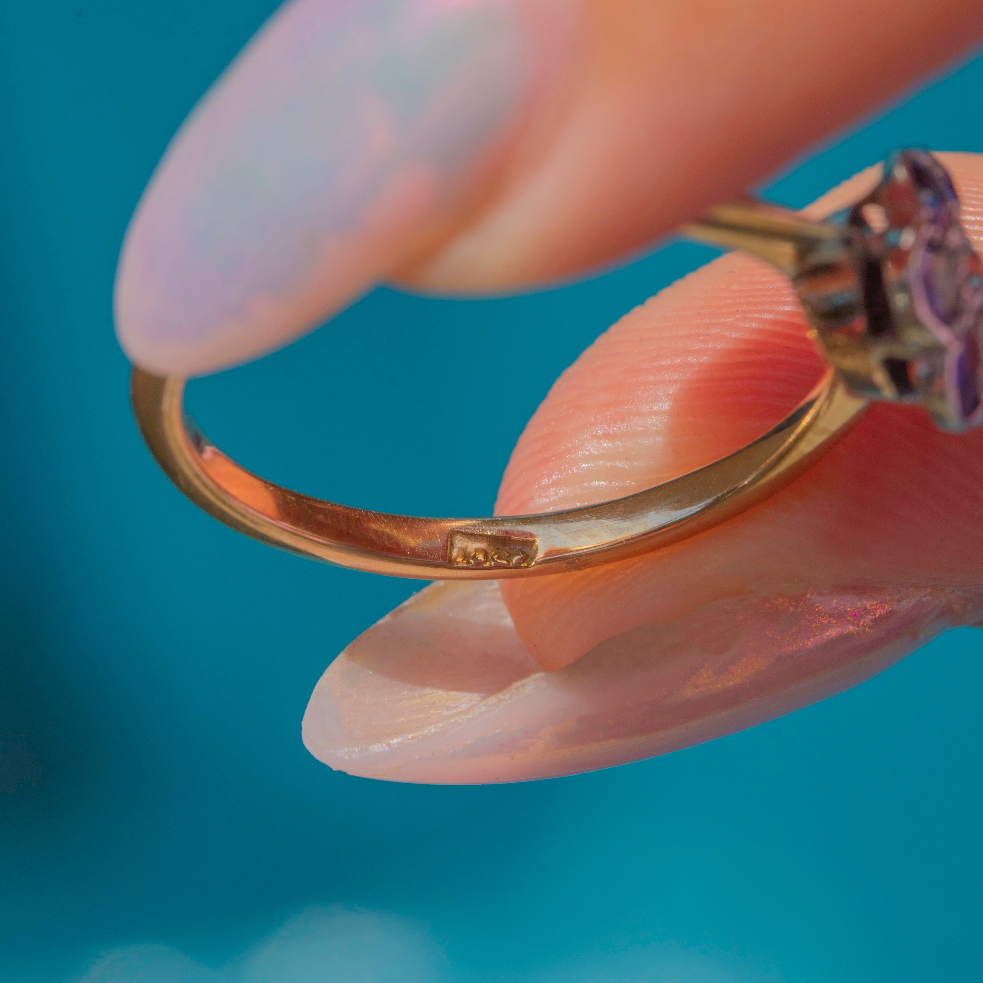 Complete with a buttery 18ct Gold band, this dainty delight is steeped in romantic sentiment, with daisies symbolising love and new beginnings, making it a lovely choice for an engagement ring!