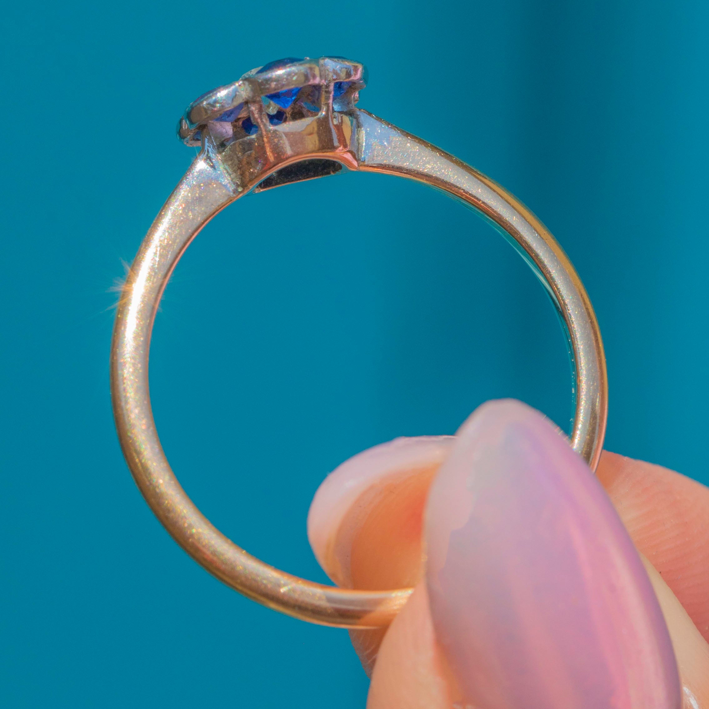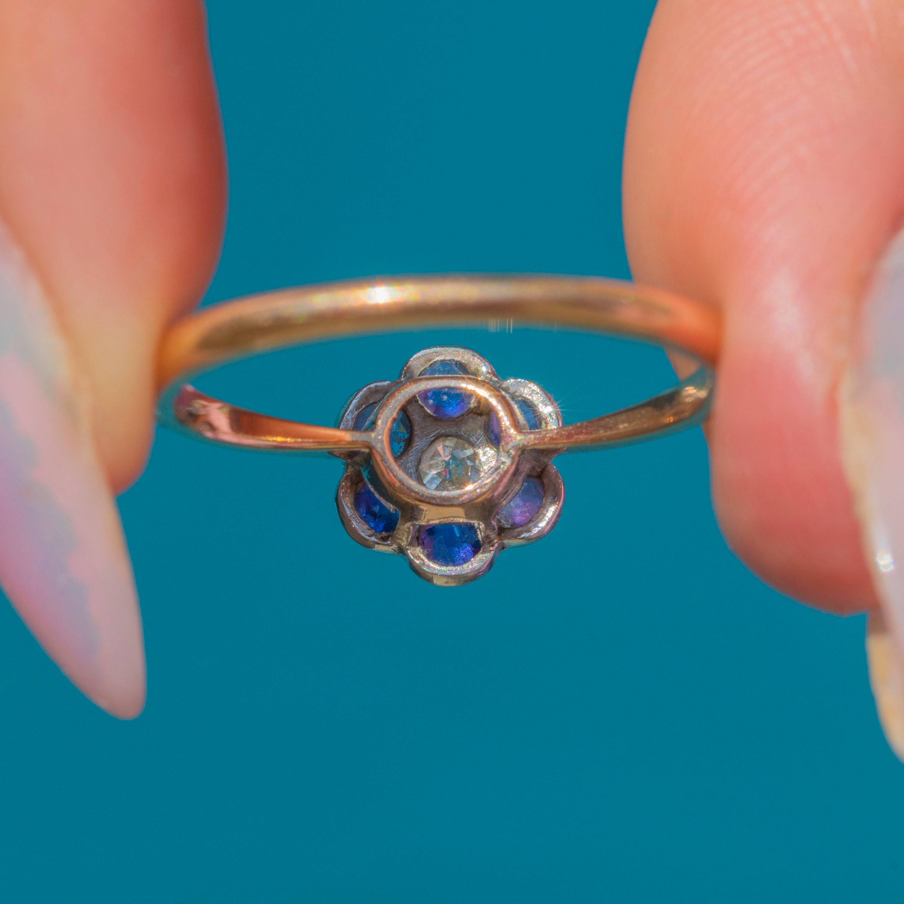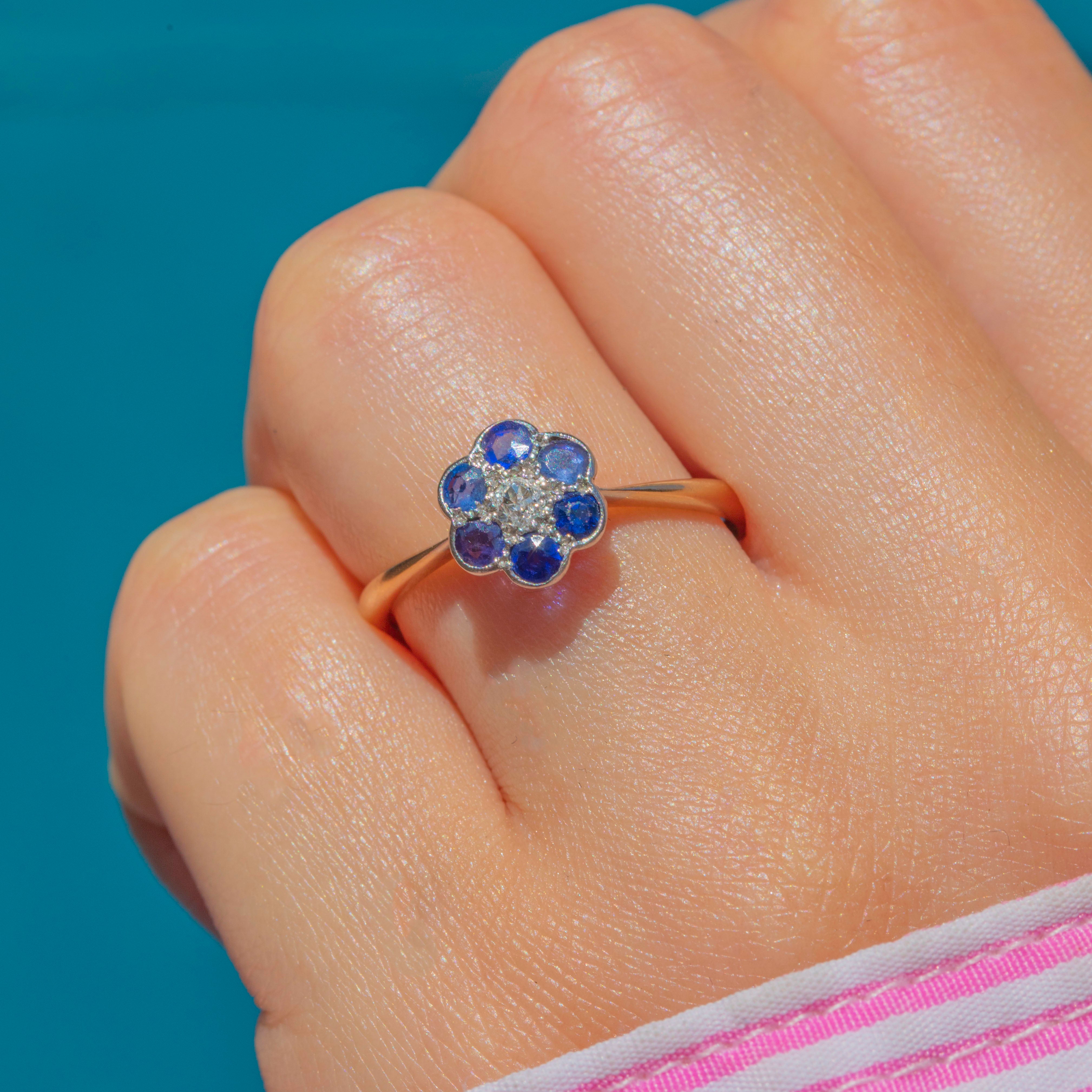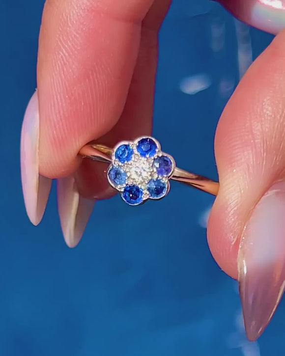 Antique 18ct Gold Sapphire Diamond Daisy Cluster Ring