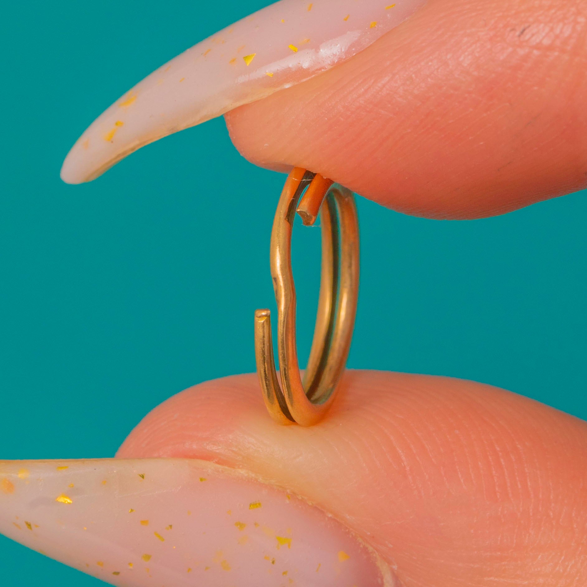 A Victorian split ring in solid 18ct Gold; this is a versatile accessory that slips on and off with ease. It makes an elegant, accent for everyday wear and delicate layering.