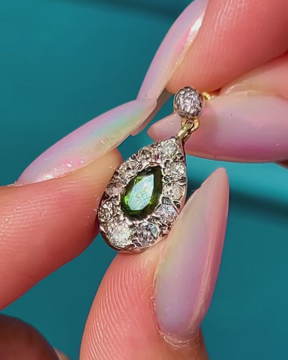 Antique 18ct Gold Tourmaline Diamond Pear Drop Earrings