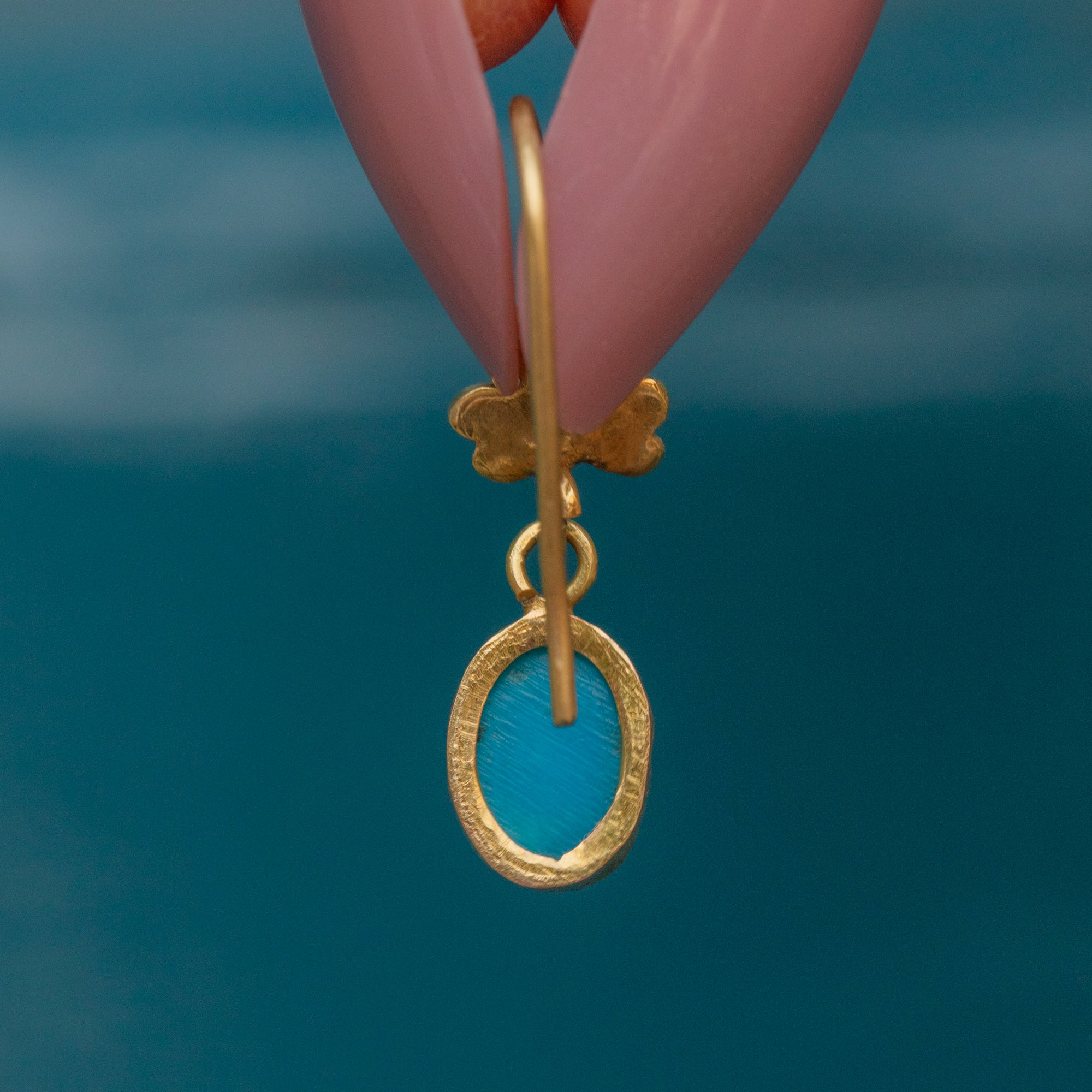 Bound together by buttery 18ct Gold, the splendour of these Victorian earrings is unmatched! Sitting snug in your lobe, her Turquoise cabochons have a lovely fluidity, adding the perfect pop of colour to any attire!