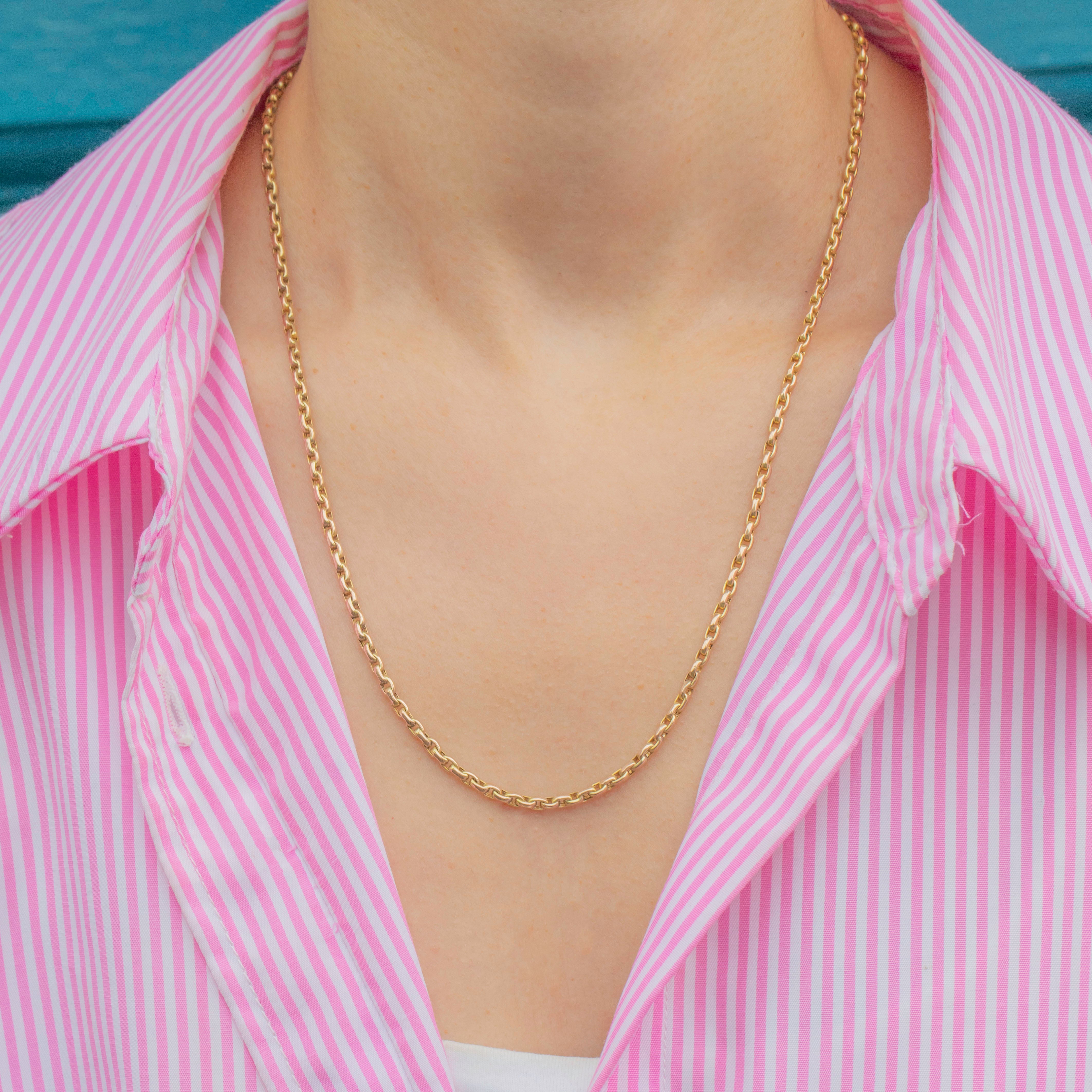 This 20" antique 9ct Gold belcher chain is splendid! Her glossy Gold links possess a lustrous sheen and move like liquid Gold as she adorns your décolletage.