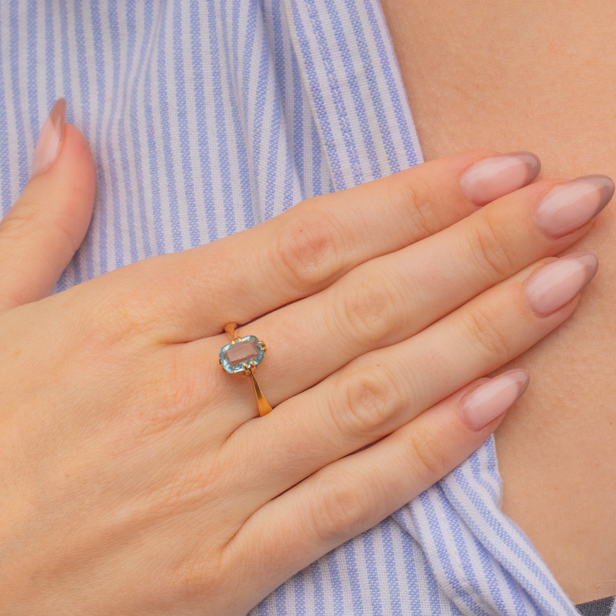 Bring a touch of Edwardian charm to your hand with this exquisite antique 22ct Gold Aquamarine solitaire ring! The icy blue hue of the 2.91ct Aquamarine is perfectly complemented by the brightly saturated 22ct Gold, creating an elegant and eye-catching colour combination.