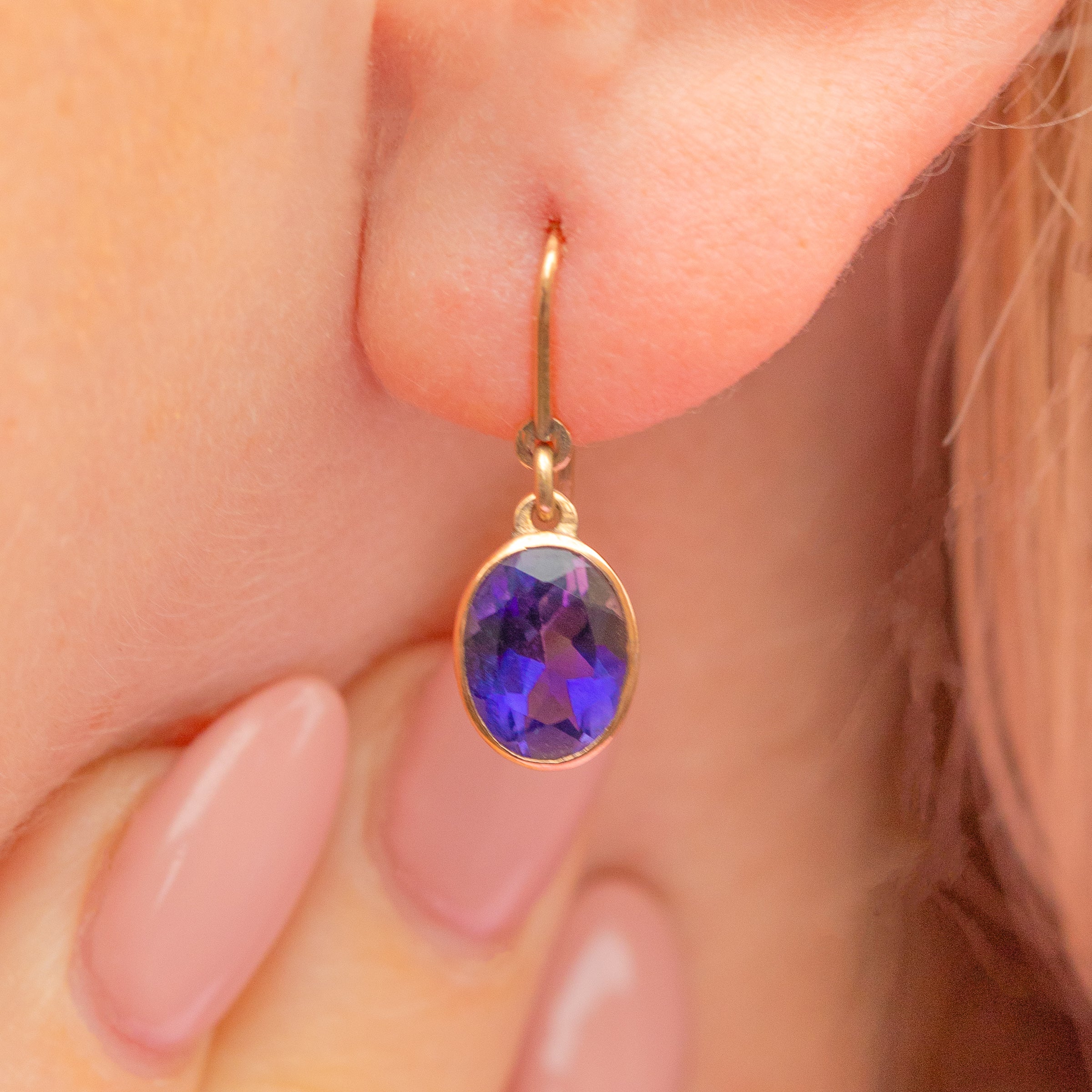 These antique 9ct Gold Amethyst drop earrings are perfect for adding an instant pop of colour to any outfit! The rich violet Amethyst drops are encased in warm buttery 9ct Gold bezels, making for a regal and sophisticated pairing.