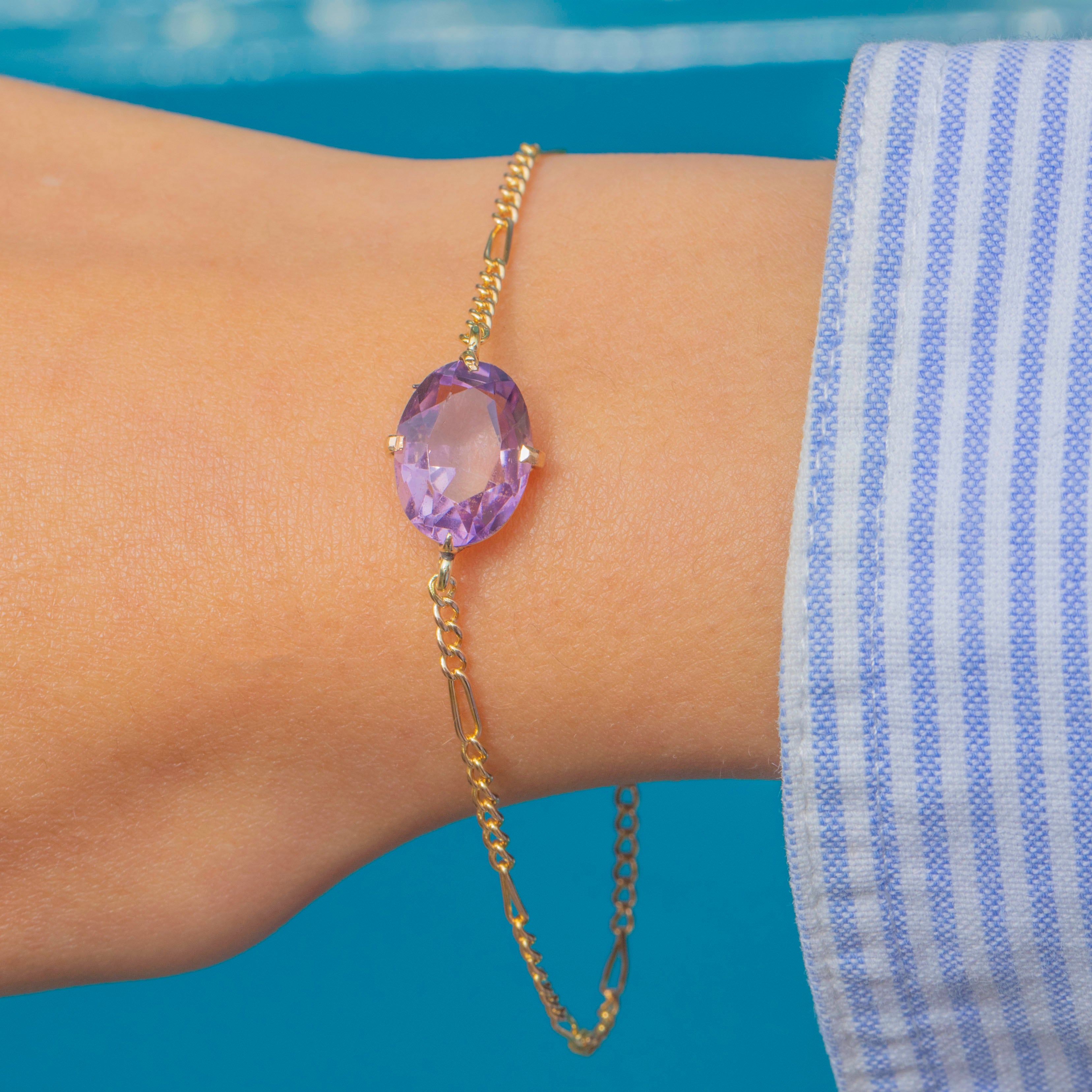 EXCELLENT: The Amethyst is radiant, with only very minor surface wear present upon close inspection. The chain links are uniform and secure and with its bolt-ring in perfect working order, this bracelet can be worn with utmost confidence.