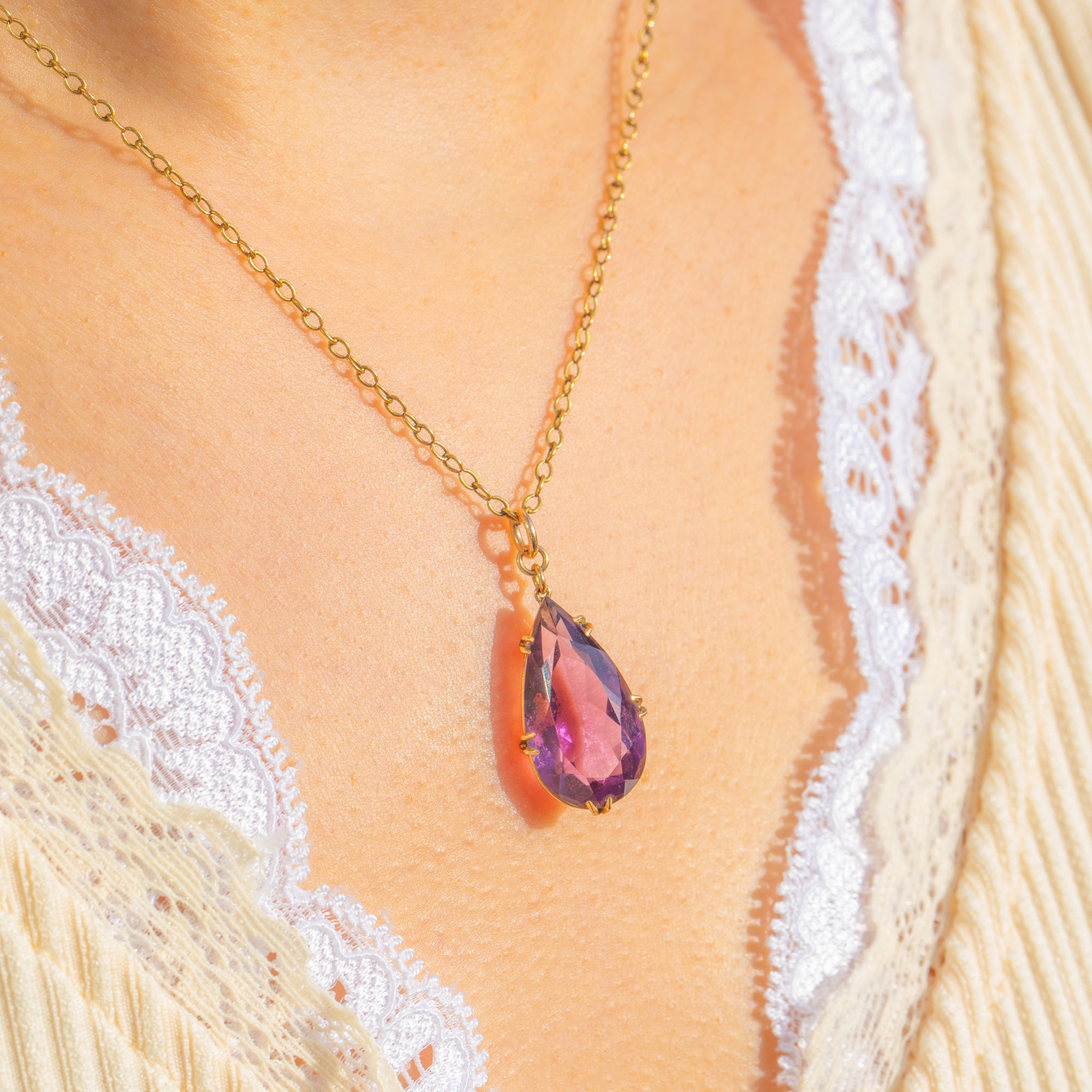 Antique 9ct Gold Amethyst Pear Drop Pendant, 7.80ct