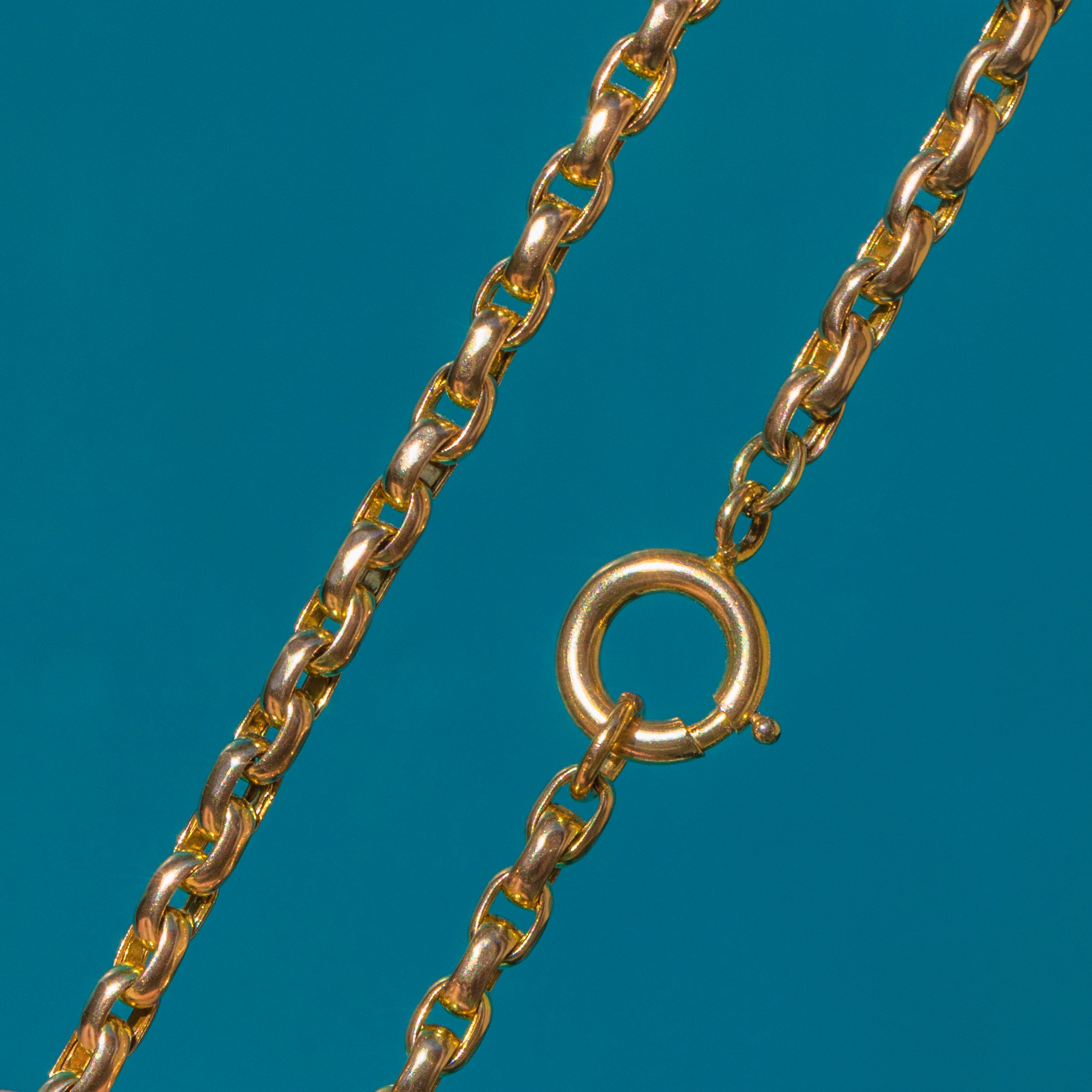 EXCELLENT. This antique 9ct Gold belcher bracelet is in excellent condition! The links are buttery and glossy throughout and have maintained their perfectly formed shape. The bolt-ring is in perfect working condition allowing you to wear with the utmost confidence!