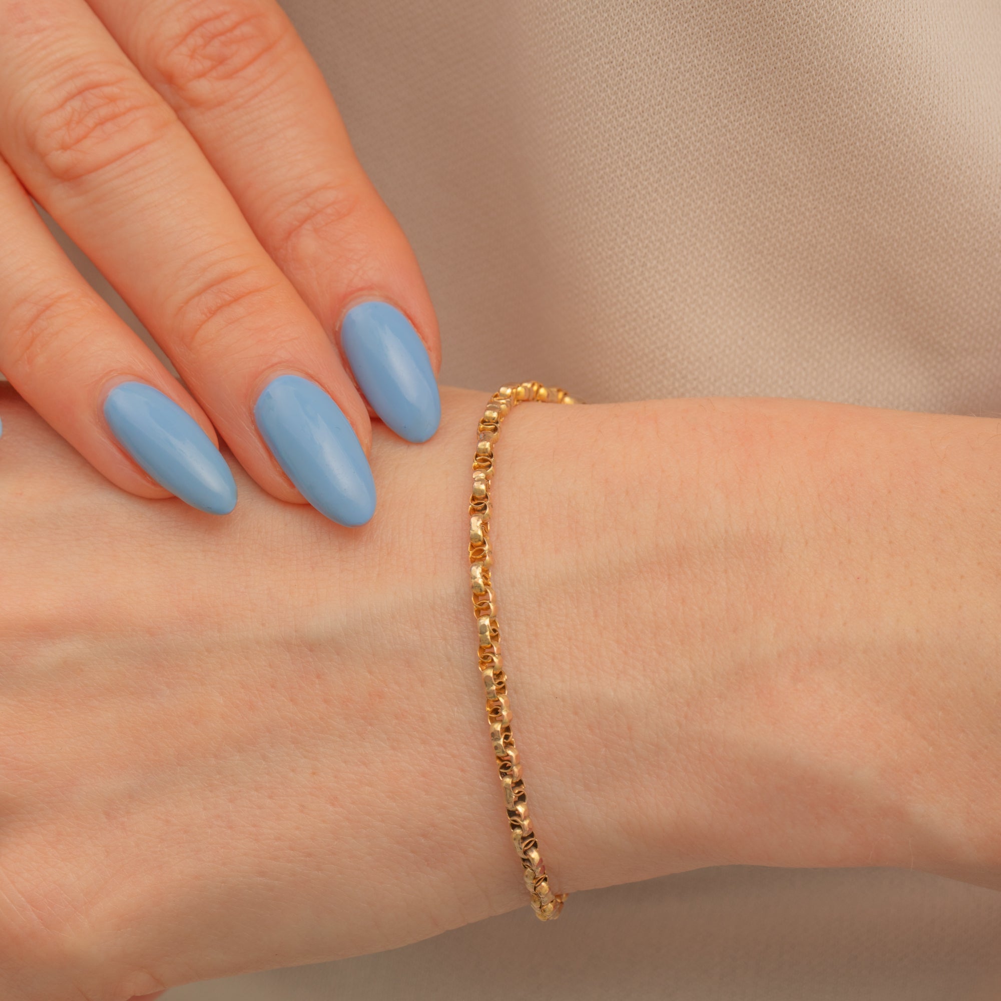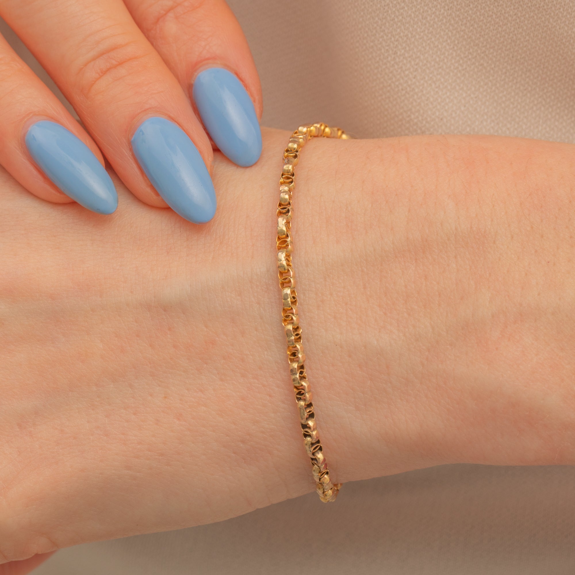 Composed of 2.3g of sumptuous solid 9ct Gold, this petite Victorian bracelet is dainty and sophisticated with uniquely formed belcher links for a decorative finish. She will certainly inject some classic Victorian charm into your everyday outfits!