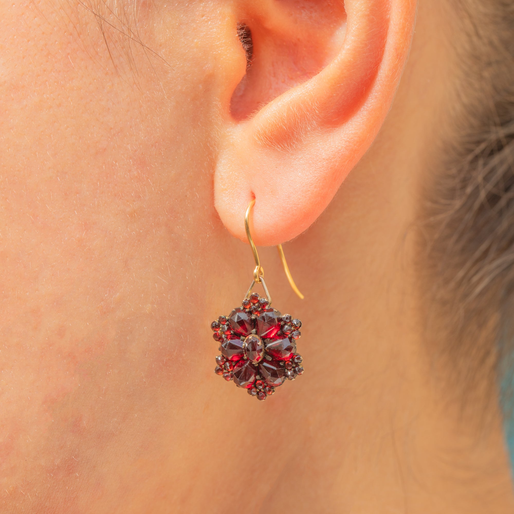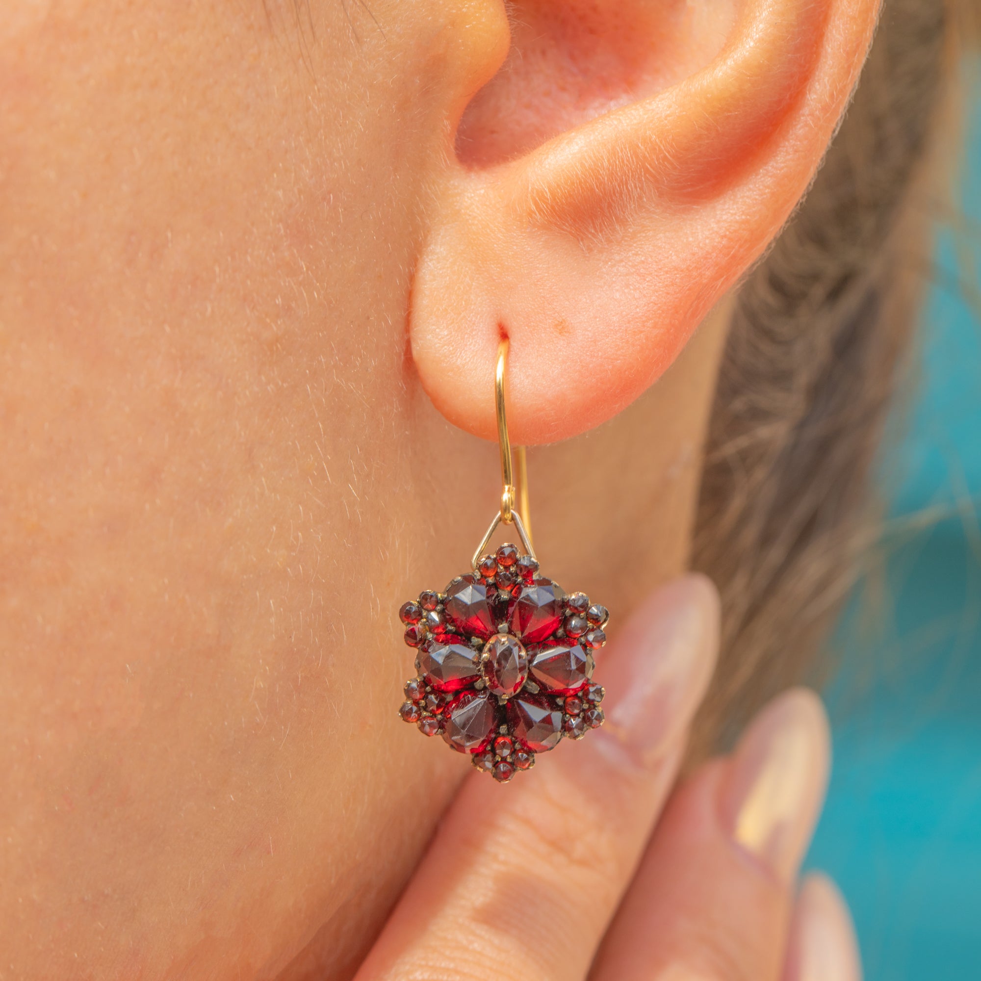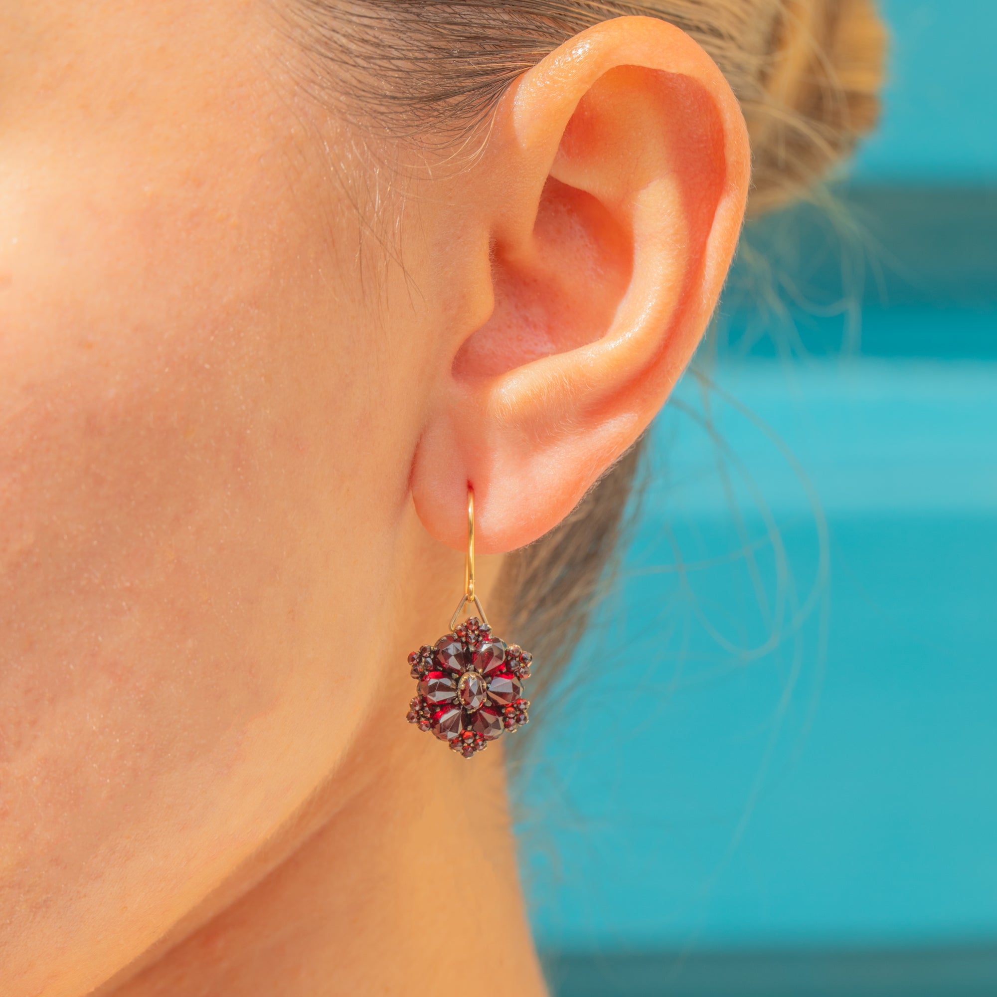 These Antique earrings are lightweight yet eye-catching, with a romantic and timeless appeal. A fine example of Bohemian craftsmanship, they are a must-have for Garnet lovers and antique jewellery enthusiasts alike.