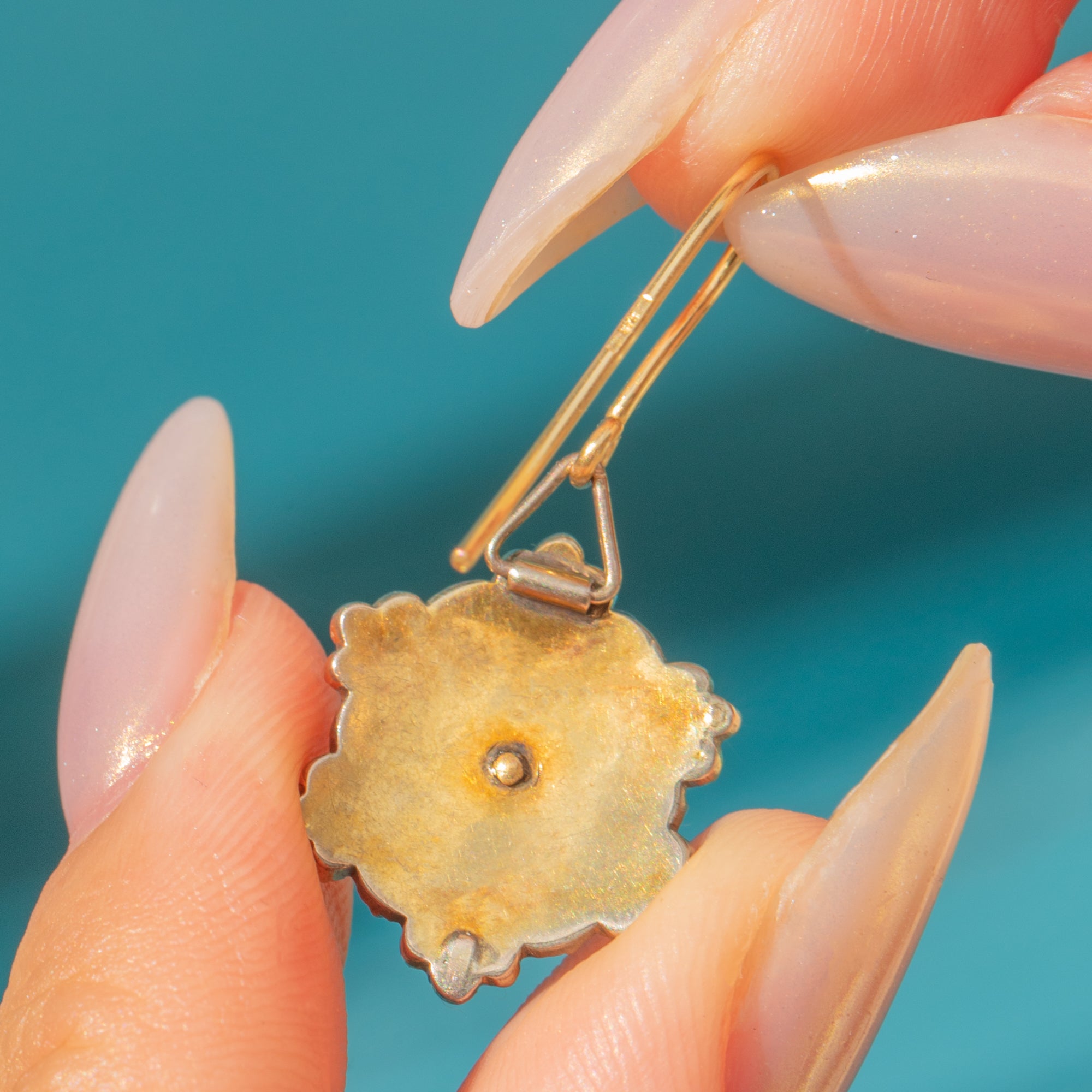 Earrings measure 30mm long x 14.5mm wide.