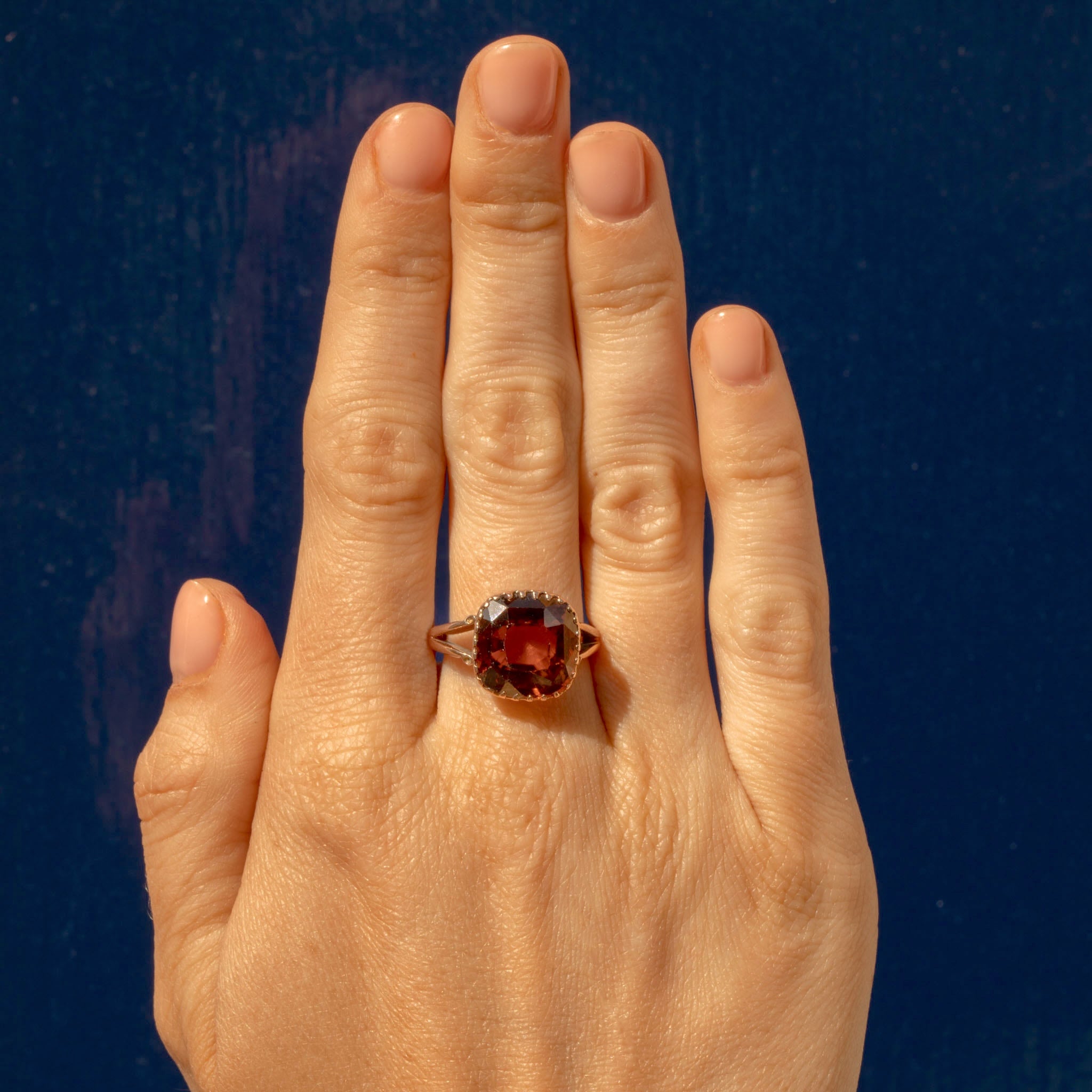 The Zircon provides ample finger coverage, impressing with her large size and gleaming facets. The split shoulders come together to form one smooth band that allows this ring to sit comfortably all day long!