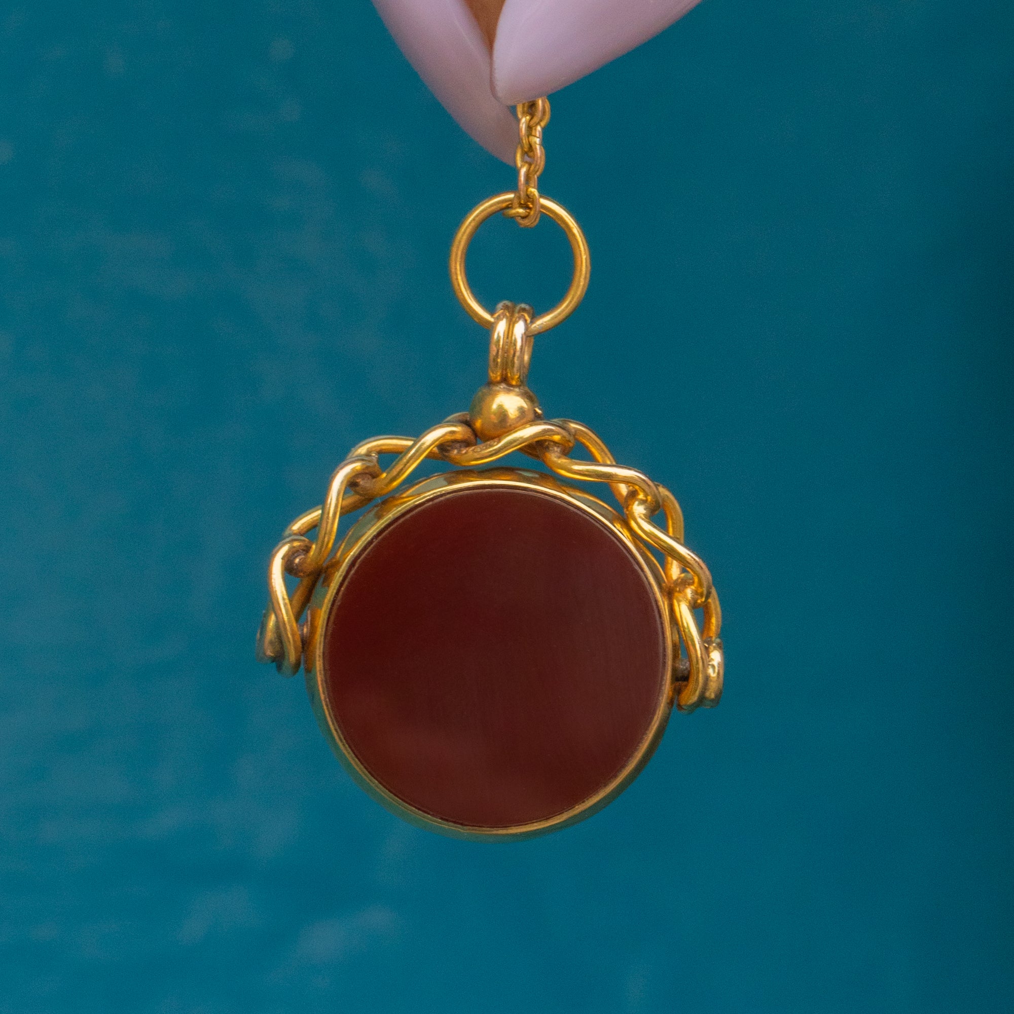 Antique 9ct Gold Carnelian Bloodstone Swivel Fob Pendant, c.1900