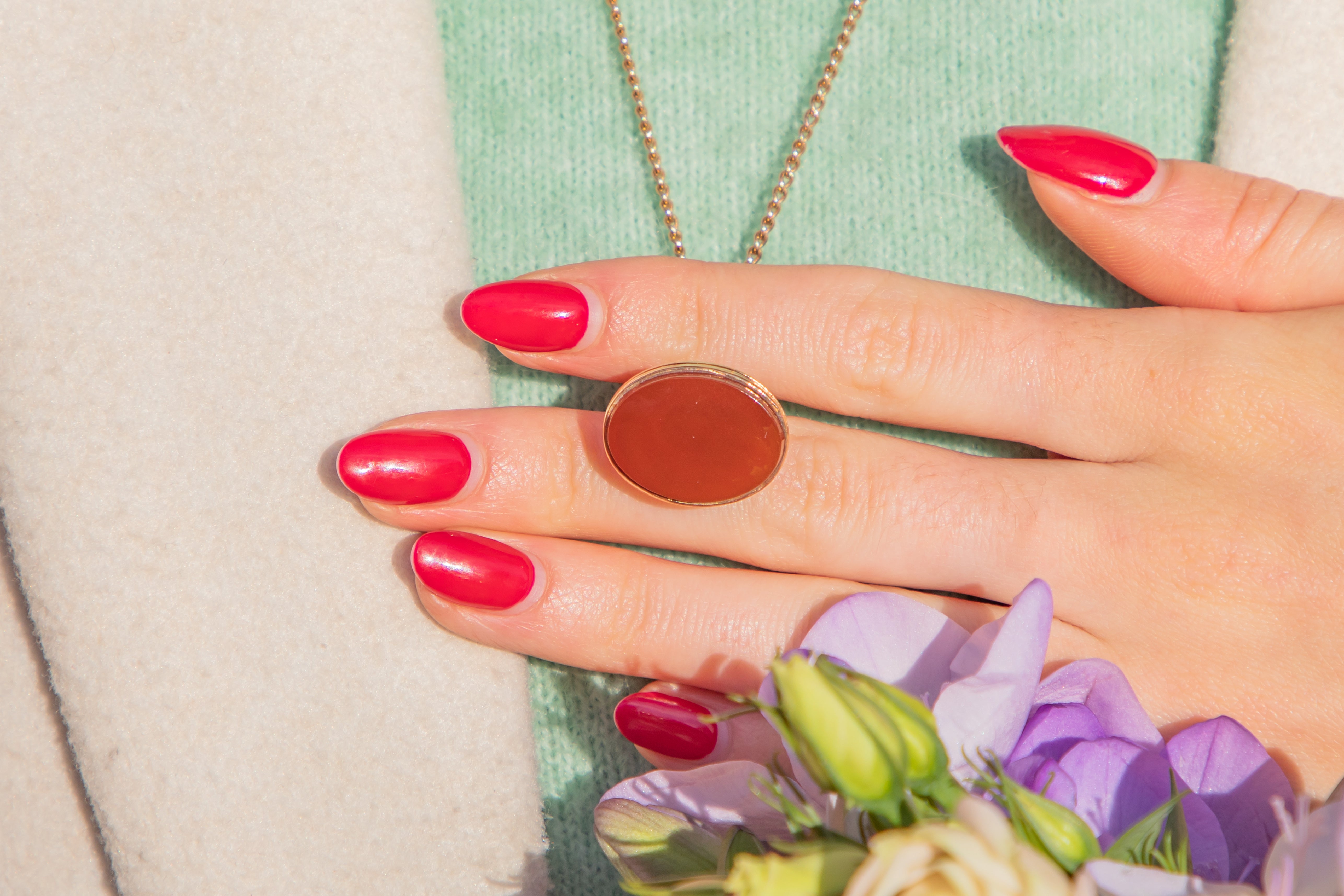MATERIALS: Tests as 9ct Gold, Carnelian.