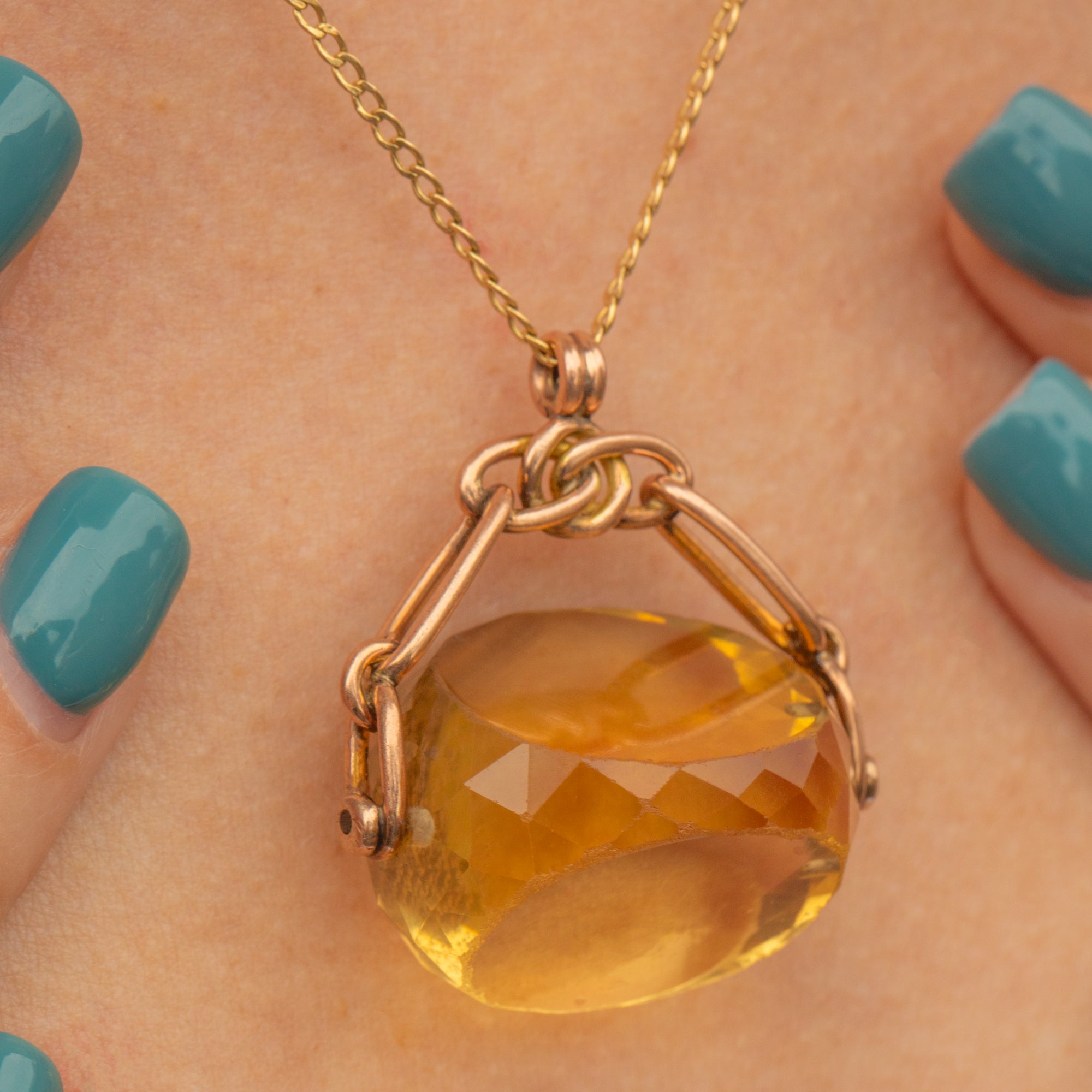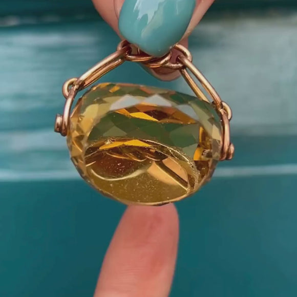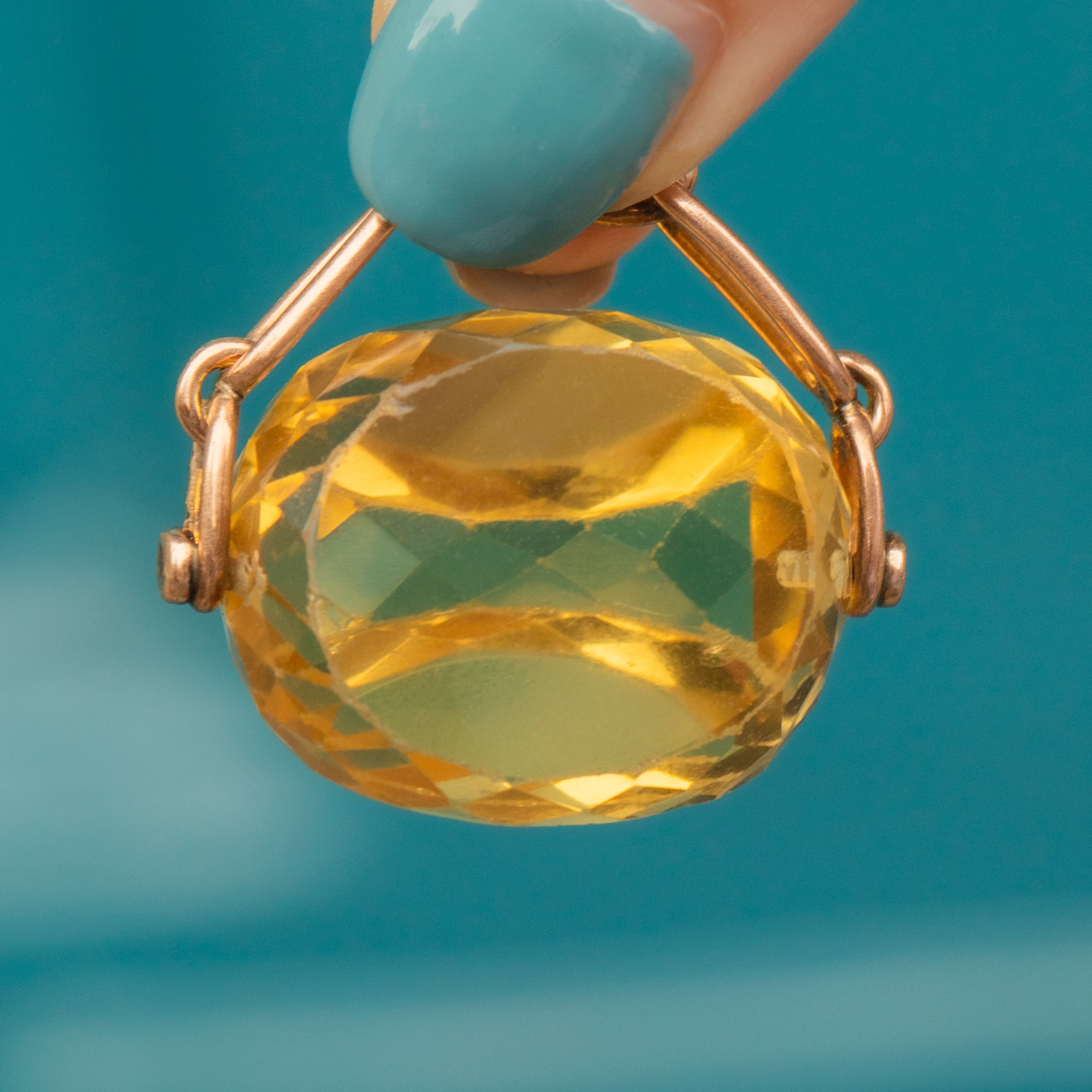 Antique 9ct Gold Citrine Spinner Fob Pendant, 32.11ct