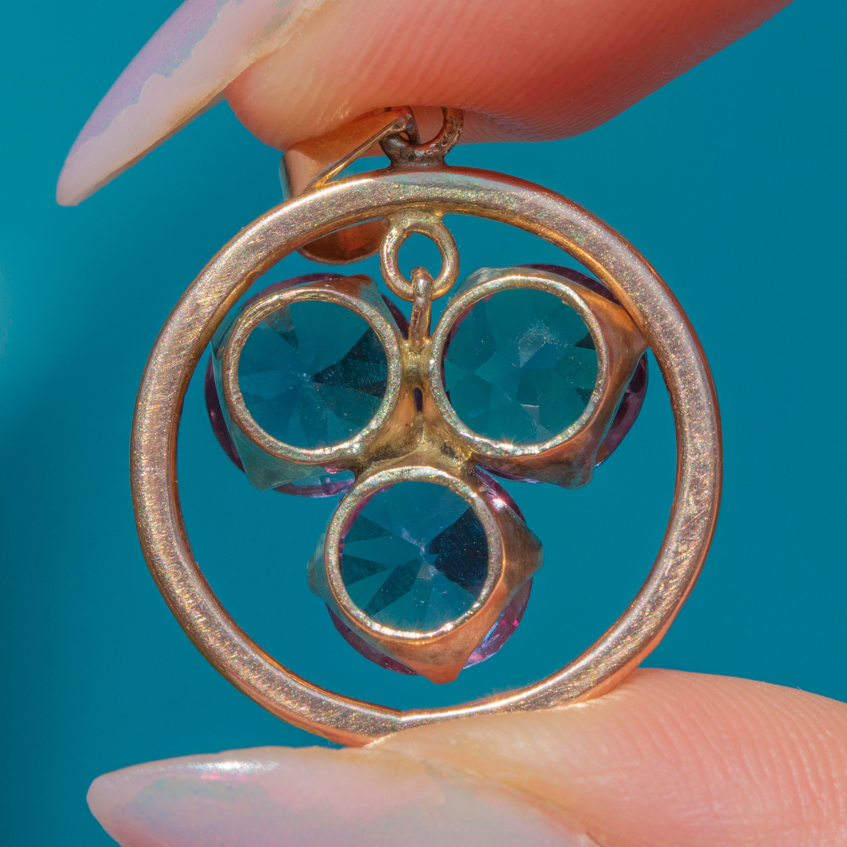 Antique 9ct Gold Colour Change Sapphire Shamrock Pendant 7.30ct