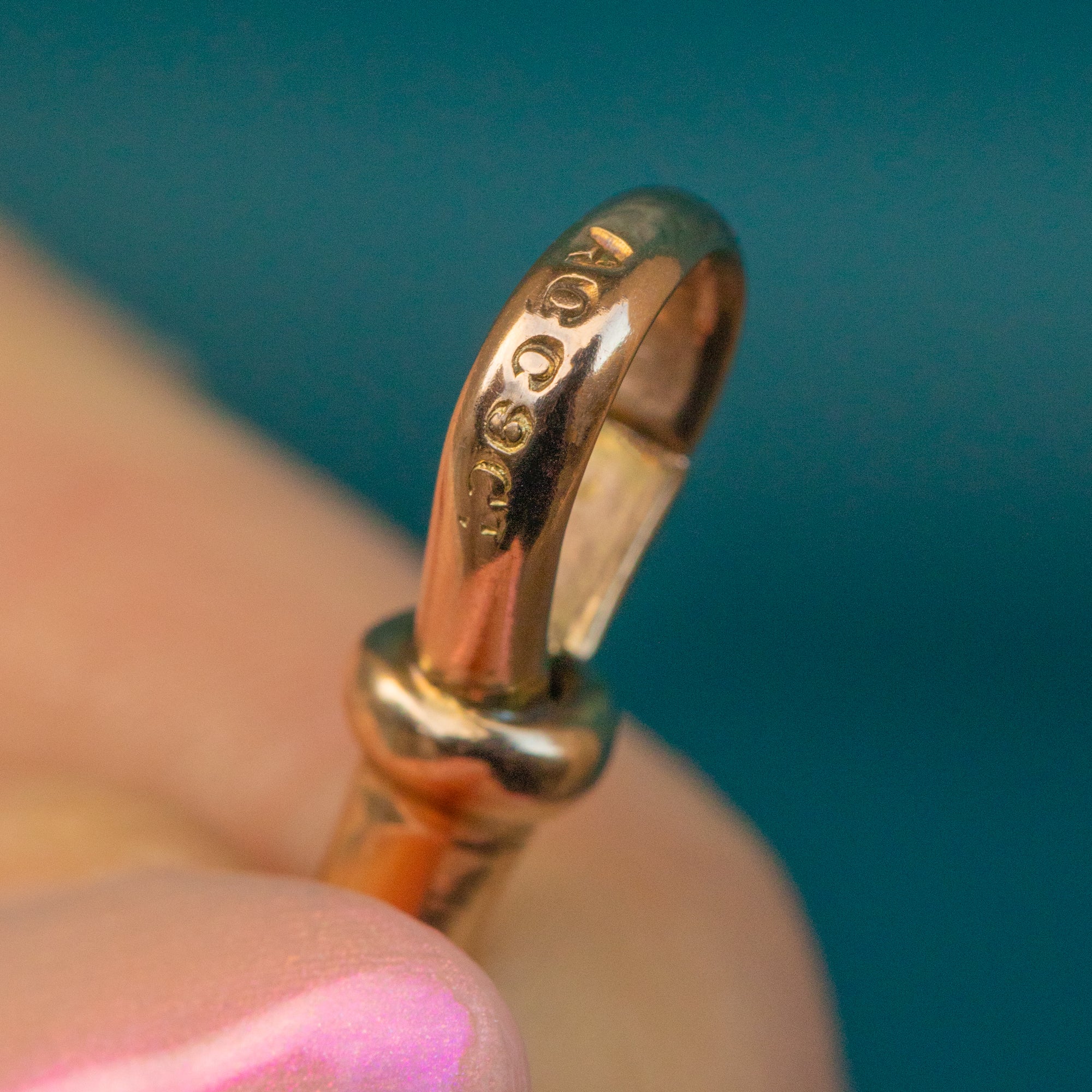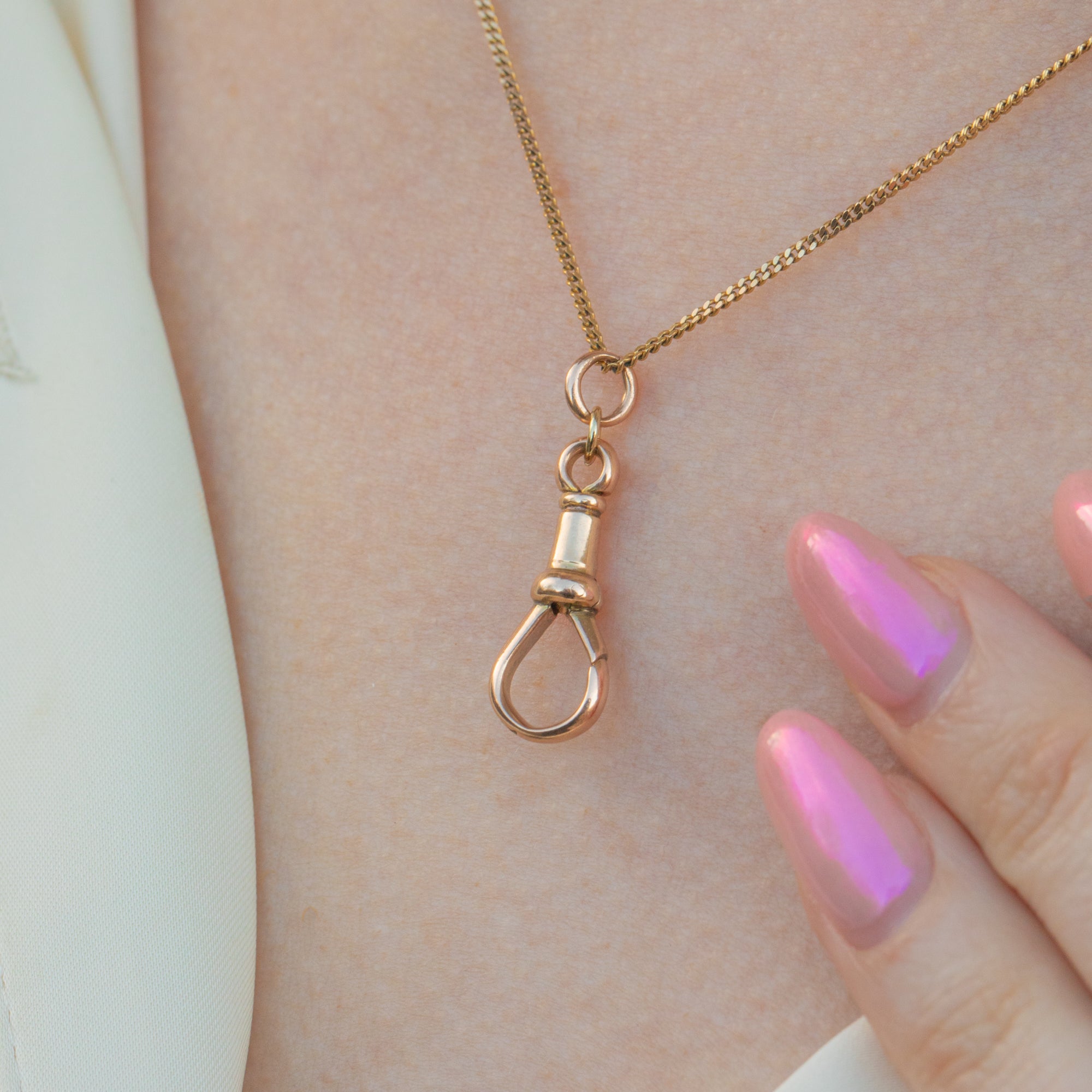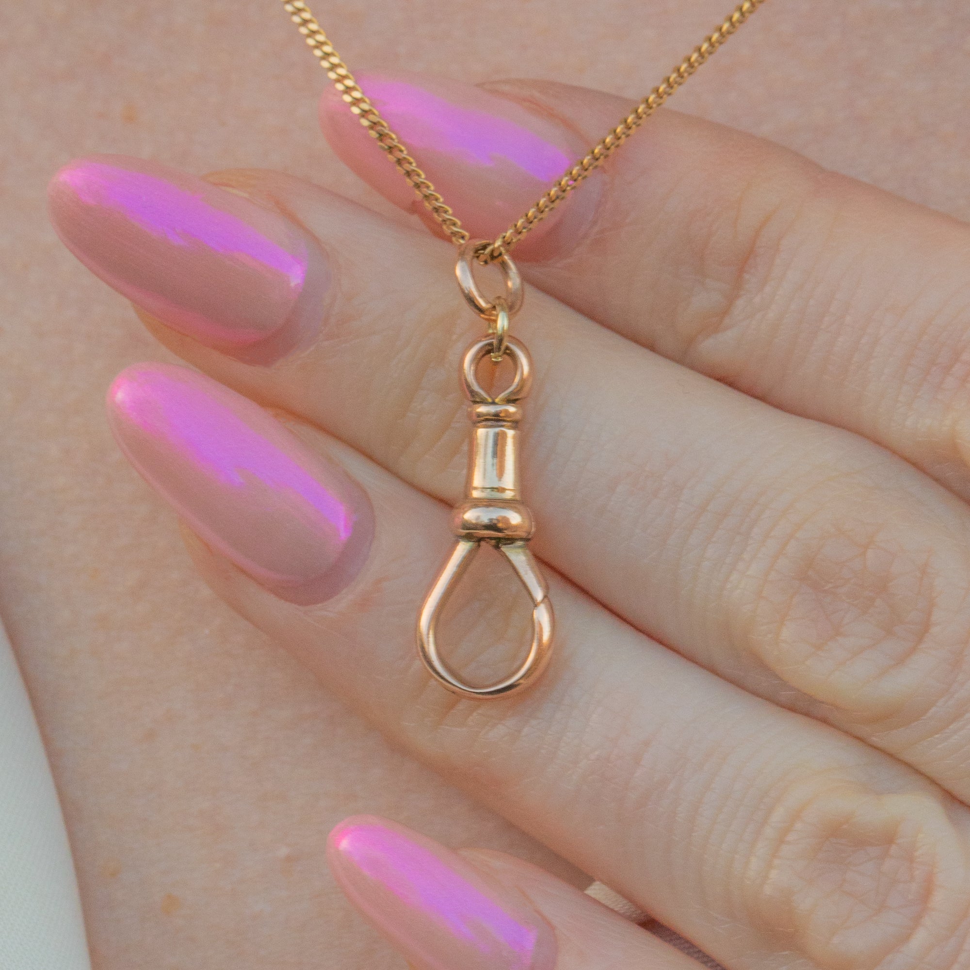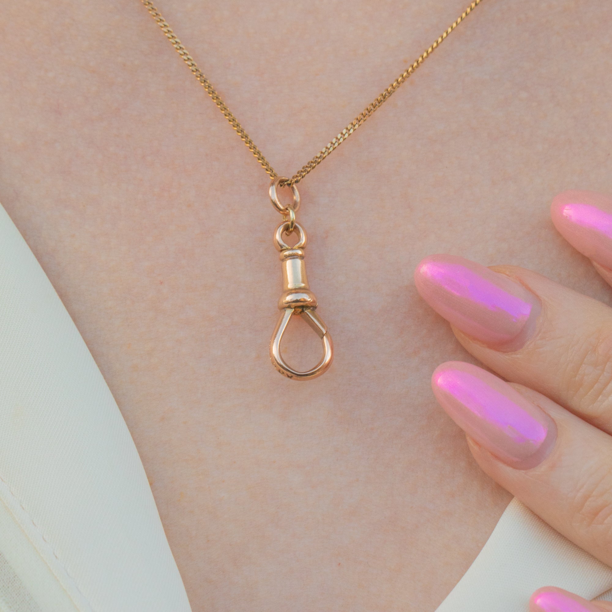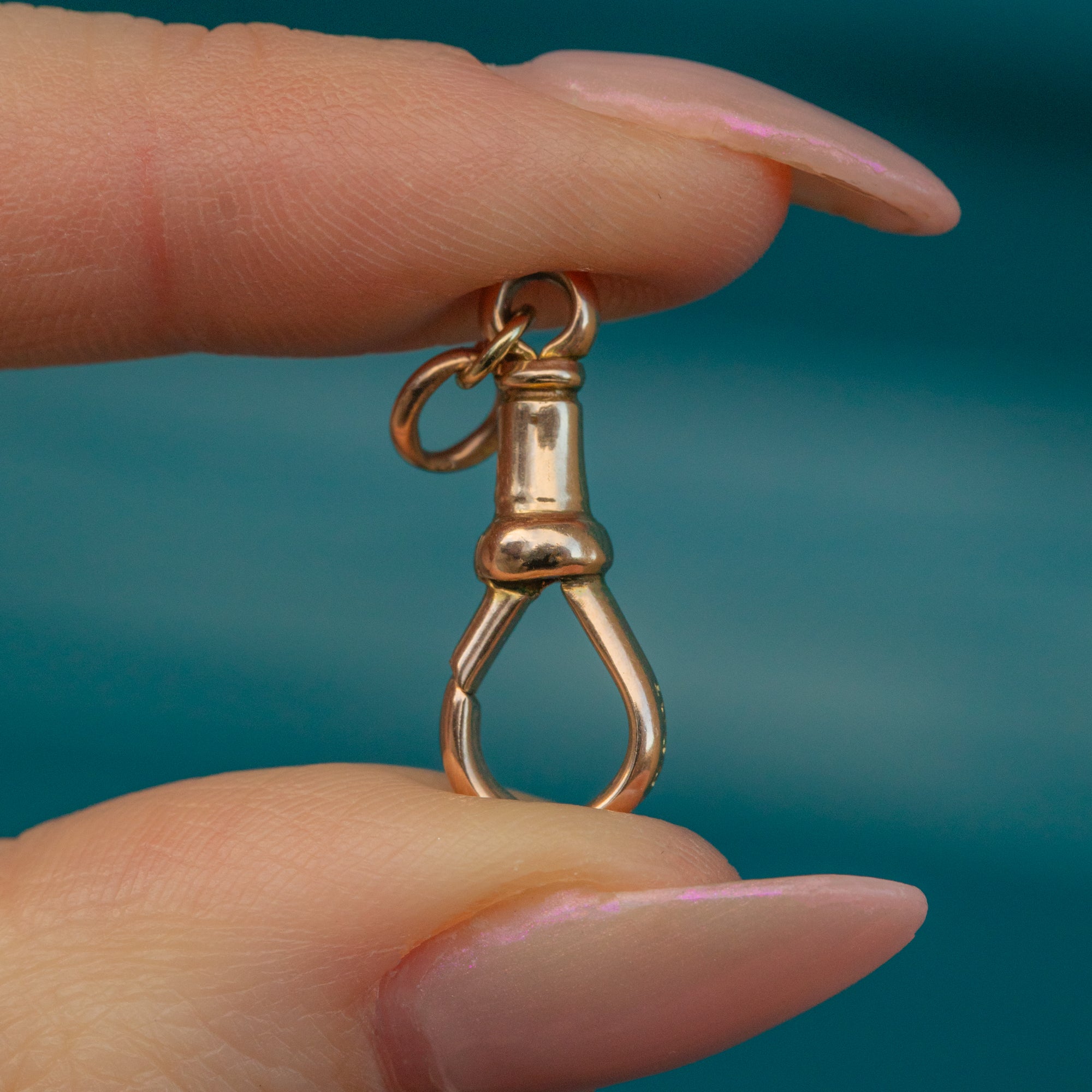 This antique 9ct Gold dog-clip charm holder is a highly sought-after Victorian finding and will provide you with ample styling possibilities! Crafted from buttery 9ct Gold, not only is she elegant, but it also allows you to suspend any combination of charms from a chain with ease.