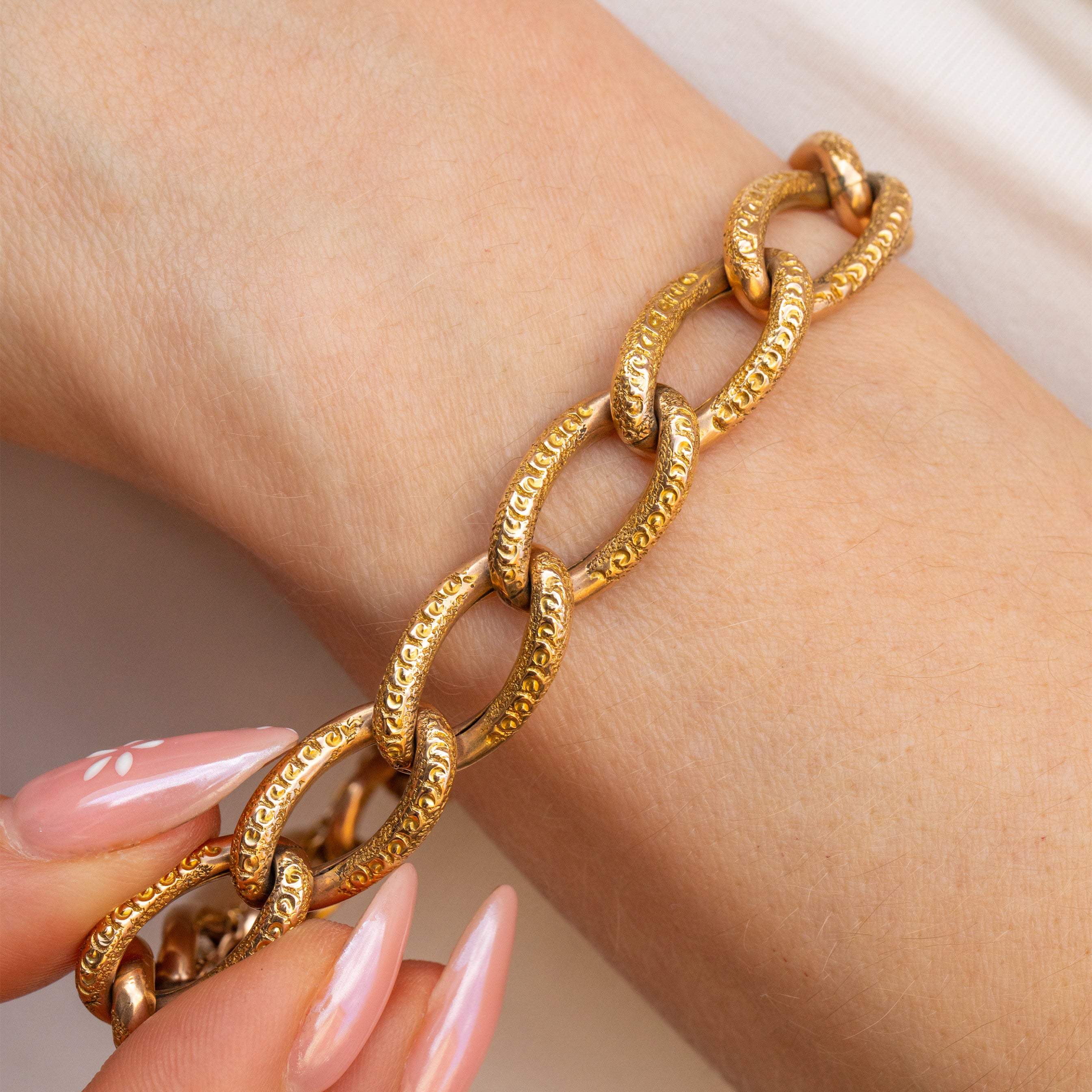 Allow 16g of 9ct Gold goodness to adorn your wrist! This romantic Victorian bracelet has been finished with a beautifully engraved 9ct Gold padlock, creating a cohesive piece that will sit proudly on your wrist.