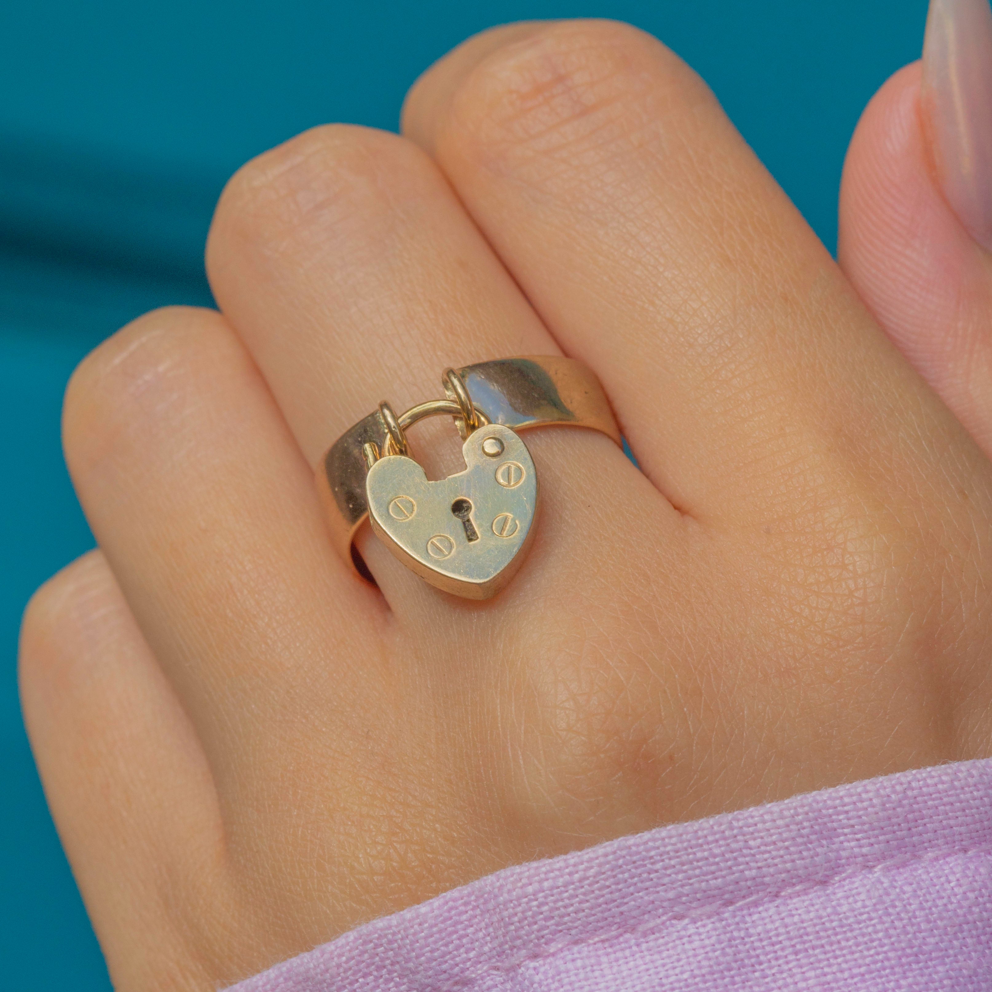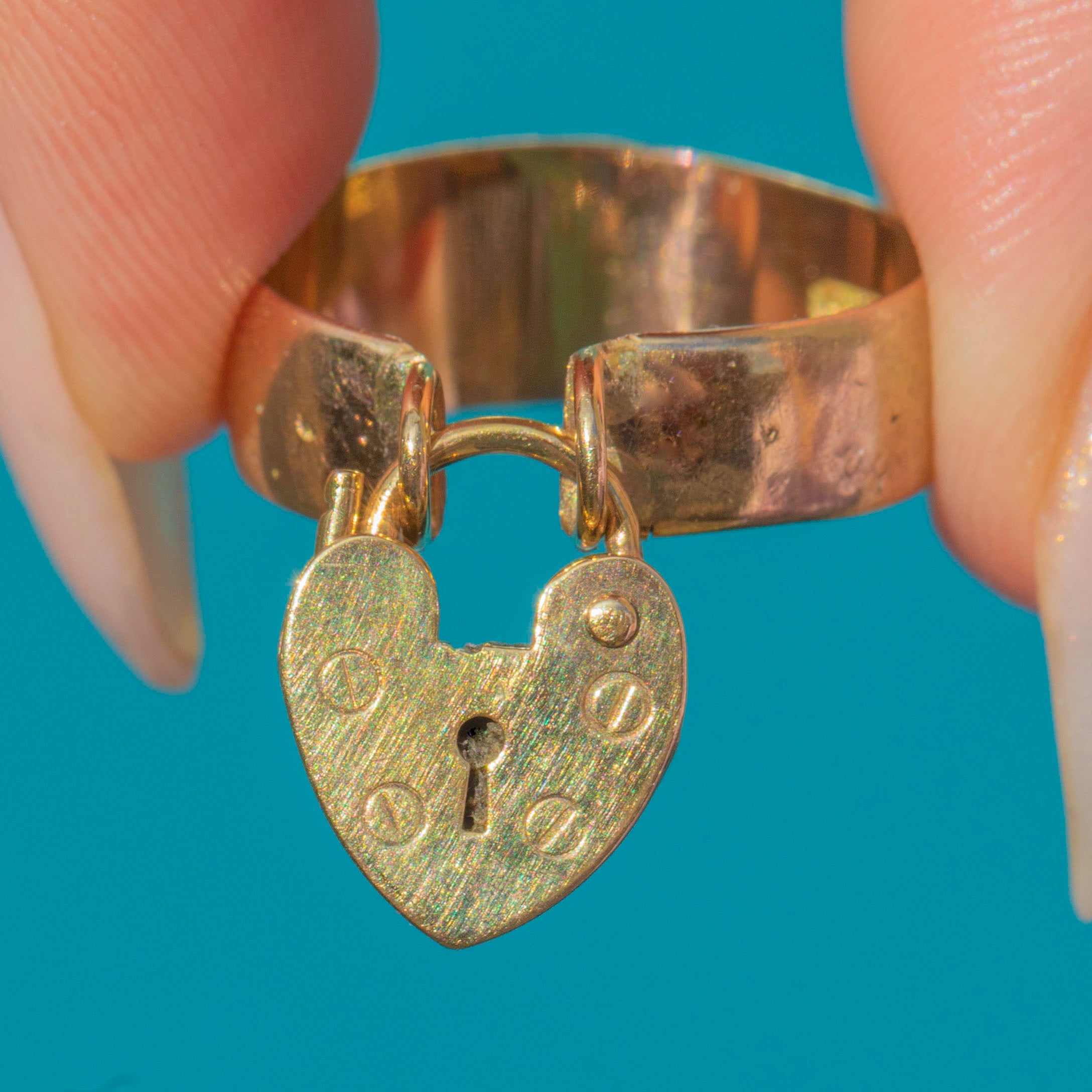 Antique 9ct Gold Engraved Heart Padlock Ring, c.1890