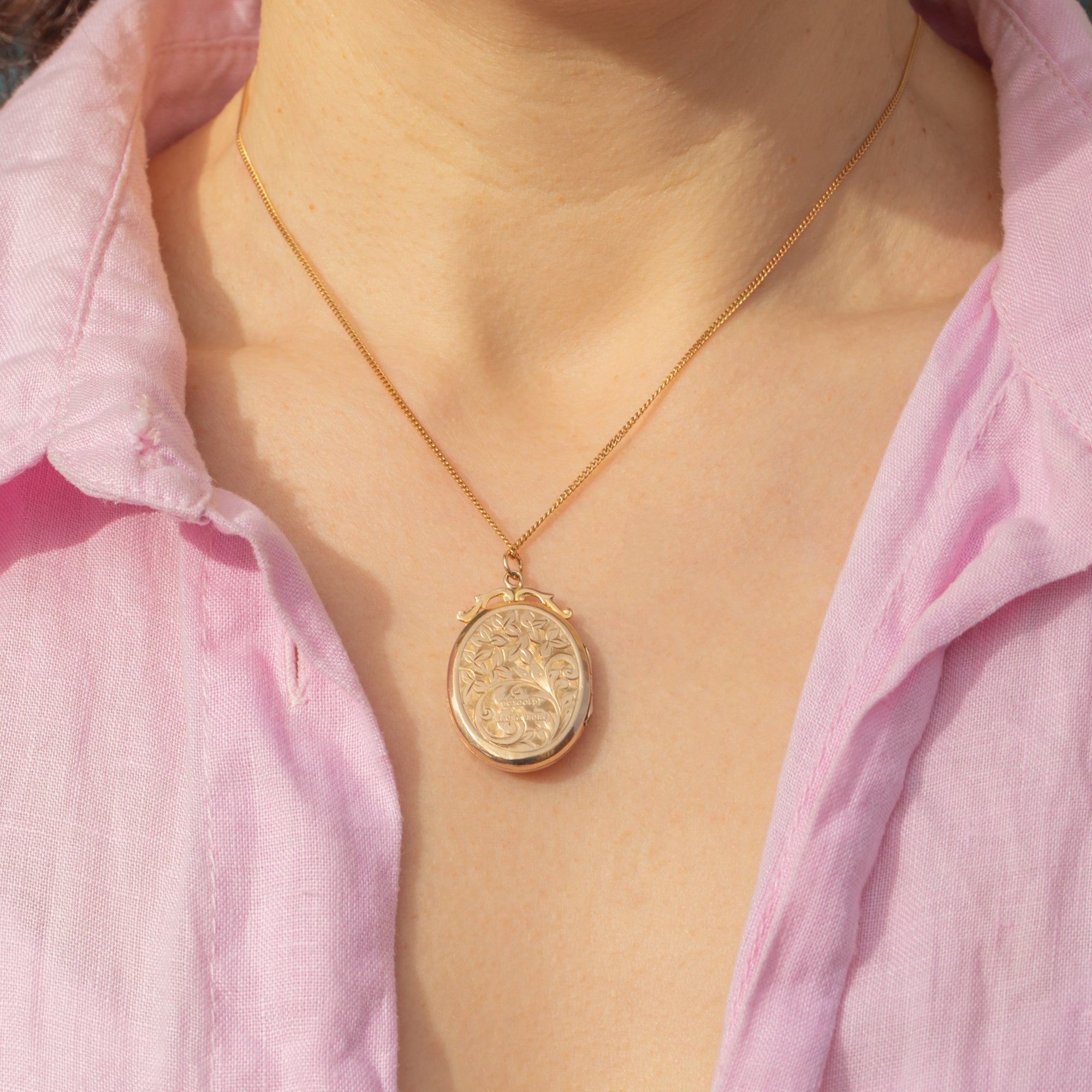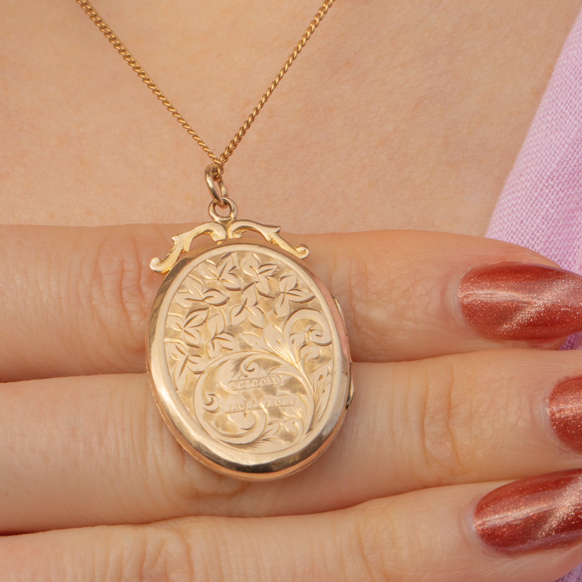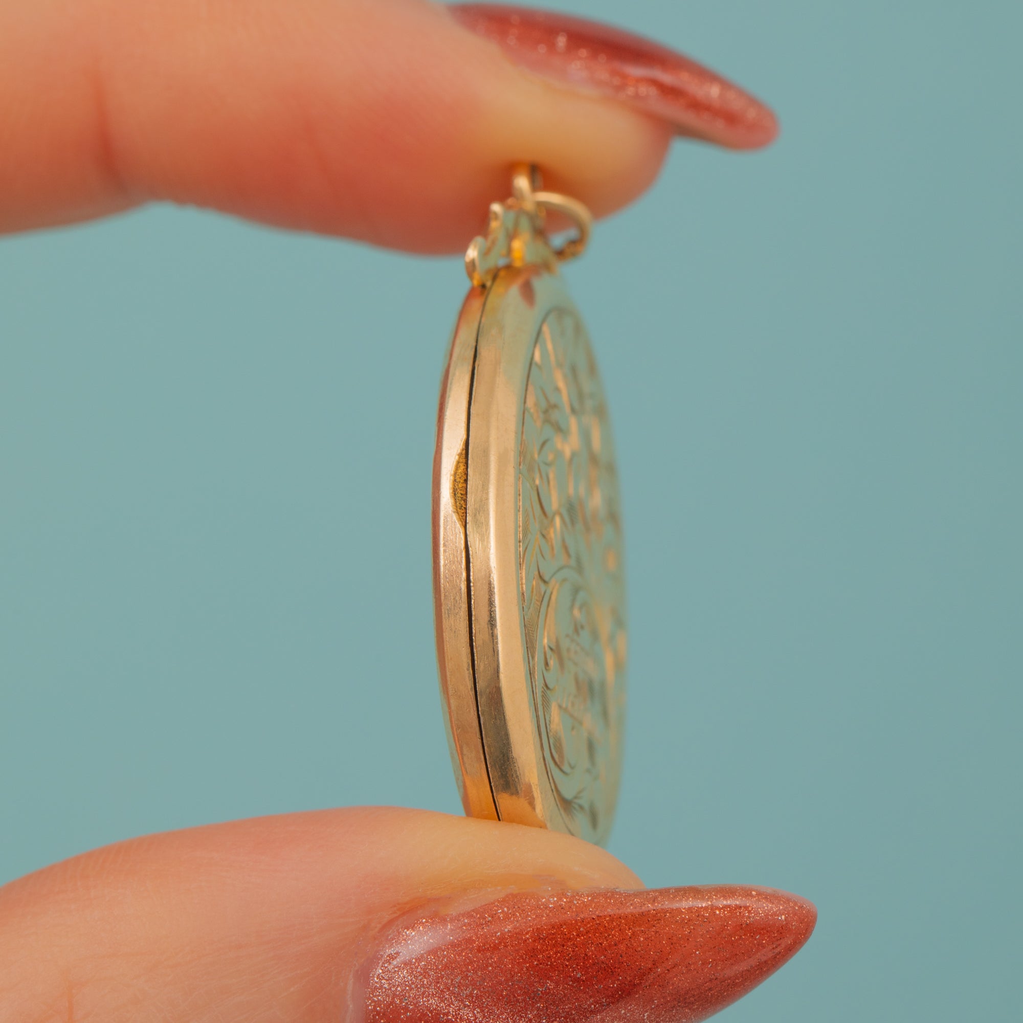 VERY GOOD. This antique 9ct Gold engraved oval locket is in very good condition! The outside of the locket has been beautifully preserved, with the engravings still crisp and clear. The locket has no damage, but there is some light wear to the edge which is to be expected from a piece of jewellery created over 100 years ago. This Victorian locket is complete with a sturdy 9ct Gold jump so you can wear her with confidence!