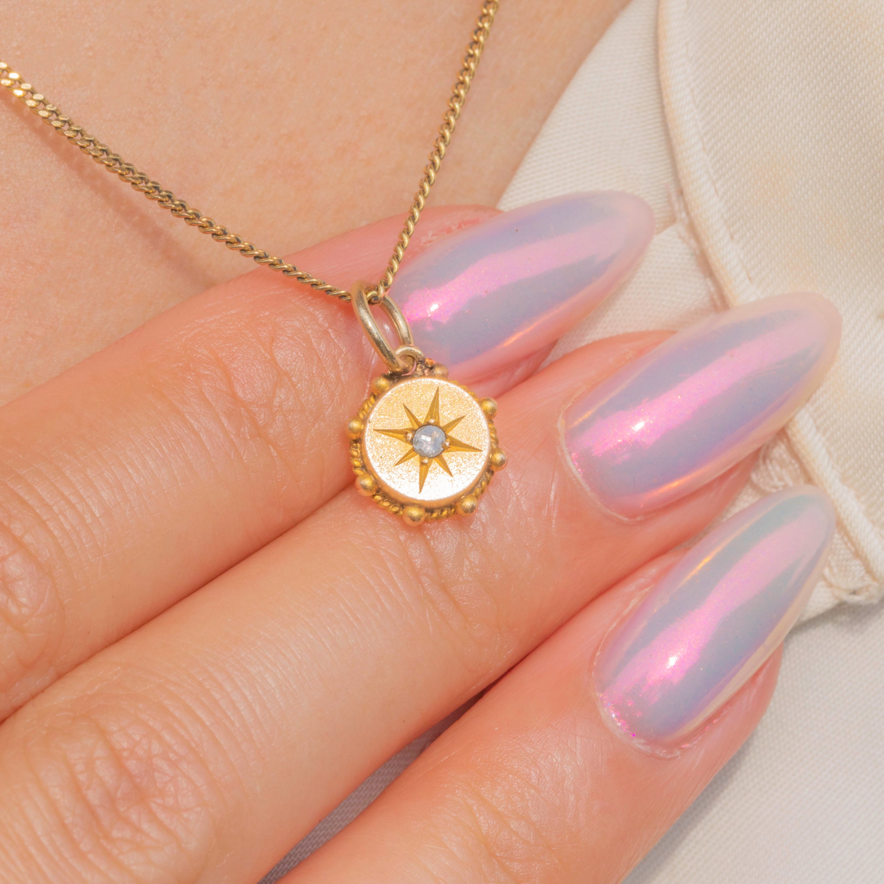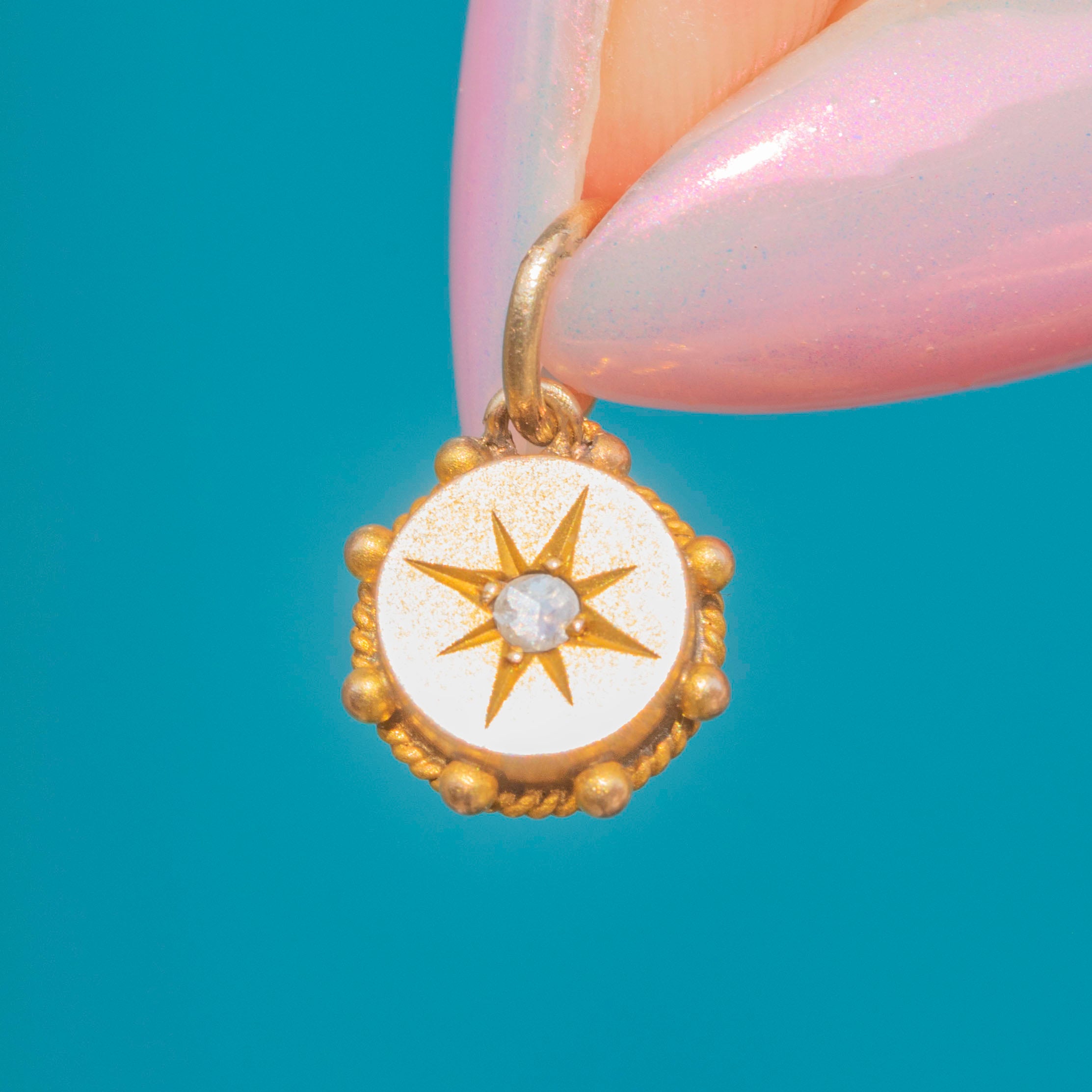 This antique 9ct Gold Etruscan Diamond charm is full of celestial allure!