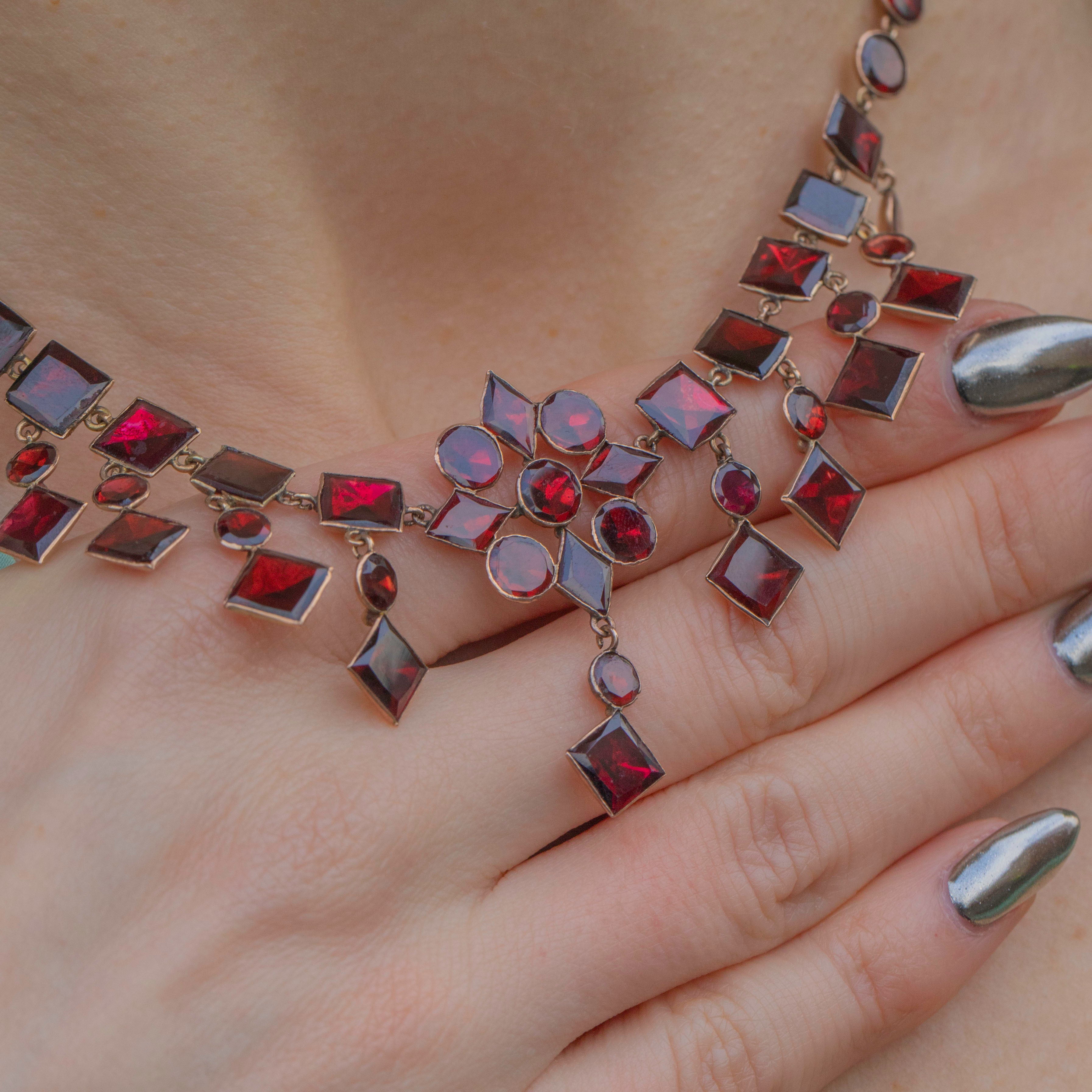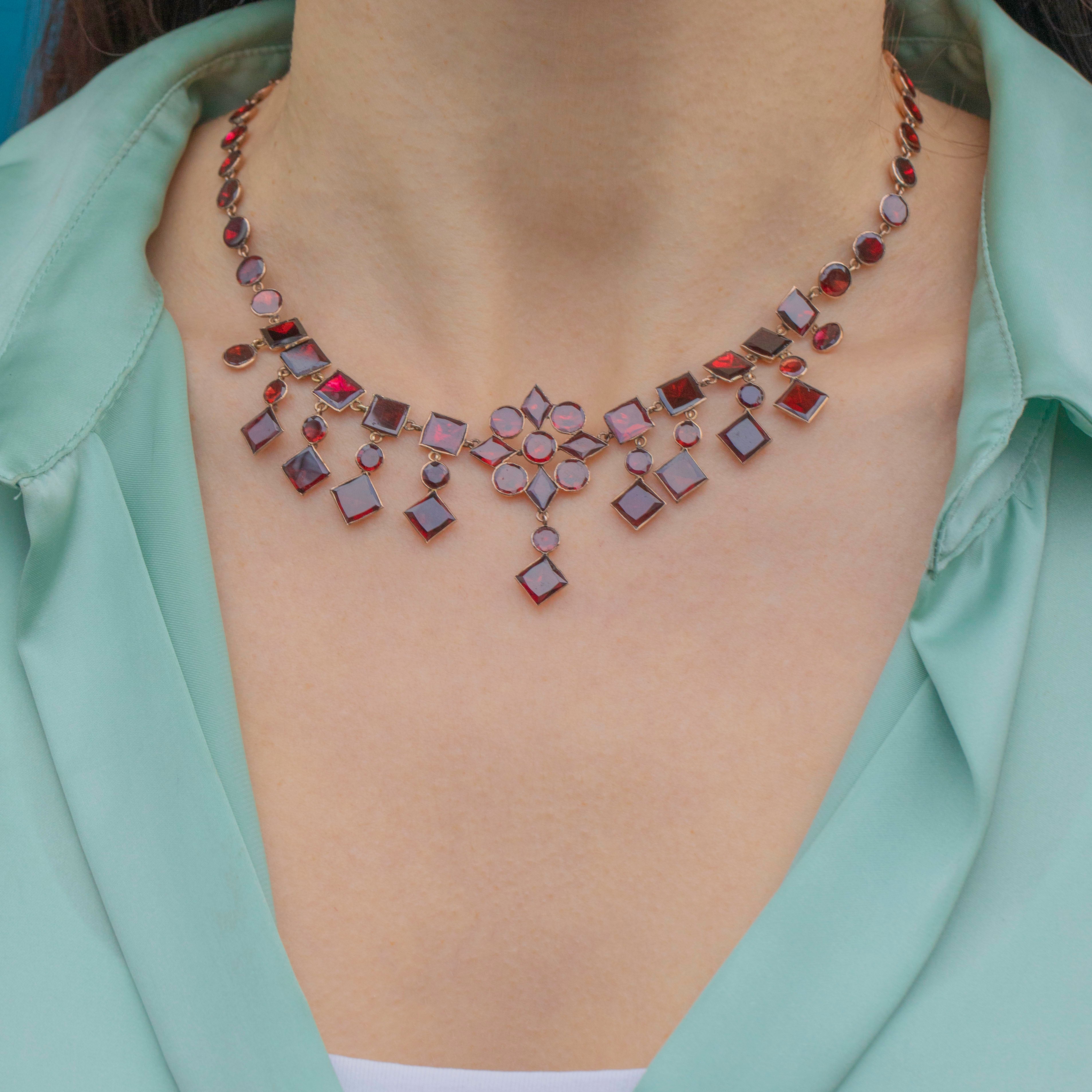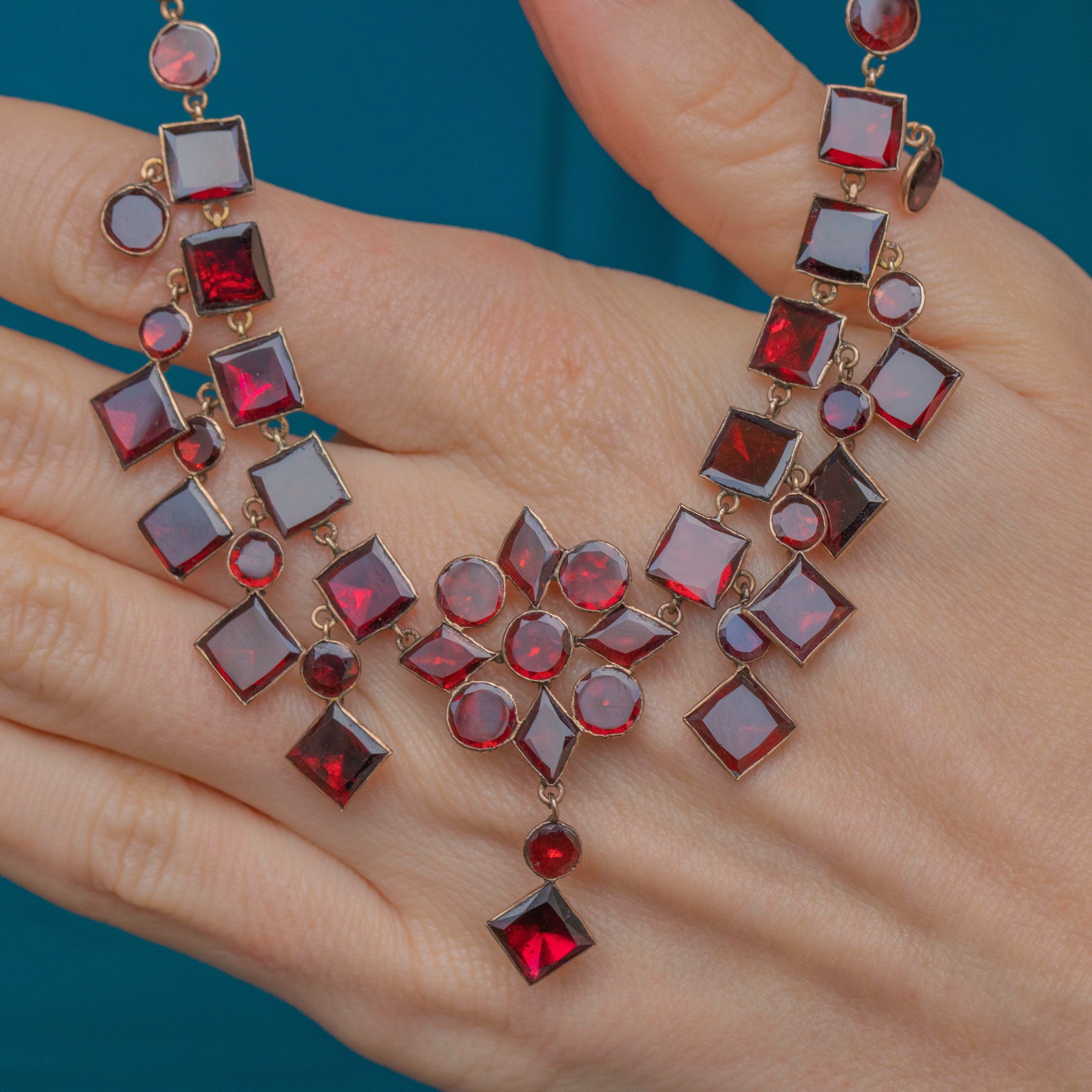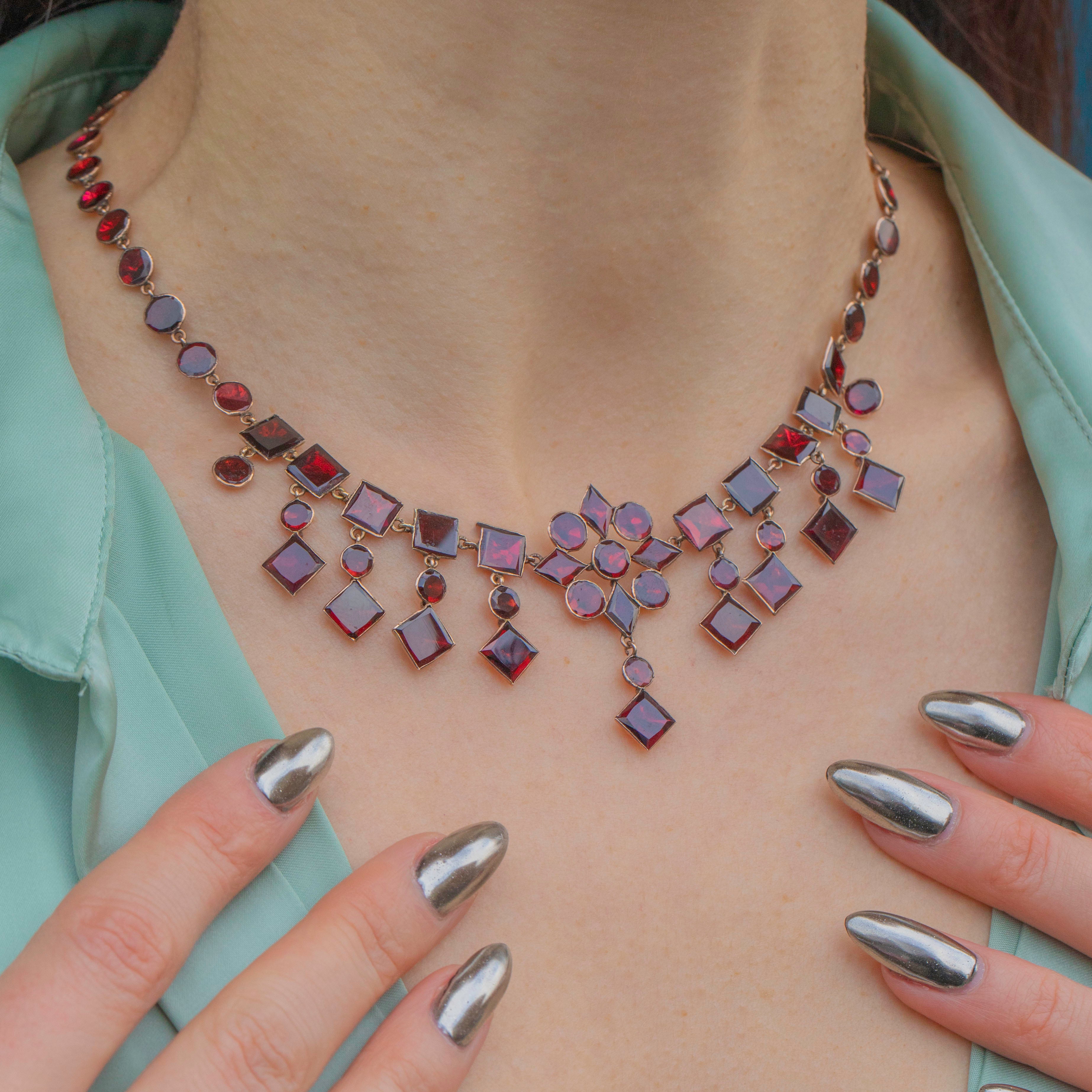 Antique 9ct Gold Flat-Cut Garnet Fringe Necklace, 28.00ct
