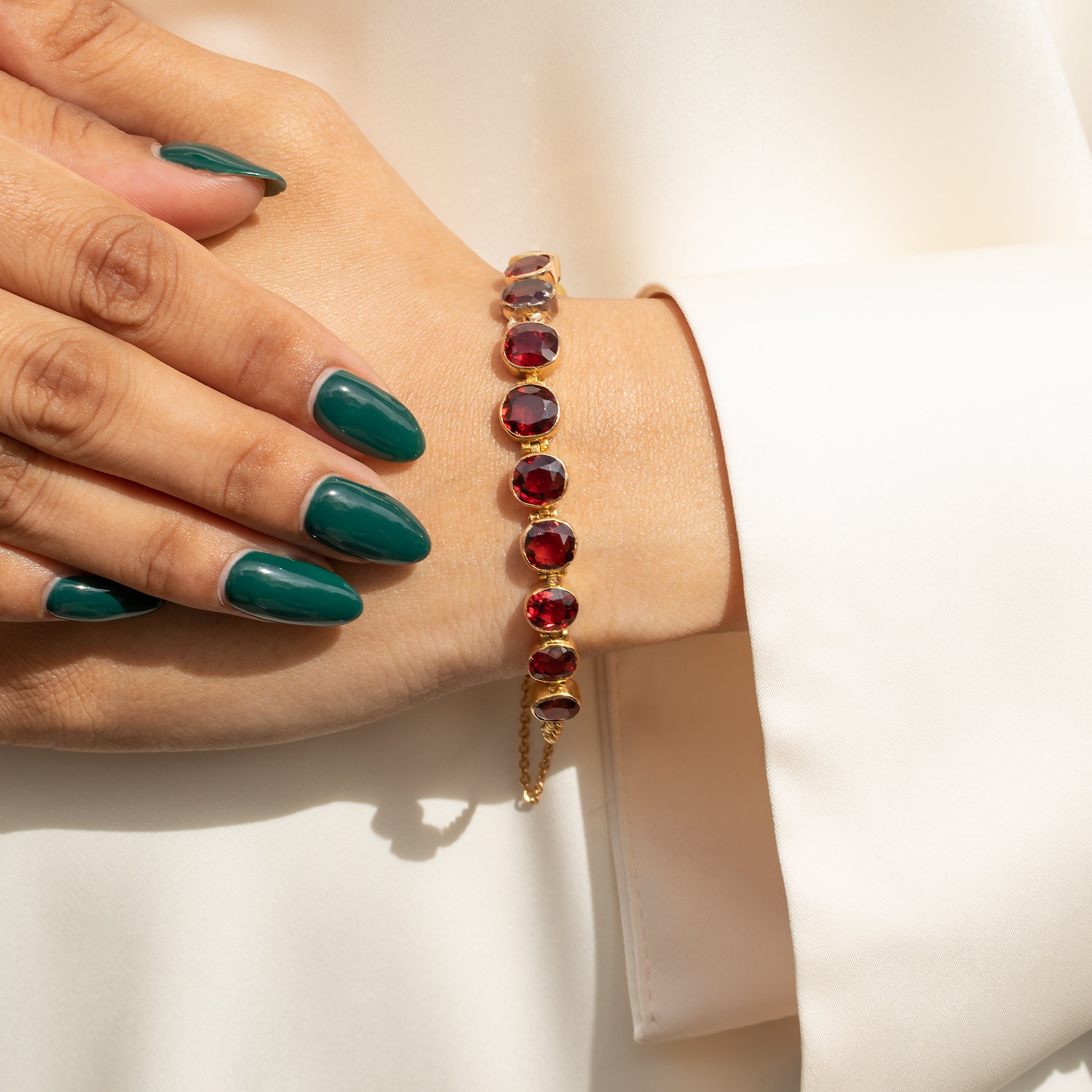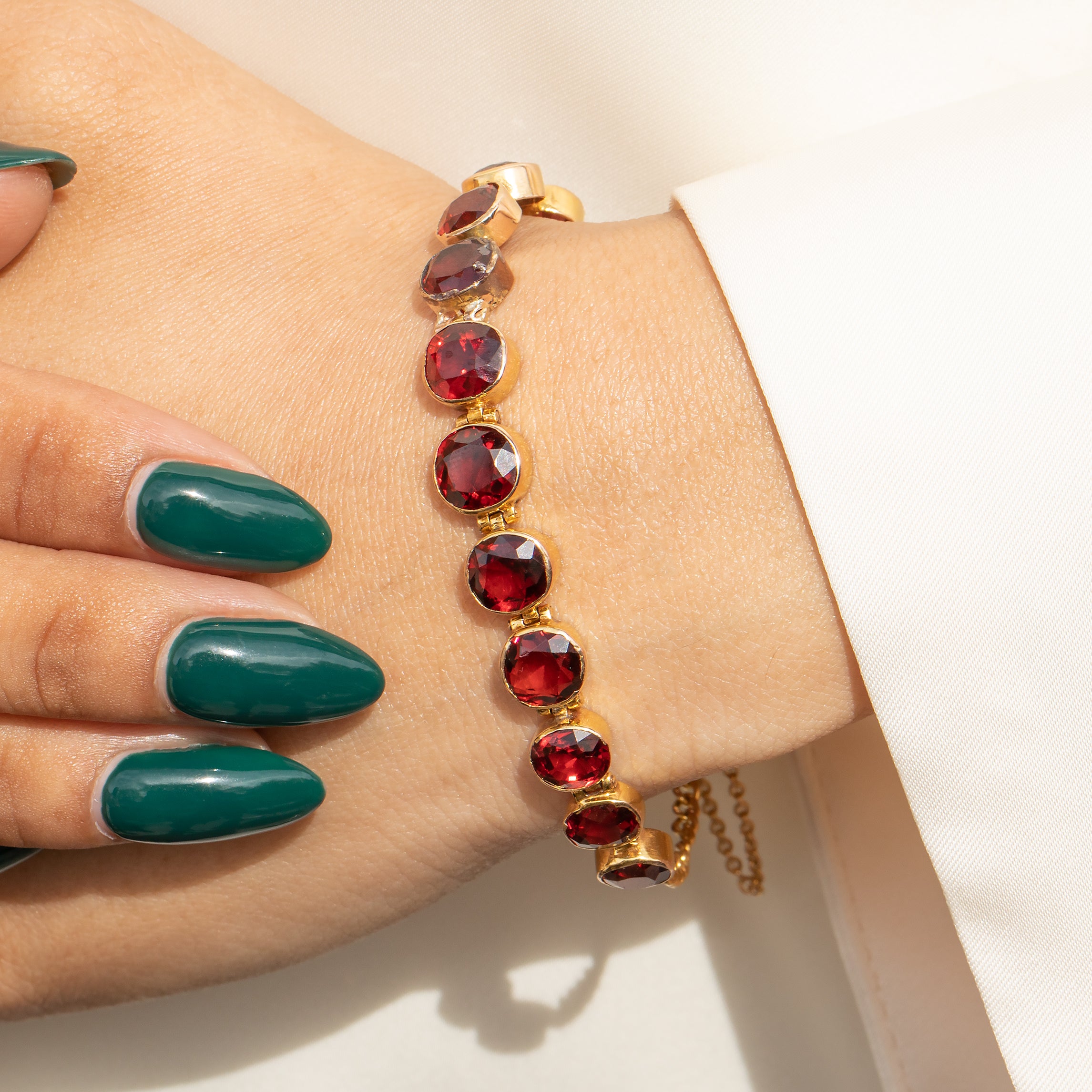 Antique 9ct Gold Garnet Graduating Bracelet, 9.44ct