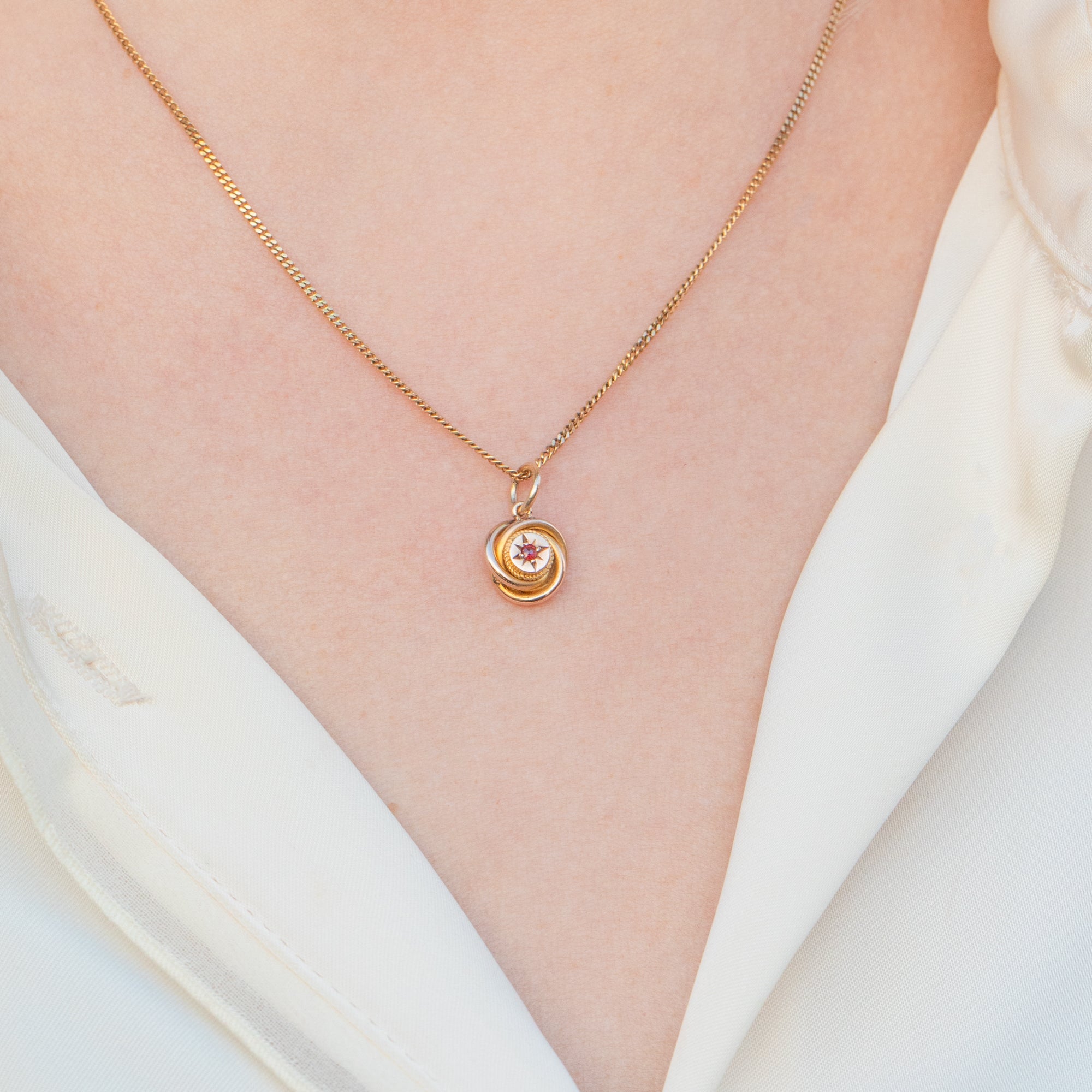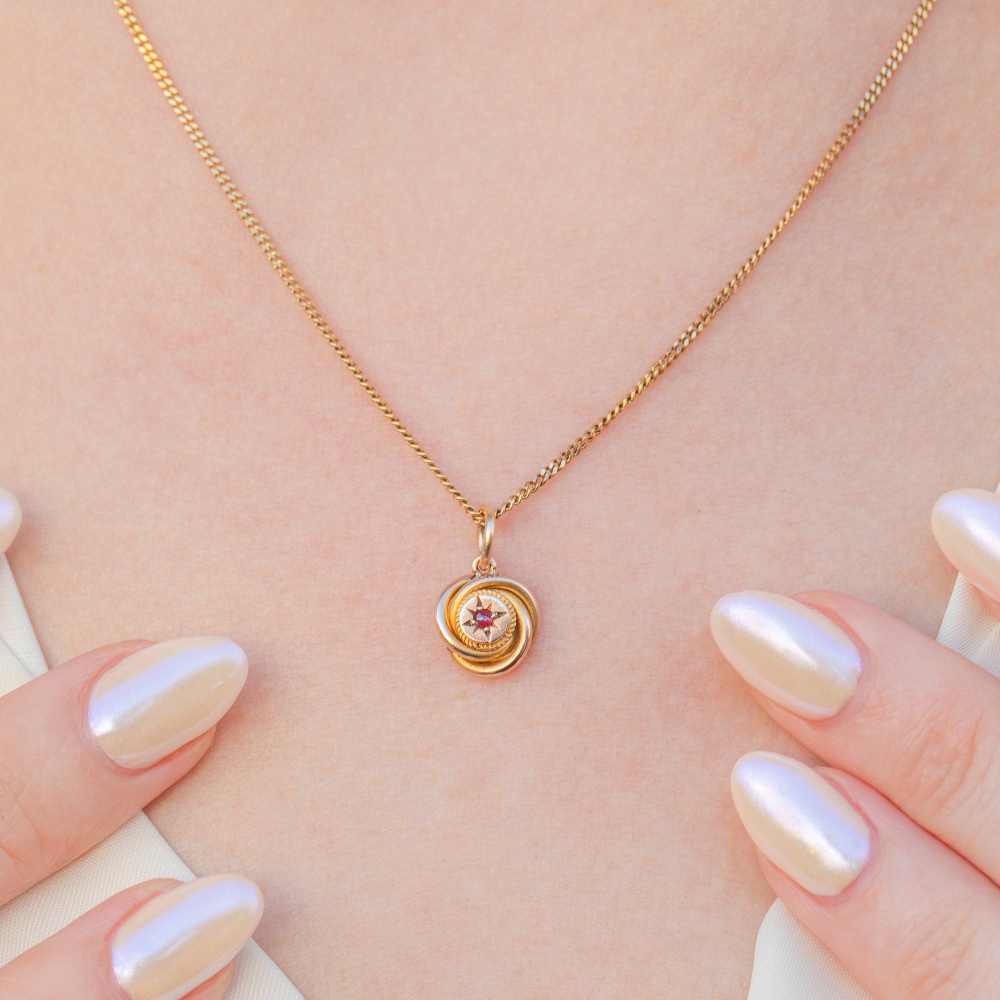 The subtly twinkling Garnet provides this Victorian charm with a seductive pop of crimson, perfectly complemented by the buttery 9ct Gold. Whether worn as a standalone piece or stacked amongst your other favourite treasures, this antique knot charm is the perfect size for everyday wear and will make a versatile addition to your collection!