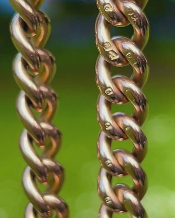 HALLMARKS: '9', '.375' on every link, Chester Assay, Date letter 'P' For the year 1915 on one of the central links. '9' on back of padlock.