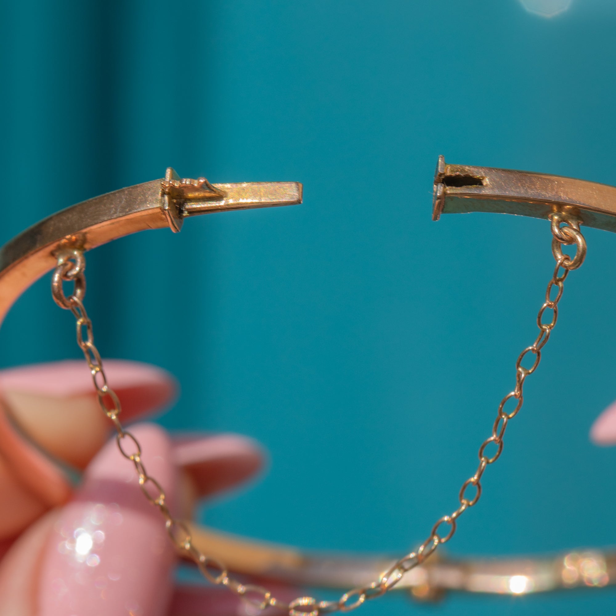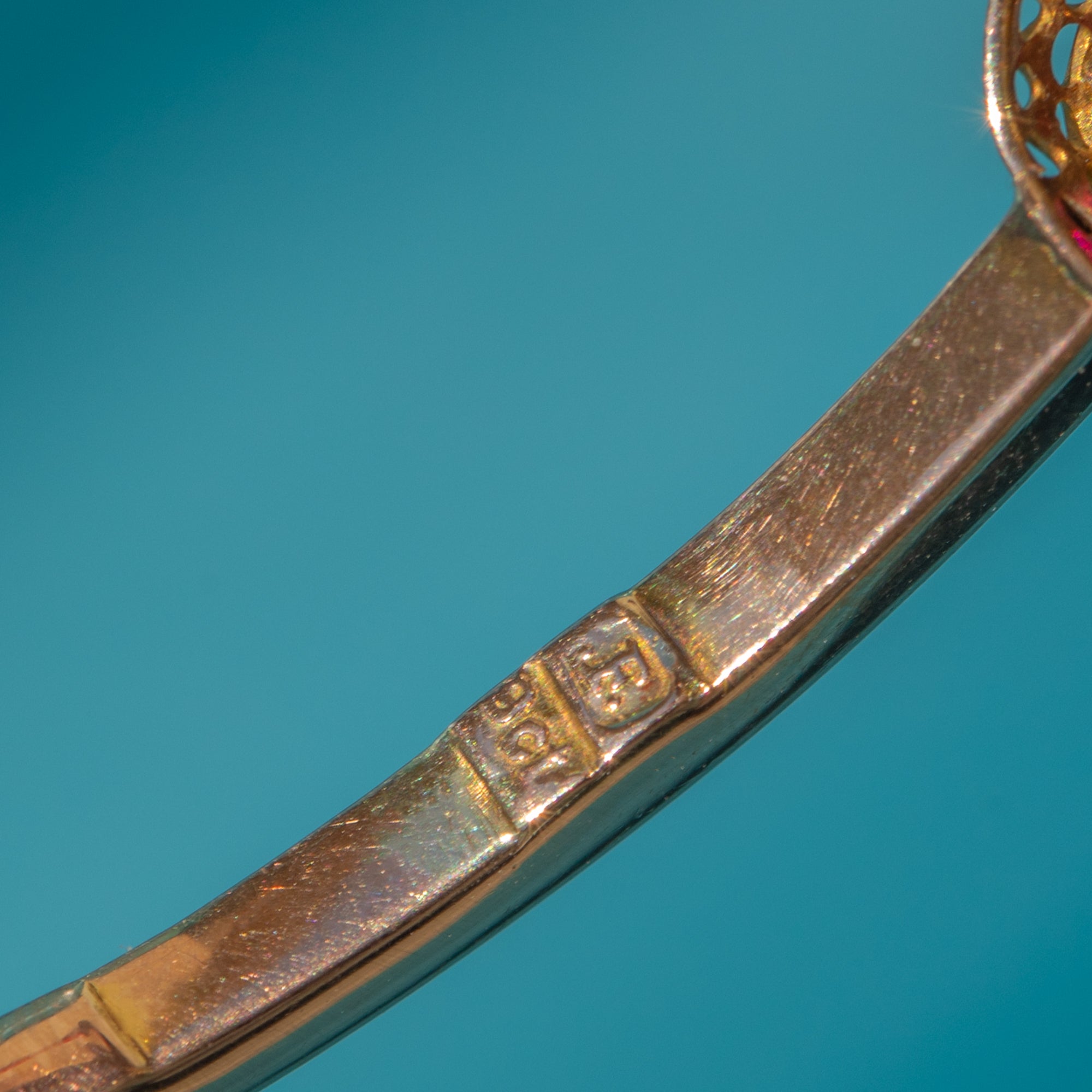 STAMPS: 9ct stamp inside bangle, Maker's mark obscured.