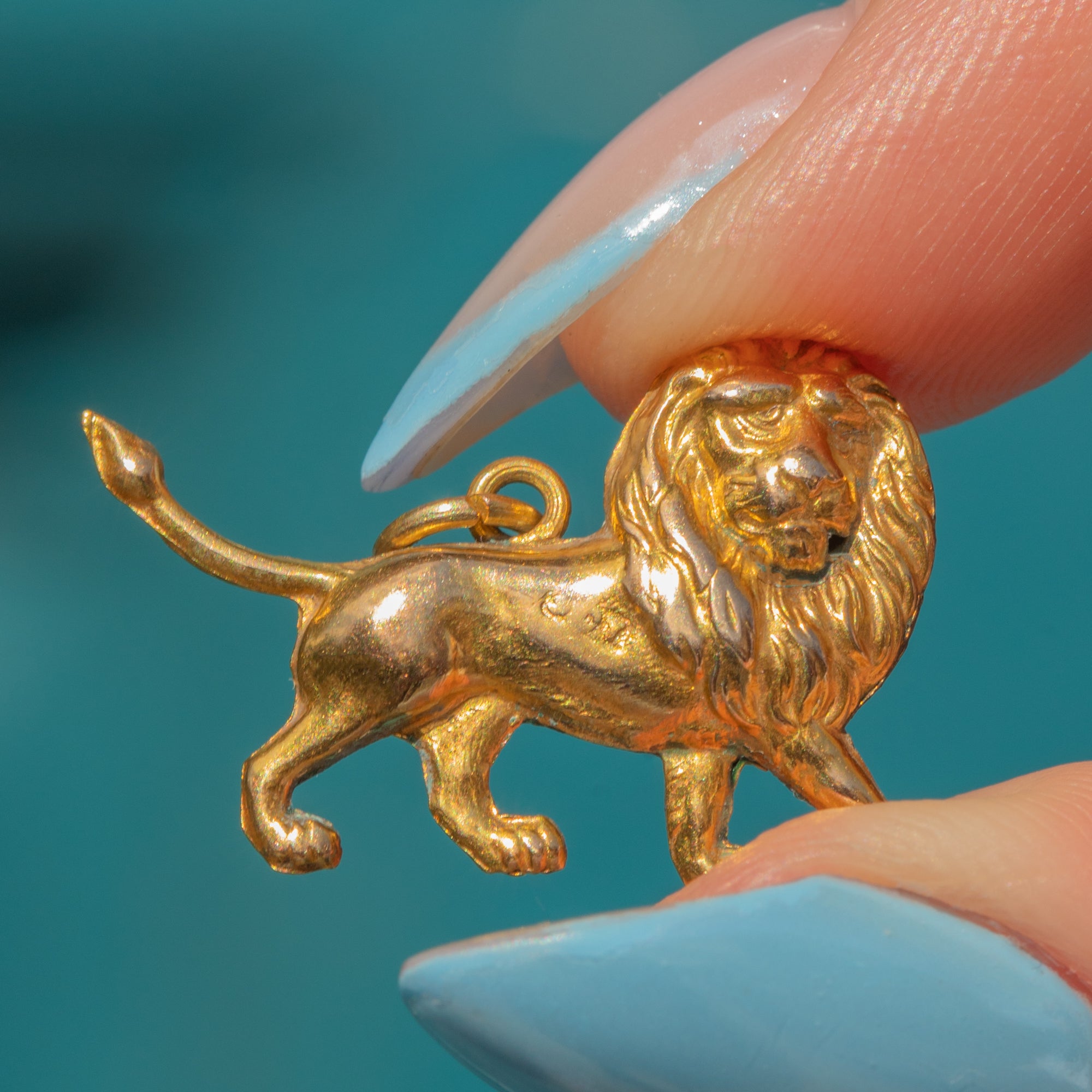 This charming Victorian lion pendant is ready to stroll right into your antique jewellery collection! The lion is crafted from bright 9ct Gold and has been thoughtfully engraved with intricate details and a characterful face.
