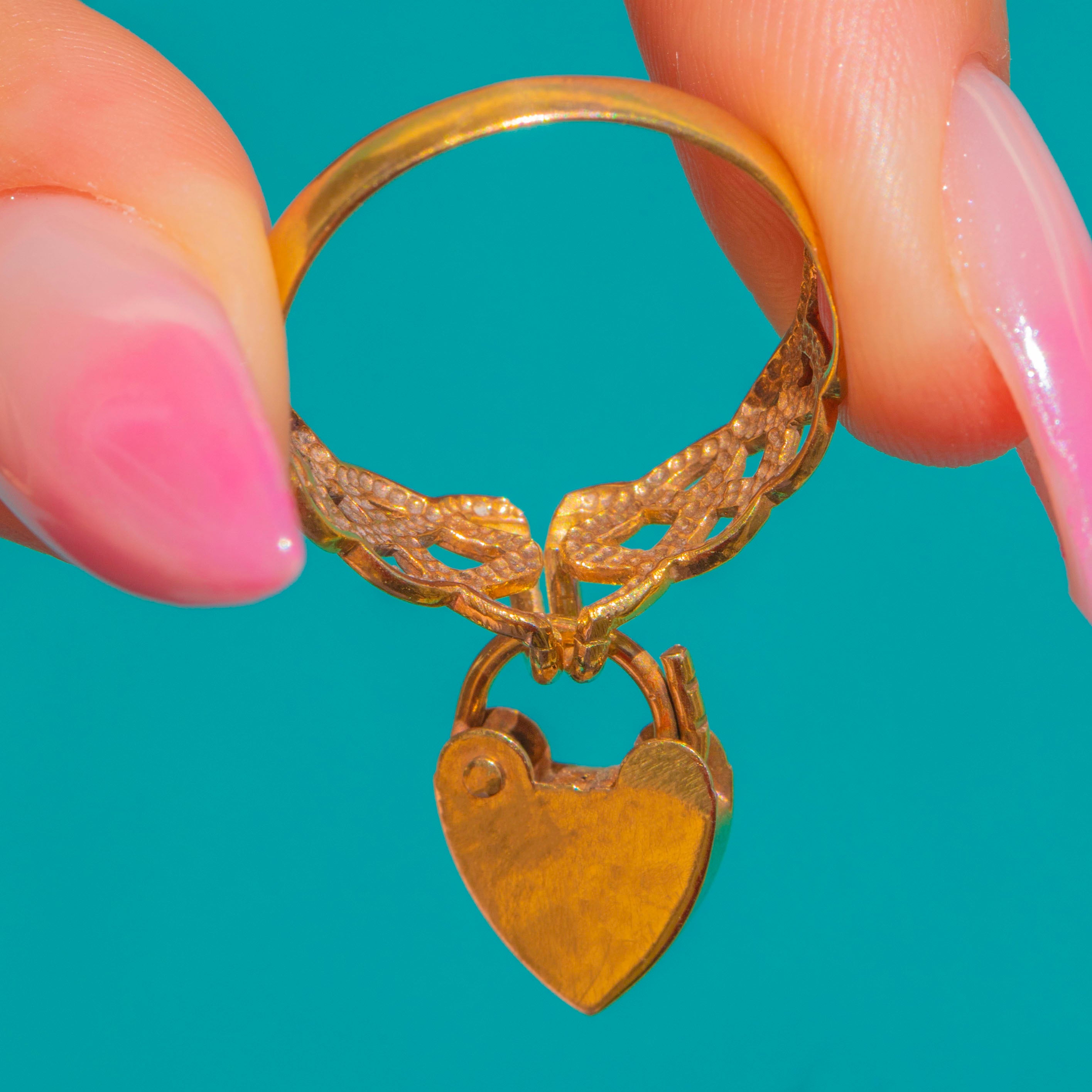 Antique 9ct Gold Lover's Knot Heart Padlock Ring