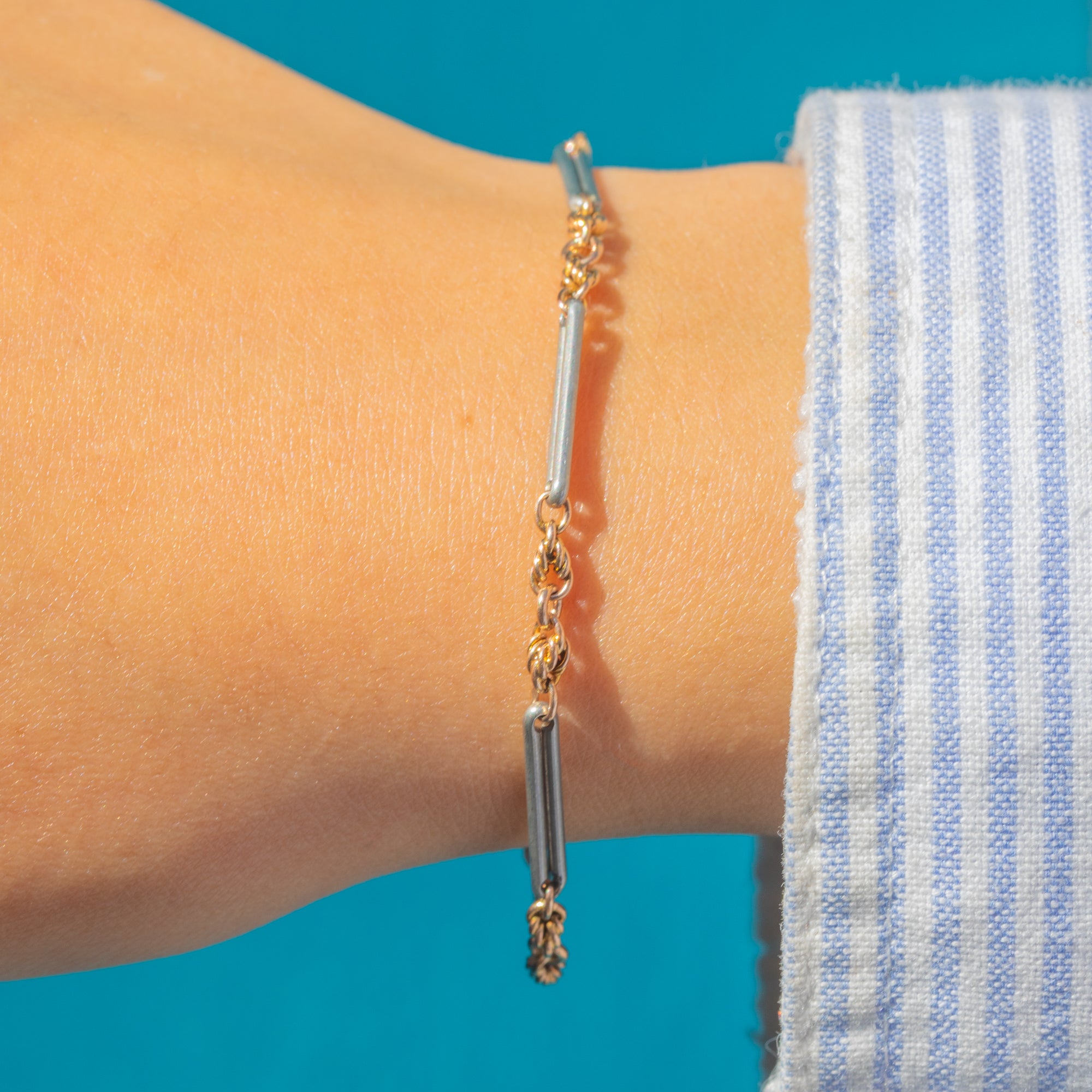 VERY GOOD: The bracelet is in very good antique condition, with all links secure and well-preserved. The Gold knots show minimal wear, while the Silver links have developed a soft antique patina. Clasp will be replaced in workshop for secure wear.
