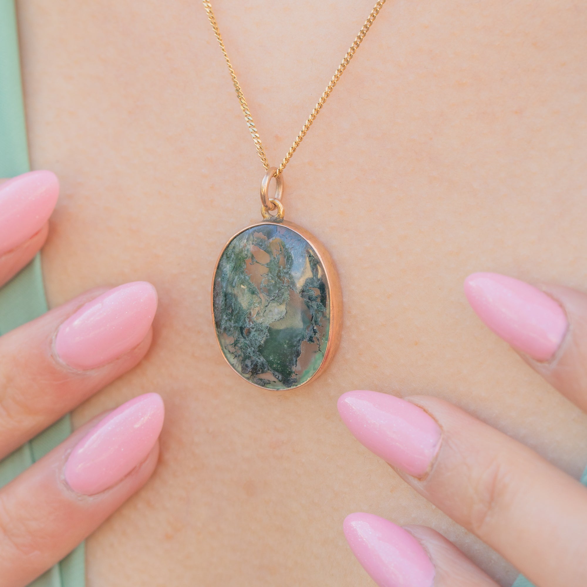 This antique 9ct Gold Moss Agate pendant is a delight!