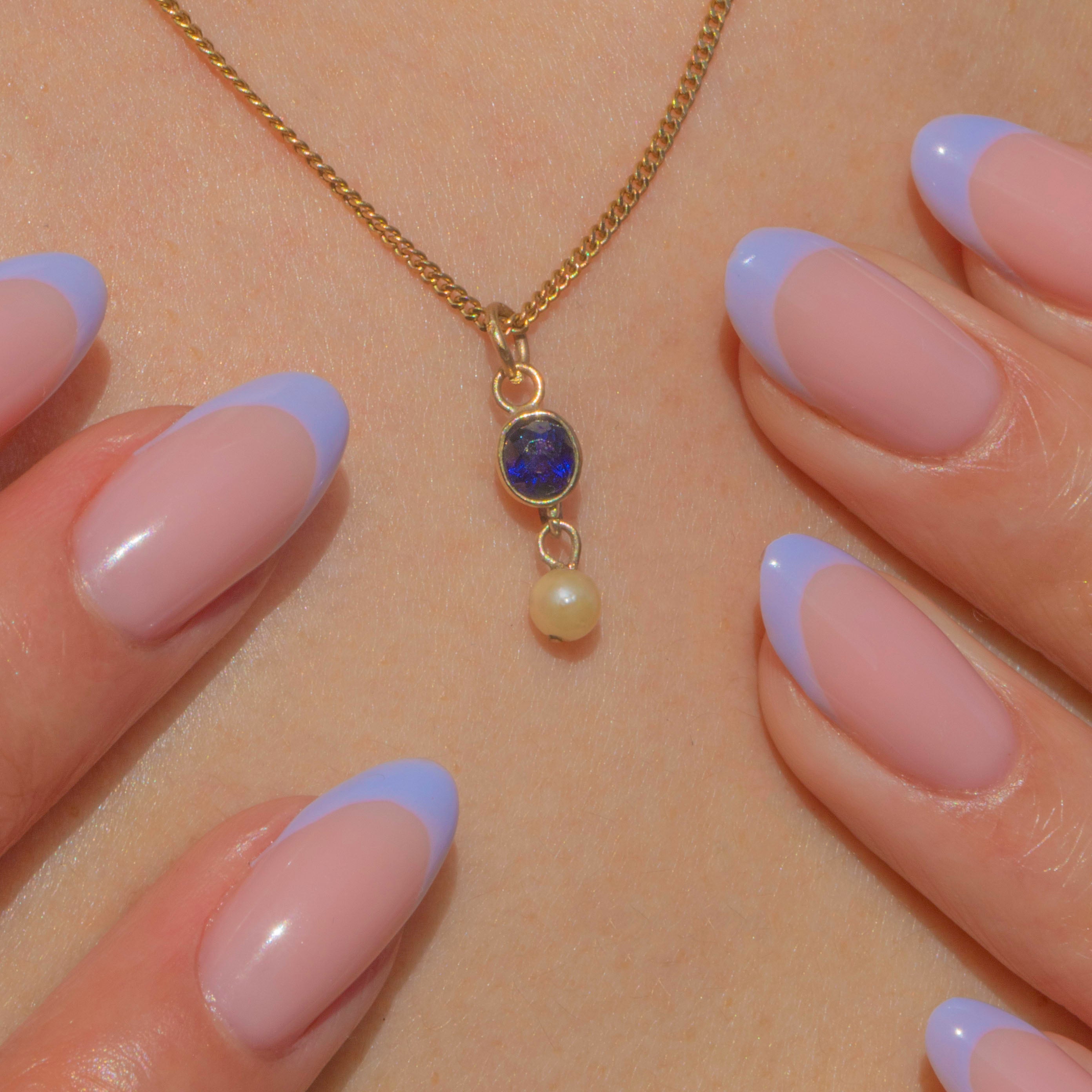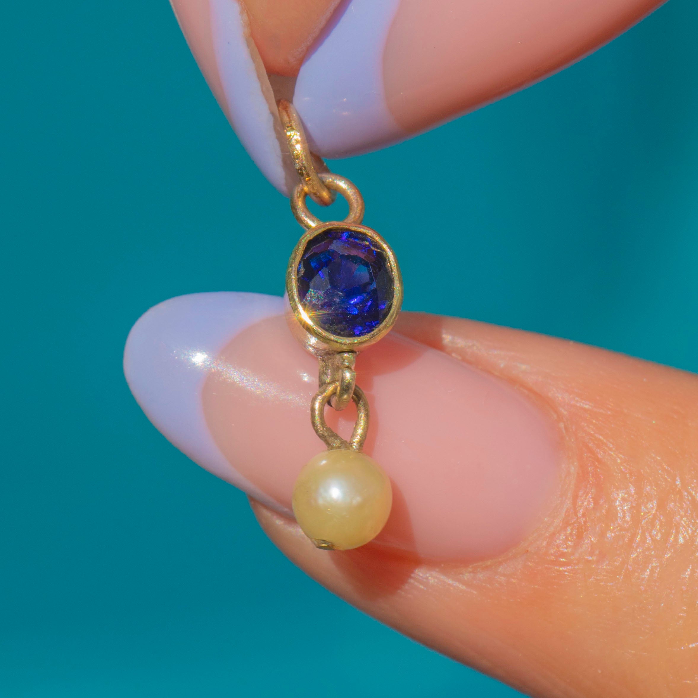 Antique 9ct Gold Natural Sapphire Pearl Charm