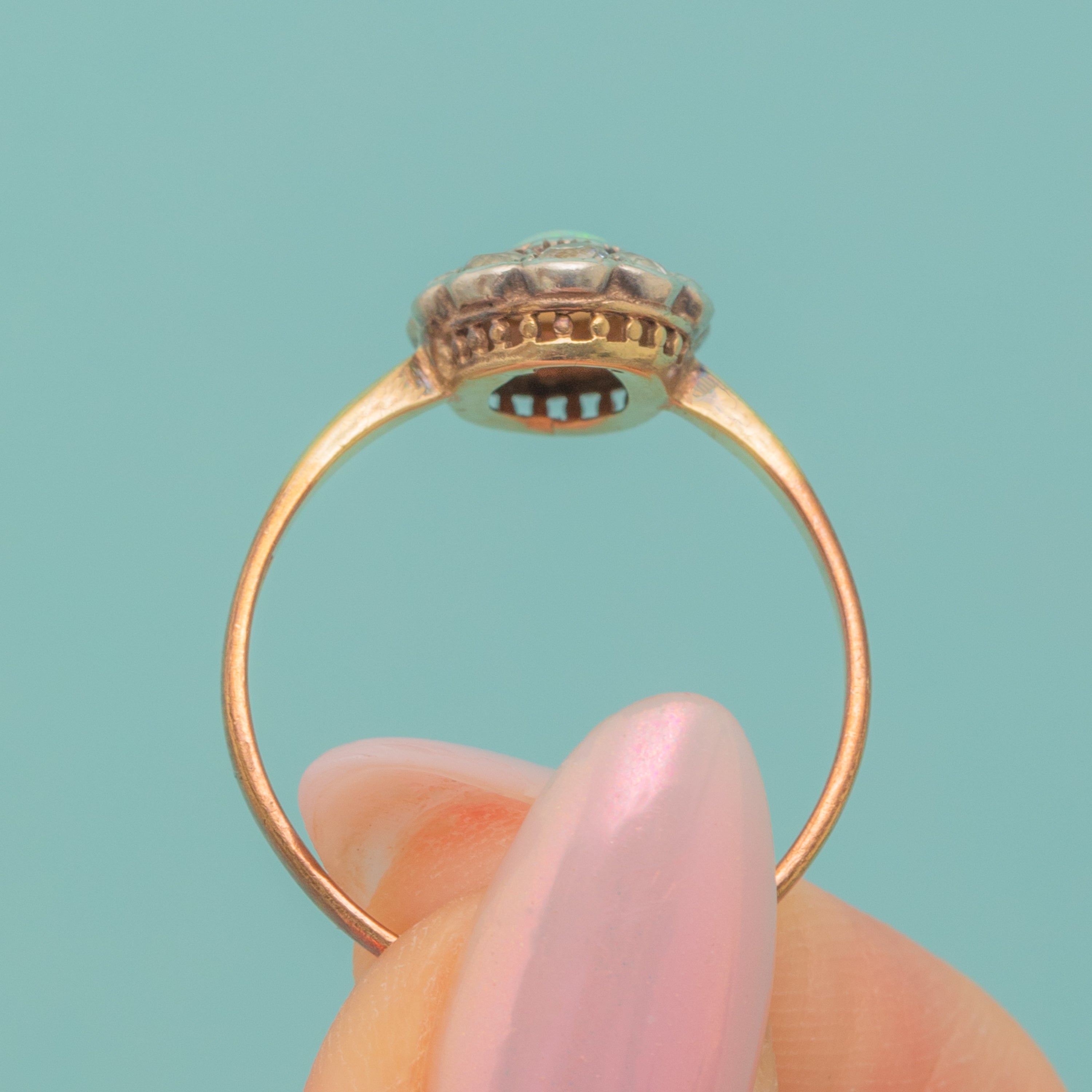 Antique 9ct Gold Opal & Paste Cluster Ring