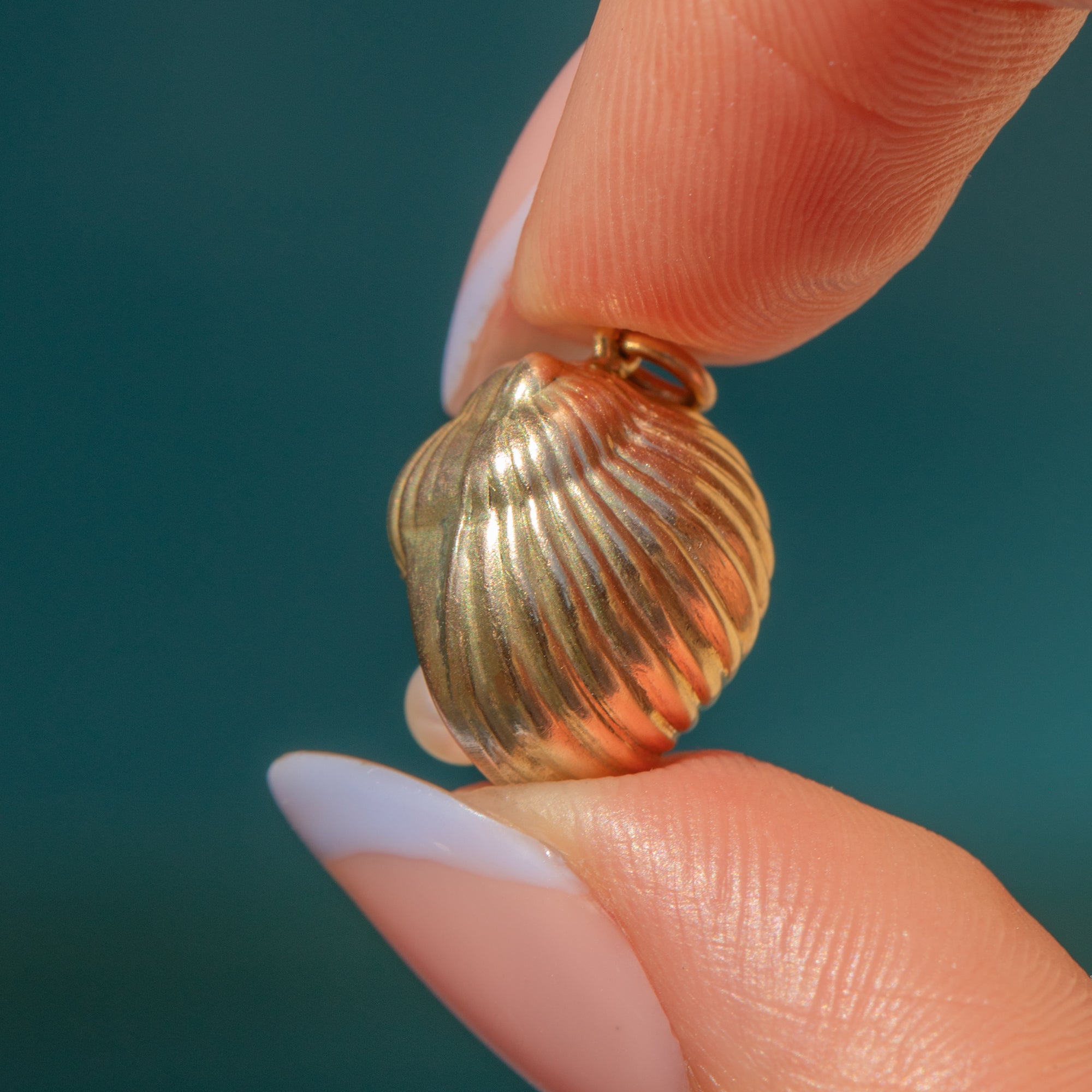 This antique Victorian 9ct Gold Pearl shell charm is simply adorable! A treasure from the Victorian period, this antique charm is intricately crafted from glossy 9ct Gold and homes a shimmering Pearl at her centre.