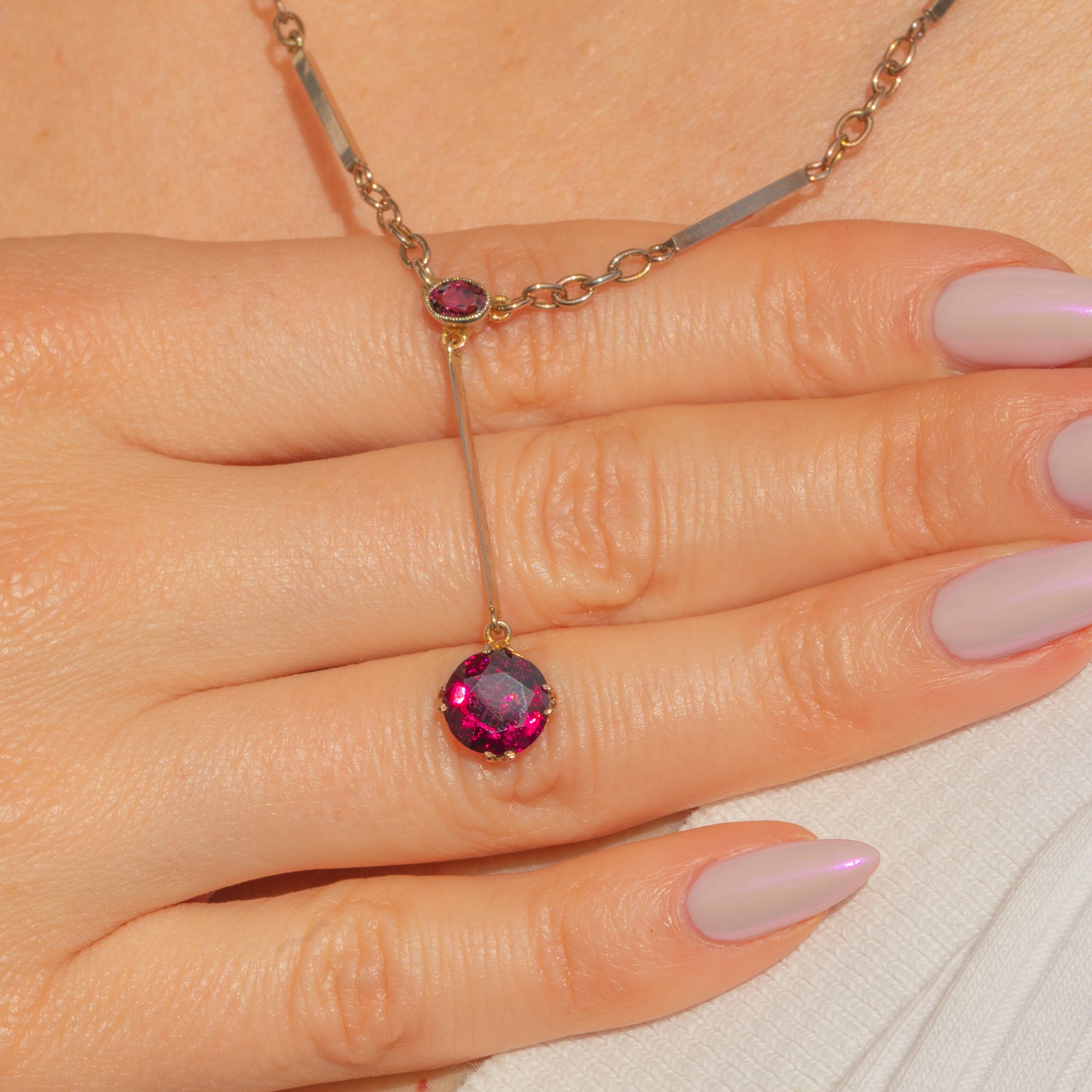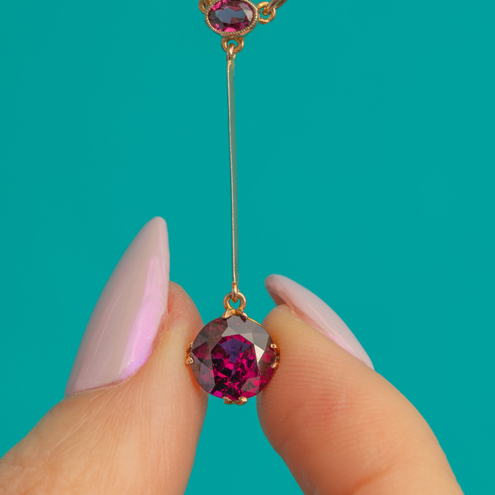 Antique 9ct Gold Rubellite Tourmaline Negligee Necklace
